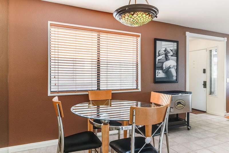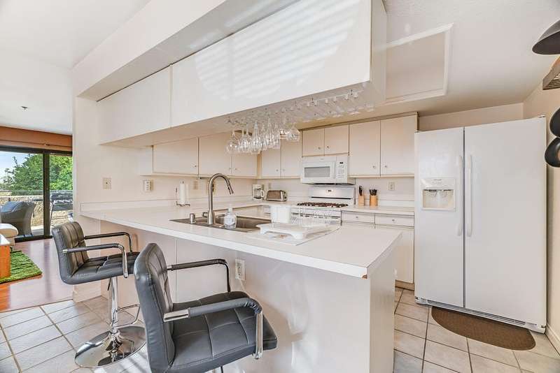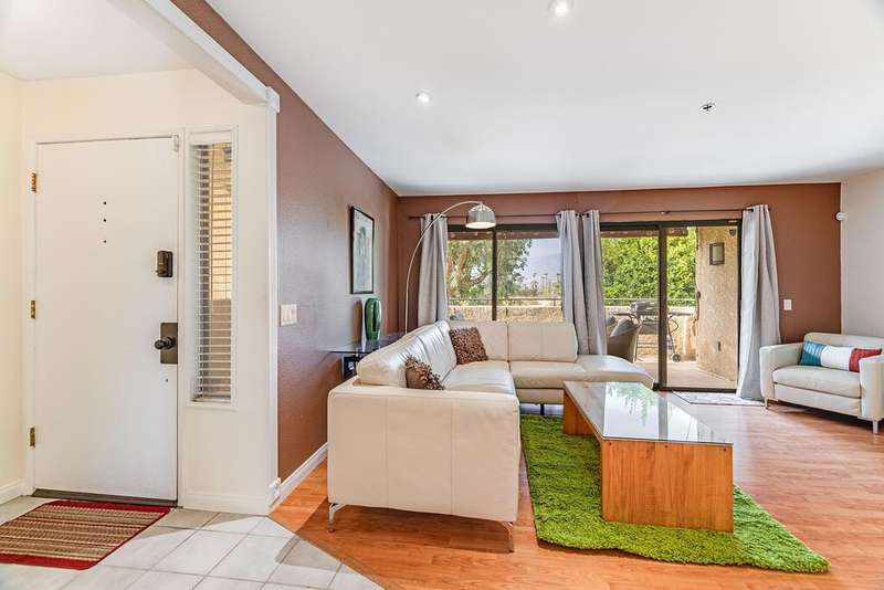 Vacation Rental. Minimum 30 day booking. Price listed indicates peak season rates for one month including fees. Palm Springs is waiting for you at this 2-bedroom, 1 Bath UPPER level condo. Nestled in a peaceful oasis, this enchanting property offers a tranquil escape for guests. Featuring panoramic mountain views from the expansive outdoor balcony. With a king bed in the primary and a queen bed in the guest bedroom and new smart TV's in every room! You'll find comfort and relaxation in every corner. Immerse yourself in the serenity of the surroundings as you soak in the bathtub or take a quick shower.. Let the chef in you come out by preparing your favorite meals in the large kitchen with new microwave and refrigerator (not shown in pics) or BBQ on the expansive outdoor space!. You are just steps to the community pool and hot tub too for a nice relaxing dip. Stay connected with WiFi, and enjoy the convenience of amenities like a new AC, and a free washing machine and dryer. Whether you're exploring the vibrant city or simply unwinding in the cozy living space, it's easy to see why you'll be able to unwind at our place. One garage space and plenty of uncovered parking. Rates: $99/nt: June-Sept, $115/nt, Oct, Nov, April, May, $125/nt: Dec-March. Fees: $325 Cleaning, $188 Admin Fee. $1000 refundable security deposit. Tax exempt. Booked: Nov 12, 2025 - April 15, 2026 and Feb 1 - April 15, 2027