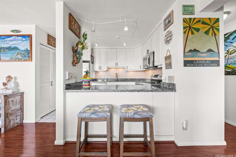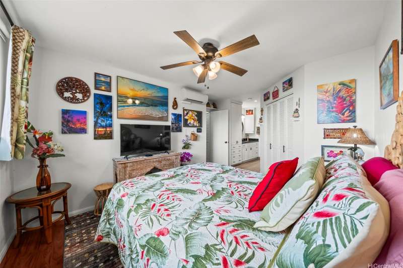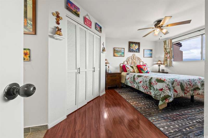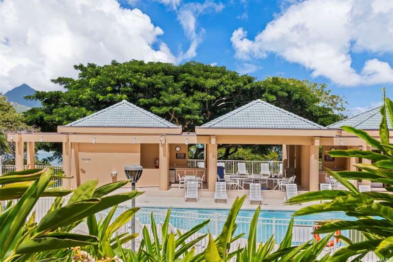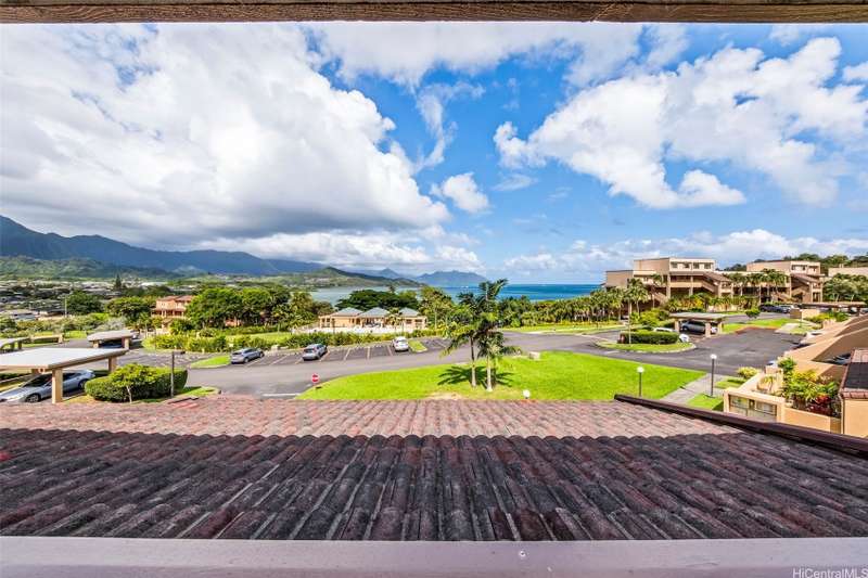 Paradise awaits in this single level townhome, private lanai with priceless views of Kaneohe Bay and the Koolau mountains. A must see home with unobstructed views. This well cared for corner unit, has split AC's in both bedrooms and living room, luxurious wood vinyl flooring, custom window shutters, full size washer and dryer, a tankless water heater giving you ample storage in the kitchen pantry, and extra storage in the garage where you have parking for 1 standard car and a second stall tandem in the driveway. This community is also pet friendly. Lush tropical landscape surrounds you in this established neighborhood tucked away in peace, but still near shopping malls, super markets, and restaurants. This is a must see!