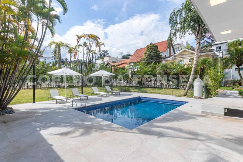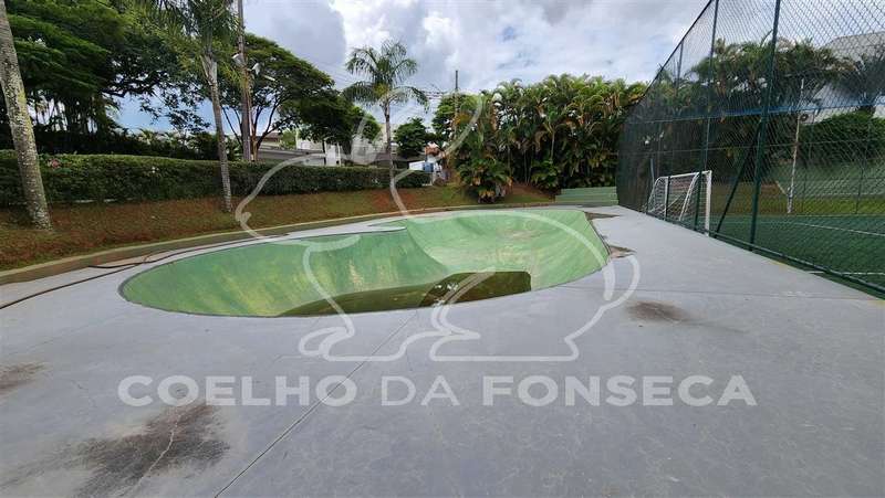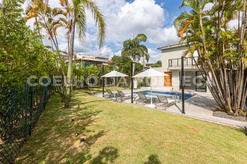 Imponente sobrado de esquina, com belo jardim e piscina. Ótima localização, próxima da portaria, ambientes claros e construção sólida. Condomínio com grande infraestrutura e lazer completo.