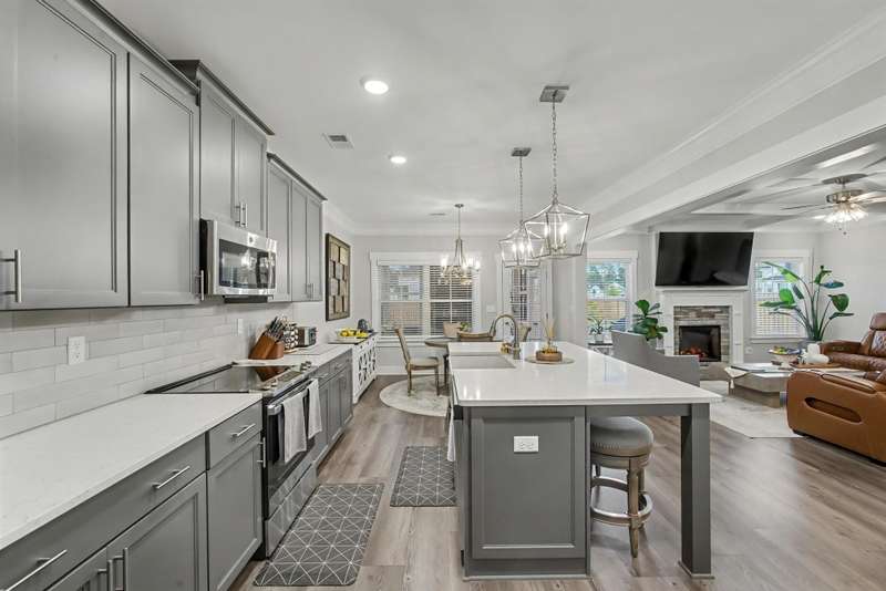 This stunning 4 bedroom, 3 bathroom two-story home is situated on a .22-acre lot in the charming Sanctuary subdivision in Aiken, SC! Step inside to an open floor plan offering ample living space, with a gorgeous fireplace serving as the focal point of the great room. The luxury kitchen is a showstopper—featuring quartz countertops, a tiled backsplash, and stainless-steel appliances—perfect for both everyday living and entertaining. Enjoy casual meals in the cozy breakfast room or host gatherings in the elegant formal dining room for a more upscale experience. Upstairs, the spacious owner's suite offers a private retreat complete with a dual vanity, tiled walk-in shower, and soaking tub. The upper level also includes three additional bedrooms, a full bath, and a convenient laundry room. On the main floor, you'll find a versatile study that can easily serve as a fifth bedroom, located next to a full bathroom—ideal for guests or a home office. Step outside to enjoy your backyard space featuring screened in porch with a stunning stone fireplace as the focal point, perfect for relaxing or entertaining year-round. This space also boasts a patio area, ideal for grilling, and a large fenced back yard. The Sanctuary community enhances everyday living with sidewalks, a large community garden, a neighborhood walking trail, and charming streetlights. Conveniently located just minutes from Downtown Aiken, Bruce's Field, Hitchcock Woods, equestrian venues, shopping, and fine dining—this home blends comfort, elegance, and location beautifully.