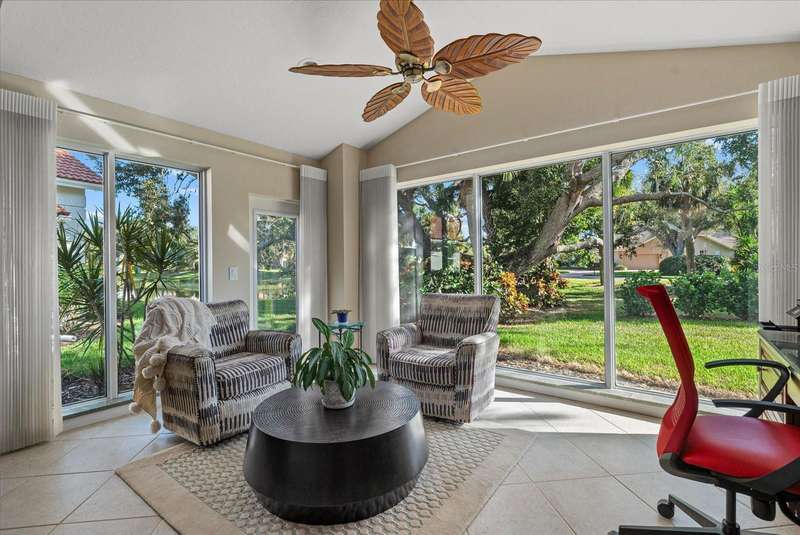 Sought-after Deer Creek Villa home located in the heart of Palmer Ranch. Deer Creek is one of the more established gated communities that offers residents gorgeous tree lined street, lush tropical flora & tranquil lakes. This Villa home is completely updated offering over 2,000 sq ft with 2 bedrooms, 2 bathrooms, large den/office and bright Florida room with Hurricane Paned Windows. Vaulted ceilings & uniform tile flooring throughout. Spacious living room, dining room & gourmet kitchen with beautiful rich Cherry Wood Cabinetry, Granite Counters & Stainless Appliances. Separate laundry room with Cherry Wood Cabinetry. Large Primary Suite with high ceilings & outfitted walk-in closet with a safe. Luxurious Primary Bath with Granite Double Vanity, Frameless decorative tiled Shower with multiple shower heads. Split double bedroom & bath. The den/office could be a 3rd bedroom or exercise room. The 2-car garage has electric opener, storage cabinets & slop sink. SOME KEY FEATURES: 2019 TILE ROOF, 2025 HVAC SYSTEM, 2017 HW HEATER, HURRICANE SHUTTERS/PANELS FOR FRONT & SIDE WINDOWS, FLORIDA ROOM HAS HURRICANE WINDOWS & ALL HUNTER DOUGLAS BLINDS throughout. Deer Creek is a gated community with 24 hr. security that is low maintenance with a wonderful Community Pool & great Social Activities for all residents to enjoy. Close to everything in Sarasota, including top-rated schools, world-class golf courses, 8 miles to Downtown Sarasota, including Marie Selby Gardens. Shopping, all within 1 mile. Costco, Target, Sprouts, Starbucks, Kohls, the soon to be re-developed Sarasota Square Mall and a new Trader Joe's opening in Spring. The famous Legacy Trail is just a short distance away. Contact the listing agent for a private showing.