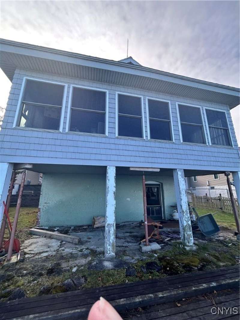 WONDERFUL WATERFRONT LOCATION ON THE SOUTH SHORE OF ONEIDA LAKE WITH 50 FEET OF FRONTAGE! BEAUTIFUL VISTAS FROM THE HOME LOOKING OUT ON THE WATER. GREAT AREA FOR SWIMING, BOATING, FISHING AND YEAR ROUND, WATERFRONT LIVING.HOME IS BEING SOLD IN "AS IS CONDITION". A RARE OPPORTUNITY TO OWN WATERFRONT PROPERTY ON ONEIDA LAKE AND GET THE CHANCE TO RENOVATE/UPDATE YOUR NEW HOME TO YOUR TASTE!RETAINING WALL NEEDS TO BE REPAIRED/REPLACED AT BUYER'S EXPENSE. A CONTRACTOR ESTIMATE IS AVAILABLE UPON REQUEST. (TOWN REQUIRES WORK TO BE COMPLETED)HOME FOUNDATION IS BRICK, WITH WOODBURNING STOVE FOR AUXILIARY HEAT SOURCE IN UNFINISHED WALKOUT LOWER LEVEL. ADDITIONAL 1/2 BATH IN LOWER LEVEL.1ST FLOOR INCLUDES EAT IN KITCHEN, FULL BATH, 2 OFFICES/STUDIES, LIVING ROOM WITH WOOD BURING STONE FIREPLACE, FRONT PORCH WITH AMAZING LAKE VIEWS!2ND STORY HAS 2 FULL ROOMS WITH WATERFRONT ROOM OFFERING GREAT WATERFRONT VIEWS!2 CAR DETATHED GARAGE ON STREET SIDE WITH ADDITIONALPARKING SPACE FOR 2 CARS.