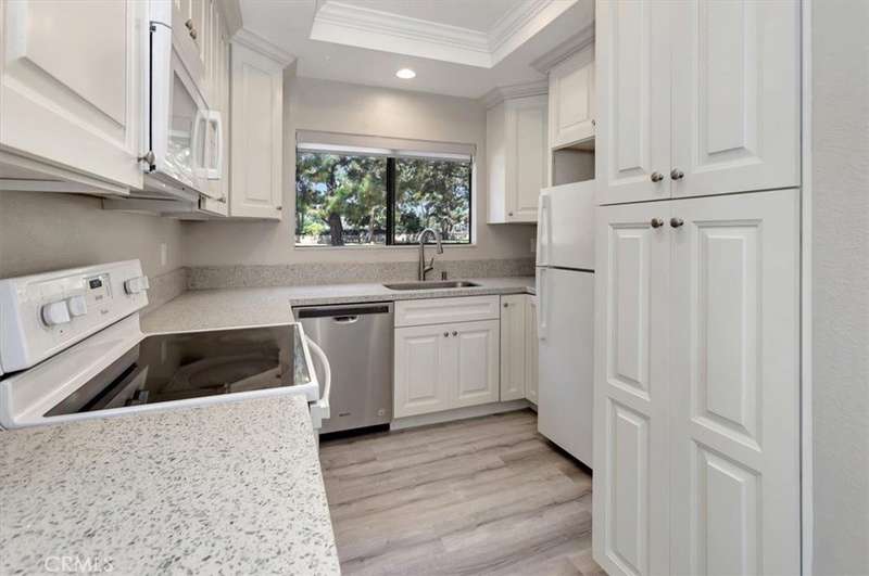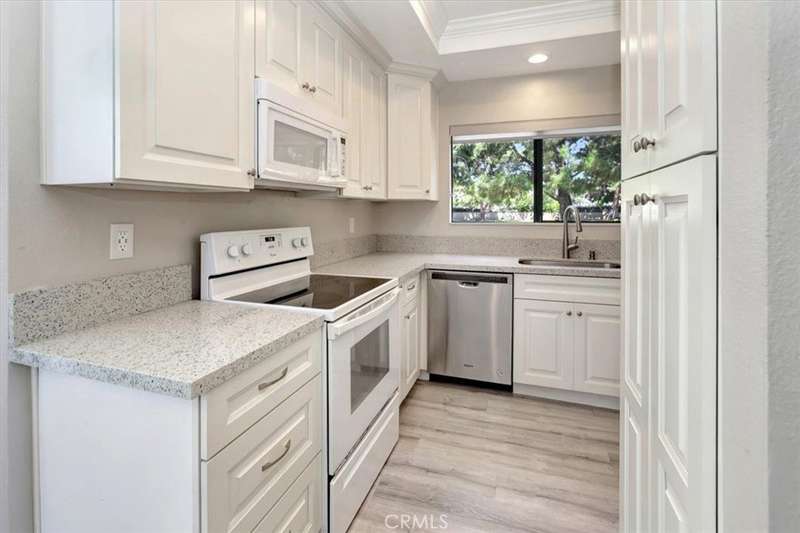 REMODELED, UPDATED, DARLING, LIGHT and BRIGHT! Lower unit, ONE LEVEL condo - Large living room open to dining room with beautiful crystal chandelier, lots of windows, custom cordless blinds, adjacent the brand new kitchen! Brand new kitchen - soft close cabinets and drawers, corner lazy susan, recessed lighting, luxury vinyl plank throughout unit. Freshly painted, new baseboards - just lovely home! HOA painted exteriors in last year. Mirrored hallway leads to 2 bedrooms - master features walk-in closet with shelving for storage, connecting bathroom with vanity then private shower over tub with commode. Second bedroom features sliding wardrobe doors, en suite shower over tub, vanity, newer fixtures. The new luxury vinyl plank is also waterproof, easy clean, current designer paint palette! Front patio with little garden, very sweet and relaxing. Lots of trees surrounding, lush landscape - very tranquil. While front door faces the Roosevelt street, it's set back with greenbelts and 2 sidewalks facing just a country road, not a thoroughfare, so is nice and tranquil. Around the corner - this unit has 1 parking spot, in a 2-car shared garage.