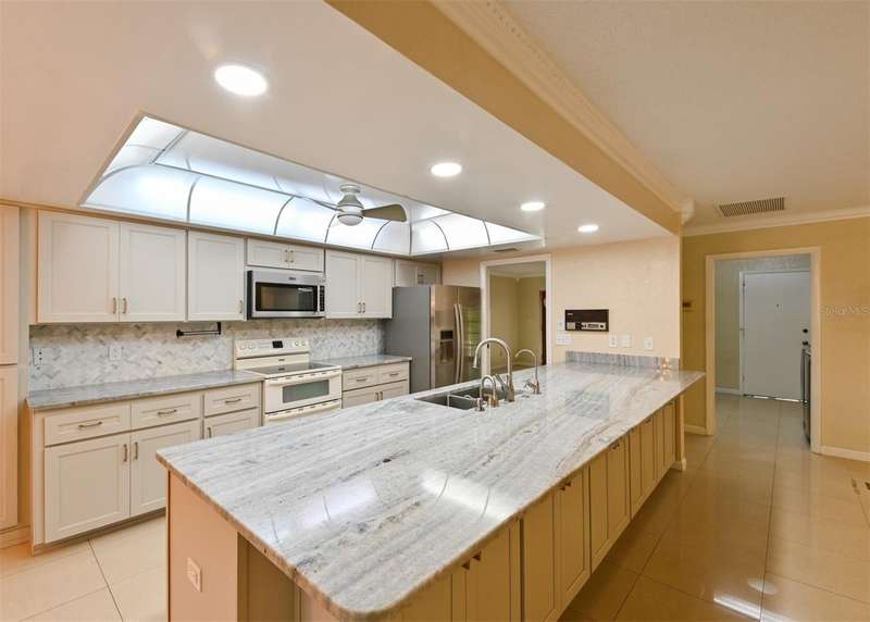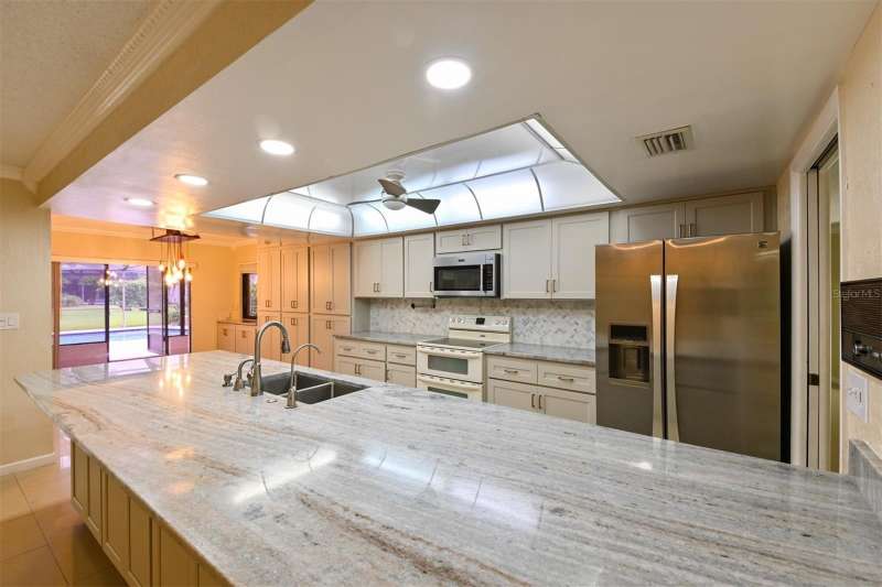 Discover an incredible opportunity in the heart of Carrollwood Village. Situated in the desirable Pepperell neighborhood, this 5-bedroom, 4-bathroom, 3,226 sq. ft. pool home rests on an oversized 17,550 sq. ft. lot directly across from Carrollwood Village Park and within ½ a mile of NY Bagel, the Perfect Press Coffee Co., and other modern conveniences. With a recently renovated kitchen already complete, the home is primed for your vision and cosmetic updates to unlock its full potential. The versatile layout is ideal for modern living, offering a true split floor plan with the primary suite and adjacent bedroom (perfect for an office or nursery) on one side, and three additional bedrooms on the other. A flexible 5th bedroom/in-law suite includes a full bath and private entry or can easily convert back to a 3-car garage. Vaulted ceilings with exposed beams, pocket sliding glass doors, a cedar-lined closet, spacious formal living and dining areas, and a massive attic with built-in storage lift showcase the home’s character and functionality. The updated kitchen features extended cabinetry with abundant storage, stainless steel appliances, quartz counters, a coffee bar, and a designer backsplash. From there, enjoy seamless indoor-outdoor living with a screened lanai and pool area, an incredible backdrop to create your own backyard retreat. A wide driveway with space for 4–6 vehicles, and lush mature landscaping completes the property. Enjoy life in one of Tampa’s most established and sought-after communities, where neighborhood charm meets unmatched convenience. Carrollwood Village offers parks, walking trails, pickleball and basketball courts, Carrollwood Country Club (membership required), and a thriving market scene. With low flood risk, strong community amenities, and a location that continues to grow in popularity, this property offers the perfect canvas to create your dream home in Carrollwood Village. Don’t miss the virtual walk through here: https://youtu.be/FKbp8CW24Bw?si=VCiDL0Q9F1fU4PBk