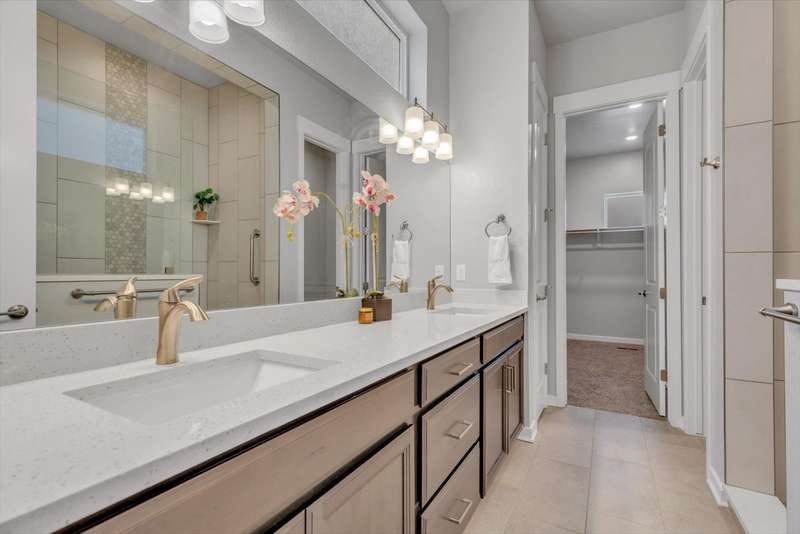 Immaculate, tastefully styled, 4-bedroom, 4 bath two-story single family home - with a main level primary suite - in the popular Baseline neighborhood. Enter through your spacious front porch to a bright and open floor plan with 10 ft ceilings, engineered hardwood floors, and contemporary finishes. The impressive kitchen features a sizable pantry, quartz countertops, and a sleek island that opens to the welcoming living and dining rooms. The spacious primary suite offers a light-filled retreat with a private bathroom, and a walk-in closet so large it rivals many bedrooms! A main level laundry room and mudroom are adjacent to your oversized two-car garage. Three more sizable bedrooms with walk in closets along with a roomy loft ensure there's space for everybody and all their activities. Enjoy watching the seasons change from your second story covered patio with peekaboo mountain views. The lot is over 50% larger than the newer construction, and there's opportunity to improve the side yards for additional outdoor living space. Solar panels owned and included. Nearby to walking trails, park areas, groceries, and dining. Easy access to I-25 and E-470.