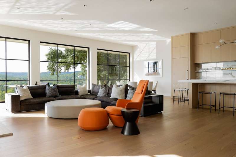 This modern masterpiece underwent a complete renovation in 2021, meticulously designed to capitalize on the breathtaking views. Floor-to-ceiling glass windows frame the captivating scenes of the verdant hillside and the gently lapping waters of Lake Austin. The open-concept layout seamlessly blends expansive spaces with discreet corners, catering to both grand-scale entertainment and family bonding. The formal living area and family room, each graced with a cozy fireplace, gracefully open onto a covered terrace that extends the living space outdoors. For effortless hospitality, a well-appointed wet bar welcomes guests just beyond the entry, ensuring quick access to refreshing beverages. Notably, a generously sized wine room is at your disposal, ideal for displaying your prized