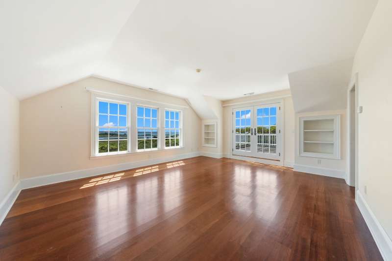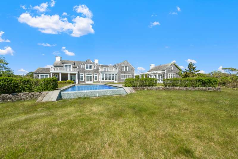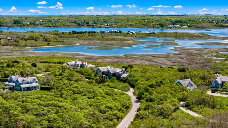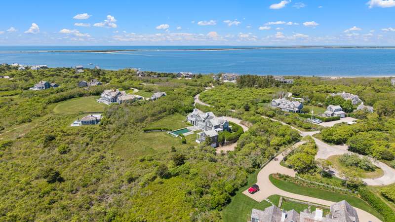 Exceptional Nantucket Compound with Breathtaking Harbor Views designed by Botticelli & Pohl. Set high above Pocomo with sweeping views of Polpis Harbor and Nantucket Town beyond, this exceptional five-bedroom, three full and one half bath main house captures the essence of coastal charm and island living. Thoughtfully designed compound for both relaxation and entertaining, the home features traditional first-floor open-concept living with a gourmet kitchen equipped with granite countertops, stainless appliances, a large island, and seamless flow into the dining and living areas. Two comfortable guest bedrooms on the main level offer privacy and convenience with a shared bath, while the second floor is dedicated to the primary suite and two additional bedrooms with a Jack and Jill bath. The primary bedroom features a serene sitting room, private study, luxurious bath with jacuzzi tub and separate stall shower, and a private deck to take in the panoramic views. The exterior is just as