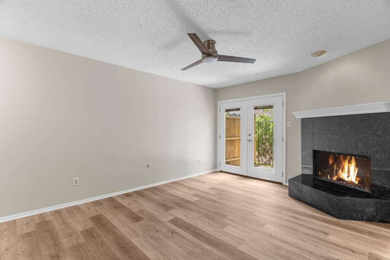 POOL VIEWS and NEWLY RENOVATED-UPDATED two-story condo. Washer, dryer & NEW refrigerator stay. This gorgeous home features: 2 sets of glass double doors with views of the pool and bring the sunshine into the living room and kitchen*NEW LVT wood-look plank flooring downstairs*NEW sculpture carpet on stairs & 2nd floor,*NEW ceiling fans and NEW designer light fixtures throughout*Full RENOVATION of primary bath*Complete painting of interior walls and cabinets*Loft area with window to use as living space, extra sleeping space, study-office, game area*Storage galore: TWO Large walk-in closets upstairs, storage closet on patio, and utility closet*NEW stainless steel kitchen appliances*Quartz Counters*Awesome Fireplace*NEW Blinds on windows*Assigned covered parking*Quiet neighborhood with mature trees*Close to Hwys*Close to UTD, hi-tech companies, shopping, restaurants, great entertainment, and community events.