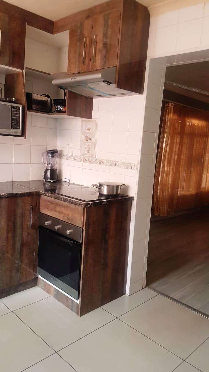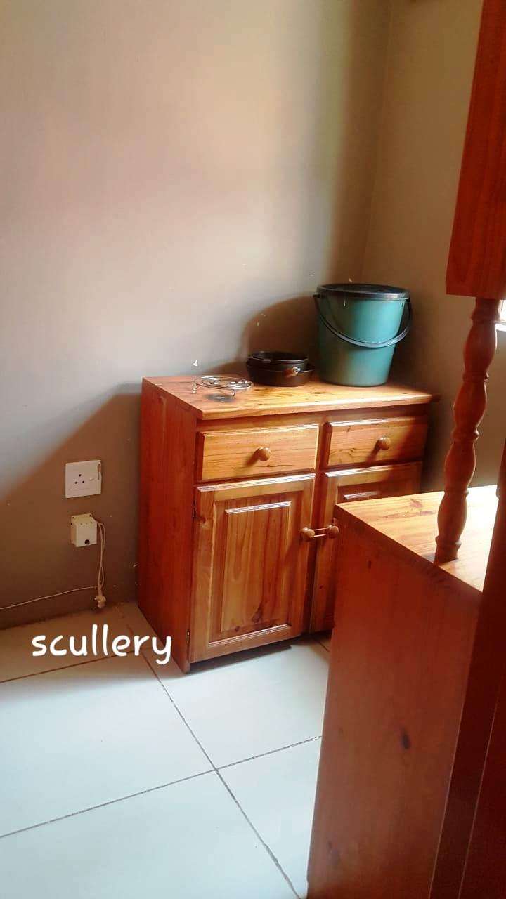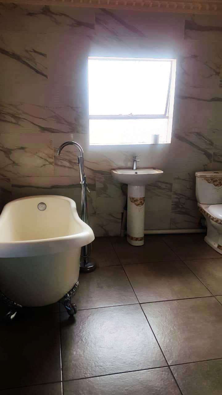 Upstairs Four spacious bedrooms and no built- in cupboards but a room to make it a walkin closet. Two spacious full bathrooms fully tiled (Shower, bath,basin & loo )