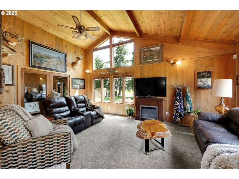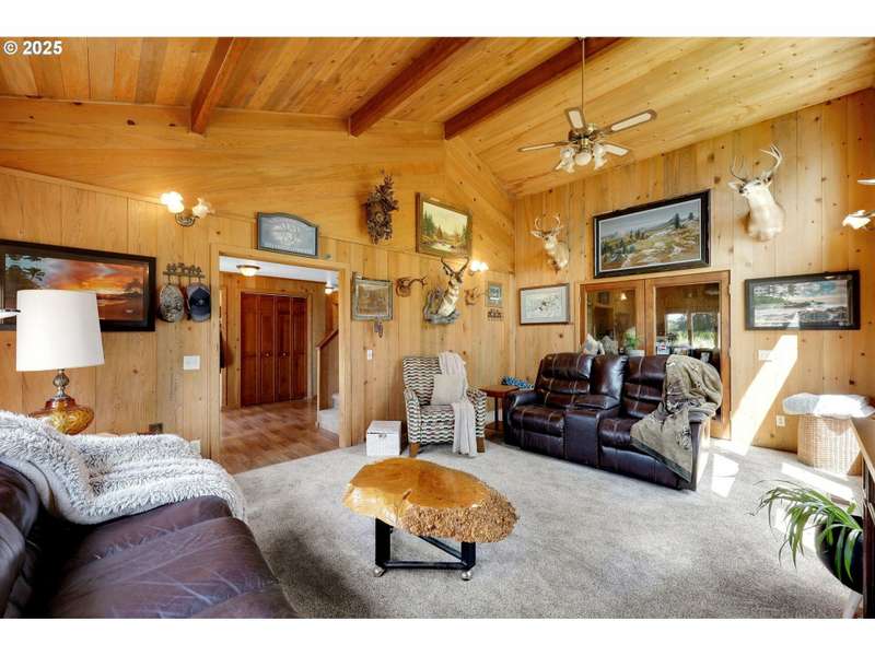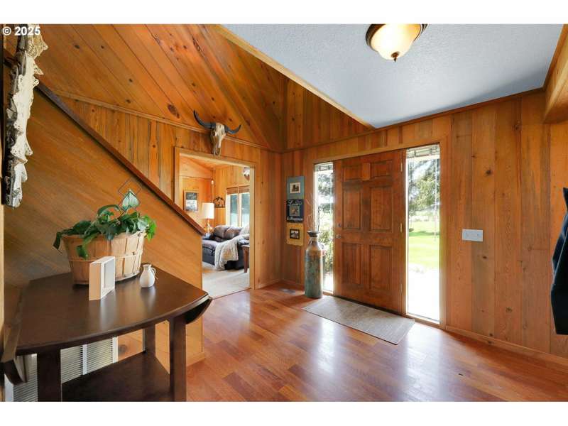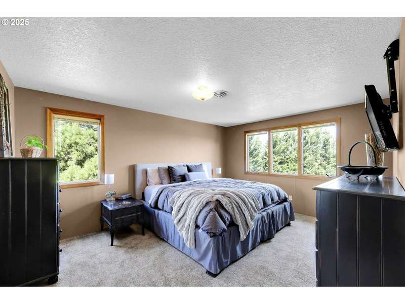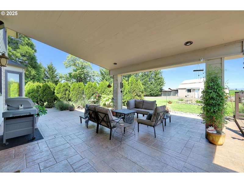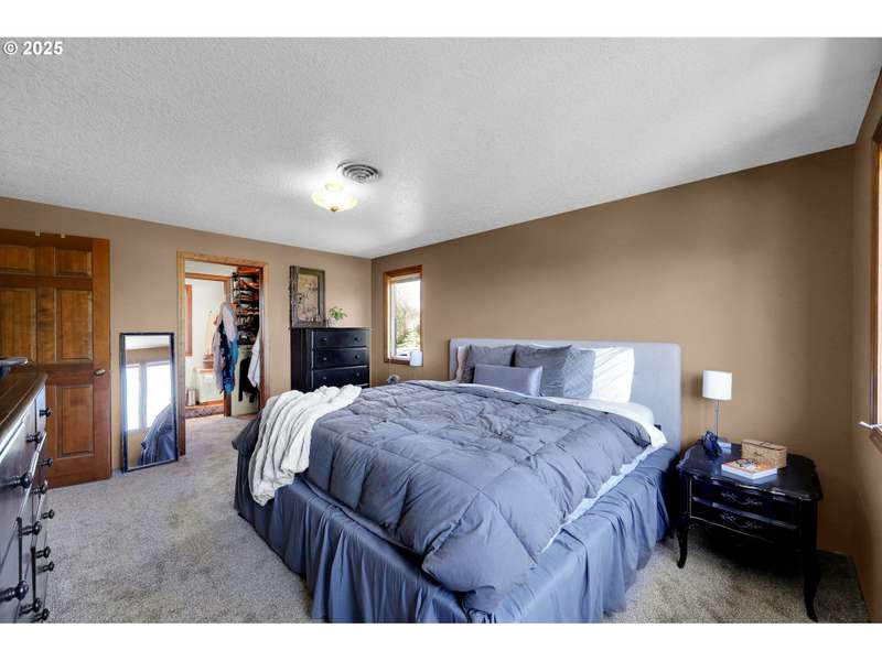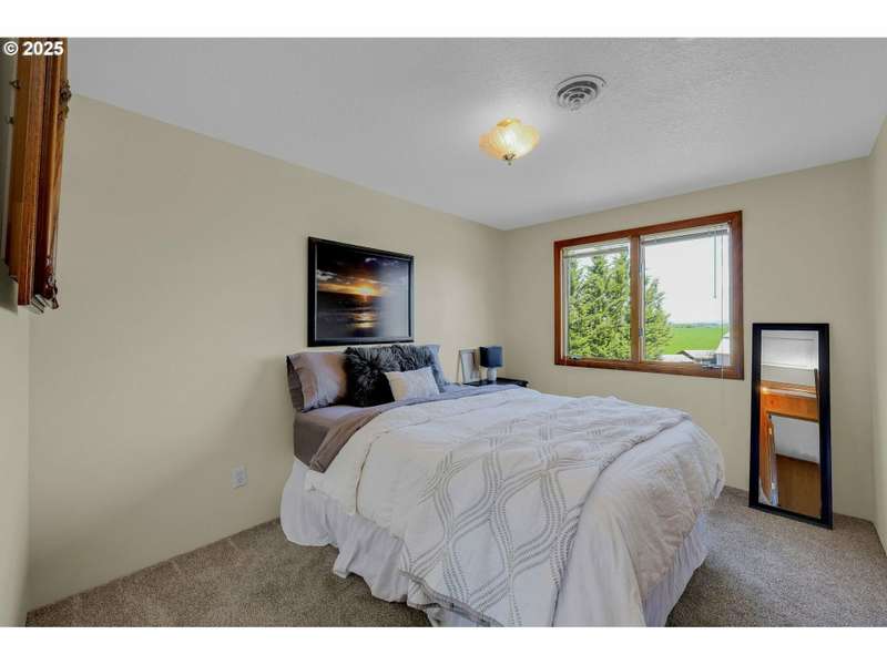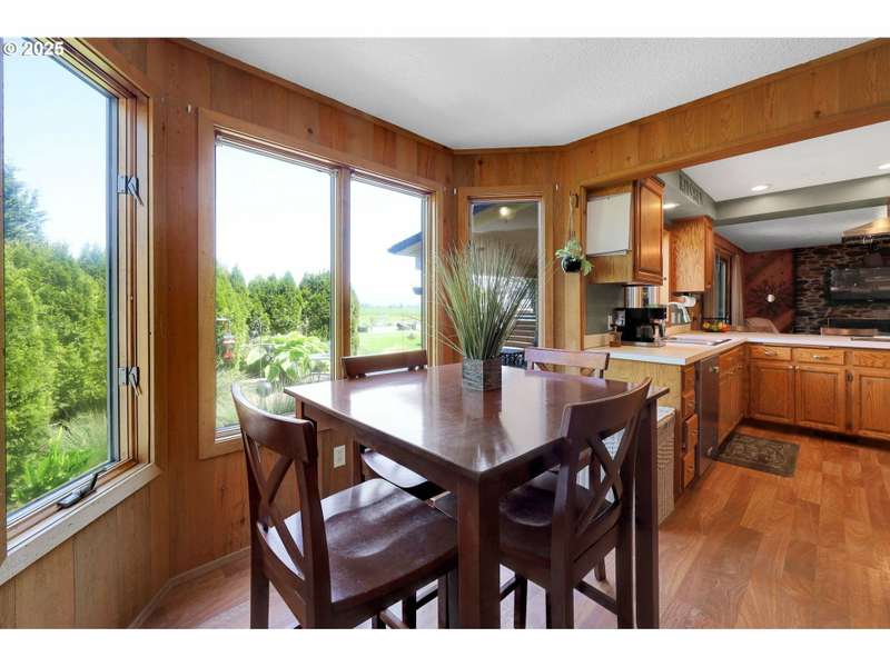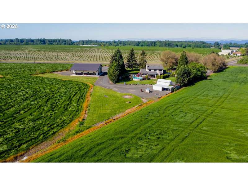 Your 5 acre oasis awaits! This spacious 3 bedroom 3.5 bath home has it all. A light and bright living room with high ceilings and ceiling high windows let in the view. A formal dining room with wood floors is great for entertaining, and the kitchen with double ovens, eating nook and breakfast bar opens up to a cozy family room with rock fireplace. Upstairs you'll find a loft office and 3 bedrooms including the primary suite, that has a large picture window so you can wake up each morning to a lovely view of the field and hills. Enjoy the outdoors on the large stamped concrete patio and an 20' swimming pool surrounded by deck to lounge on. The nearby sun/pool room has 1/2 bath for your pool parties. And you can't miss the 40'x60' shop, big enough to store your motor home and then some, with 12'x60' covered area on the back side, complete with 220V outlets and several 120V outlets, well lit on the inside and out, with water supply including 2 outside and 1 inside faucet. There is plenty of water with 2 wells on the property, one domestic and one irrigation. This all sits in a great location just south of Harrisburg and north of Coburg. This is your dream home! Don't miss it.