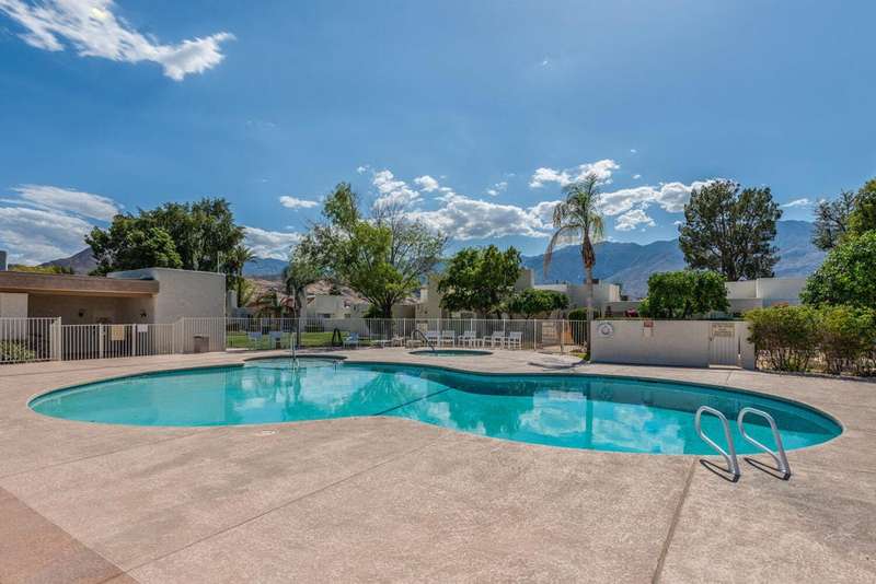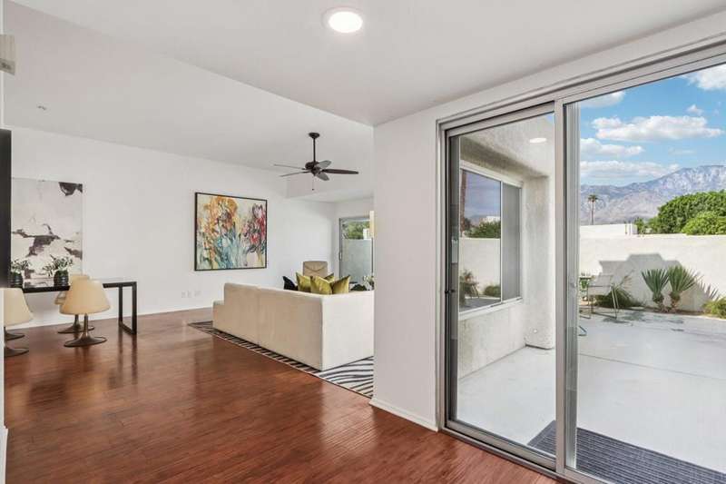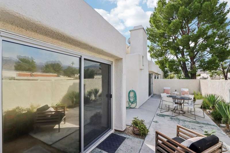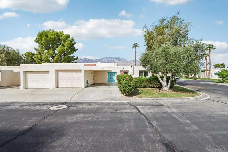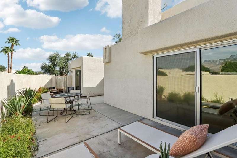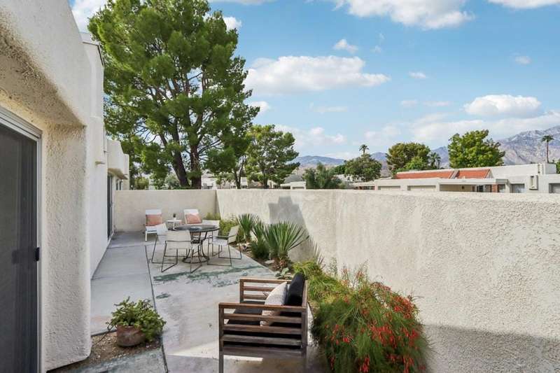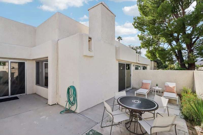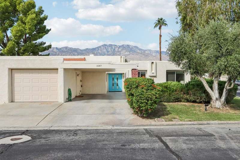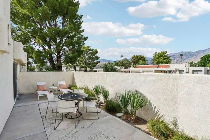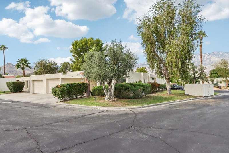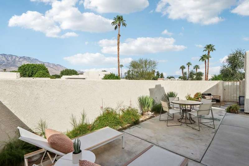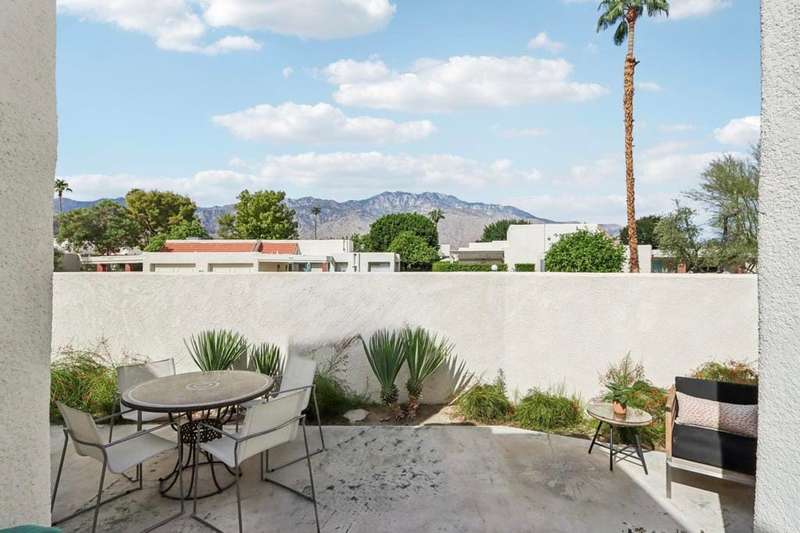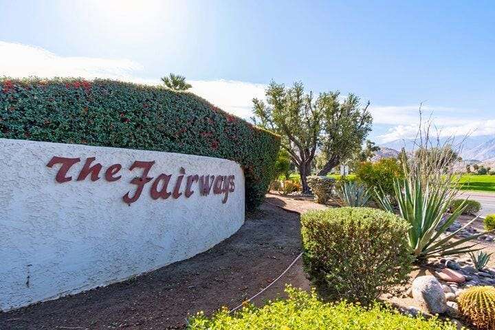 Experience resort-style living in the desert at The Fairways. Don't miss this rarely available single-level corner unit; recently and meticulously updated with no expense spared. At 1733 sq ft with 3 spacious bedrooms and 2.5 baths, this is one of the largest and most sought-after floor plans and locations. Step inside to panoramic mountain views and an open floor plan with high ceilings and fireplace that create an inviting living space. The approachable design brings light and nature inside with a wrap-around patio accessible throughout the home. The updated kitchen boasts a cozy breakfast area with built-in seating and extra storage. A spacious primary bedroom with ensuite bath and walk-in closet is complemented by two comfortable guest bedrooms and a guest bath plus the bonus of a half bath near the front entrance. Nicely tucked away on a quiet cul-de-sac with an attached 1 car garage complete with EV charging station and full-sized washer & dryer, as well as an attached carport that is perfect for an additional car or golf cart. The Fairways is a social gated community that offers monthly clubhouse events and includes 8 heated pools, ping pong, pickleball courts, and tennis courts. Championship golf with two 18-hole courses and driving range is across the street at Tahquitz Creek Golf Resort. Just a few blocks from convenient shopping and only minutes to downtown restaurants & entertainment. The latest expansion of the CVLink for hiking, biking and low-speed electric vehicles is now open and easily accessible from the property. https://coachellavalleylink.com/