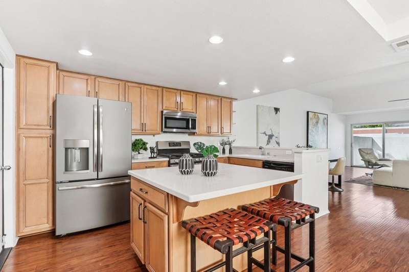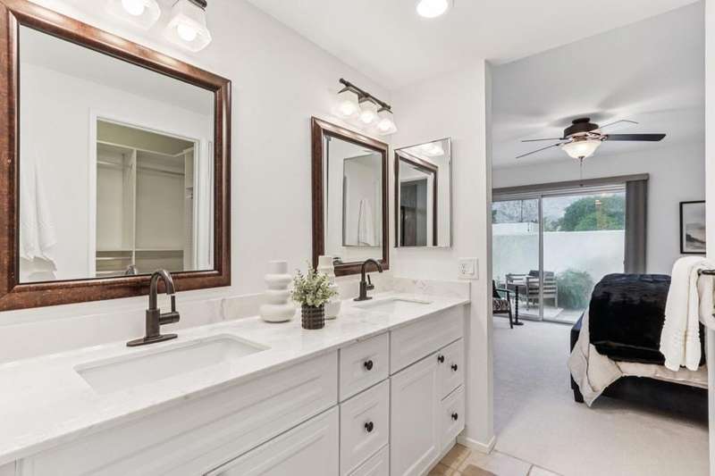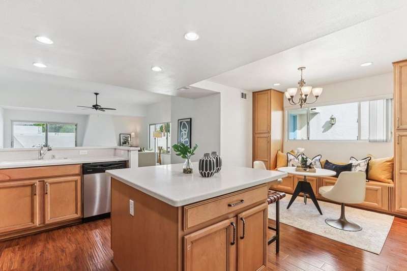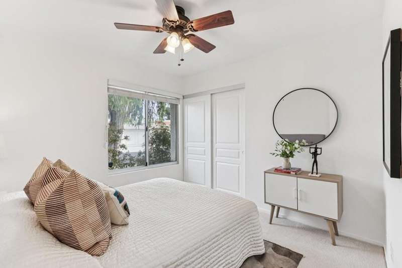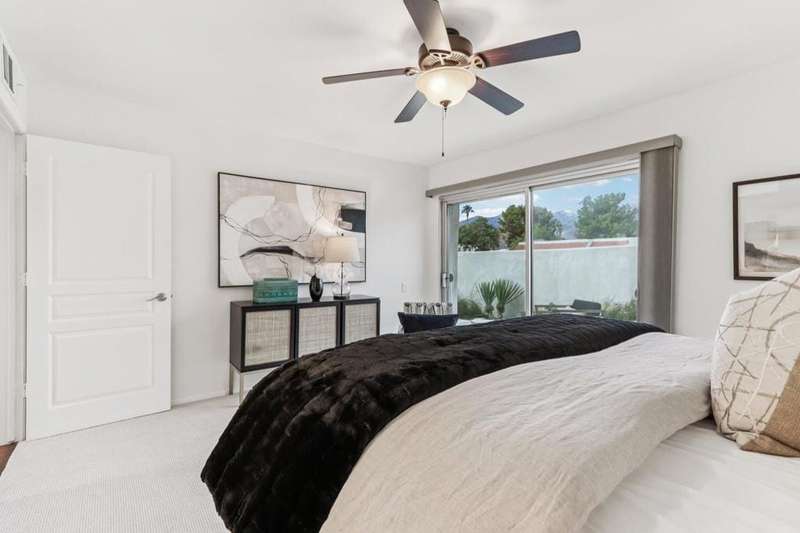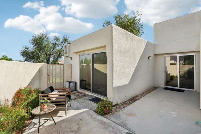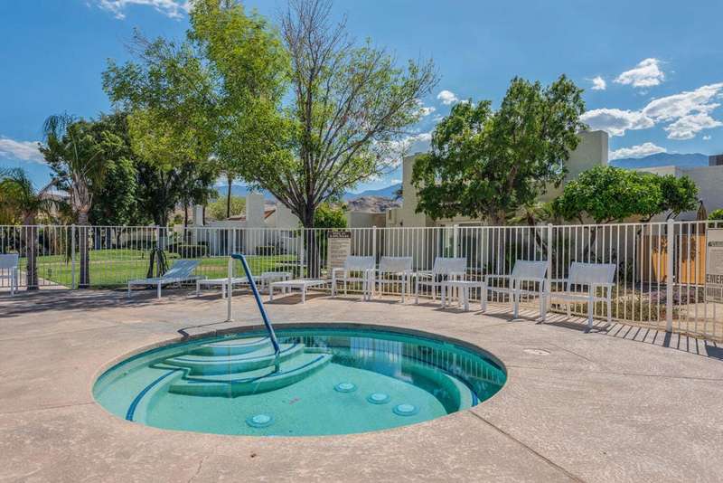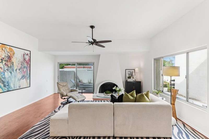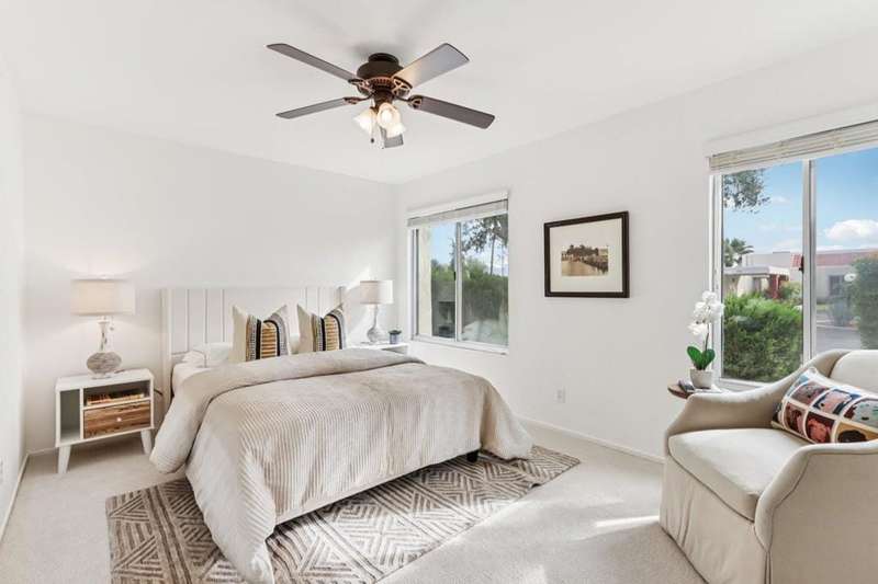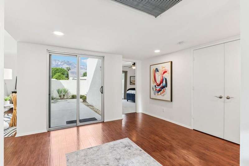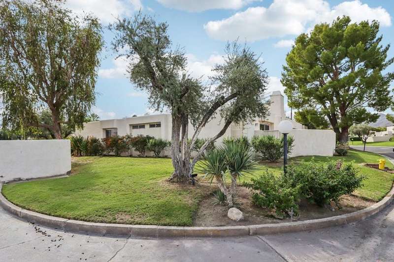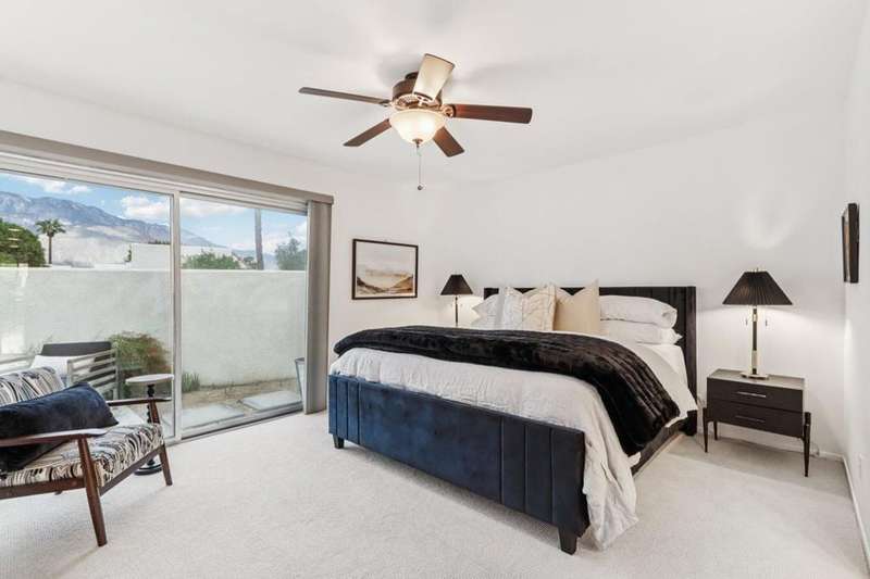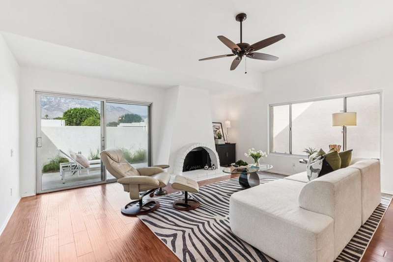 Experience resort-style living in the desert at The Fairways. Don't miss this rarely available single-level corner unit; recently and meticulously updated with no expense spared. At 1733 sq ft with 3 spacious bedrooms and 2.5 baths, this is one of the largest and most sought-after floor plans and locations. Step inside to panoramic mountain views and an open floor plan with high ceilings and fireplace that create an inviting living space. The approachable design brings light and nature inside with a wrap-around patio accessible throughout the home. The updated kitchen boasts a cozy breakfast area with built-in seating and extra storage. A spacious primary bedroom with ensuite bath and walk-in closet is complemented by two comfortable guest bedrooms and a guest bath plus the bonus of a half bath near the front entrance. Nicely tucked away on a quiet cul-de-sac with an attached 1 car garage complete with EV charging station and full-sized washer & dryer, as well as an attached carport that is perfect for an additional car or golf cart. The Fairways is a social gated community that offers monthly clubhouse events and includes 8 heated pools, ping pong, pickleball courts, and tennis courts. Championship golf with two 18-hole courses and driving range is across the street at Tahquitz Creek Golf Resort. Just a few blocks from convenient shopping and only minutes to downtown restaurants & entertainment. The latest expansion of the CVLink for hiking, biking and low-speed electric vehicles is now open and easily accessible from the property. https://coachellavalleylink.com/