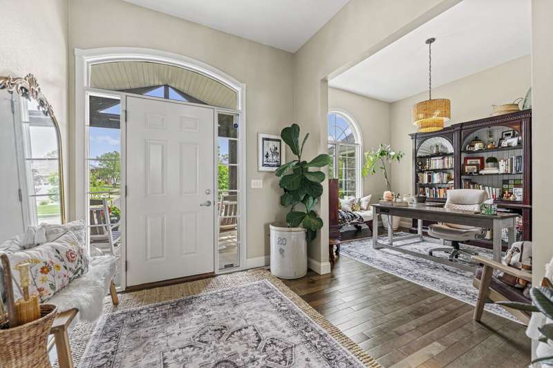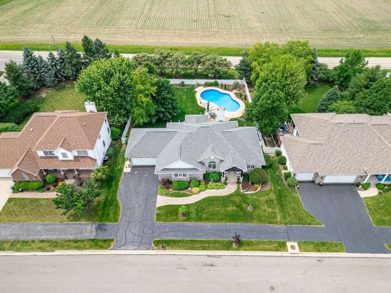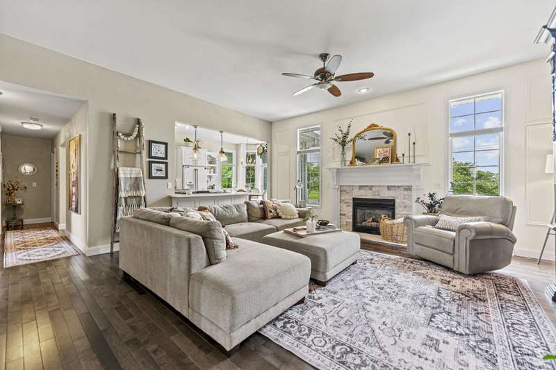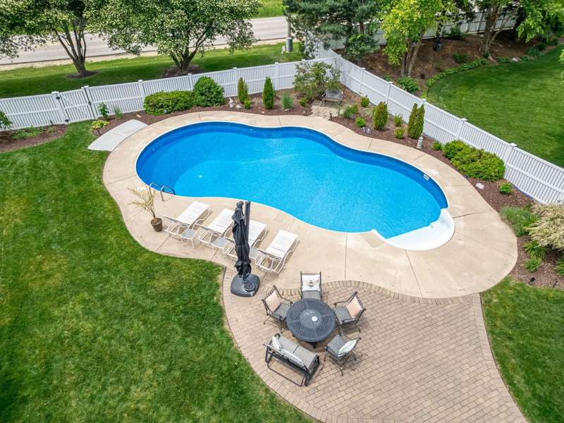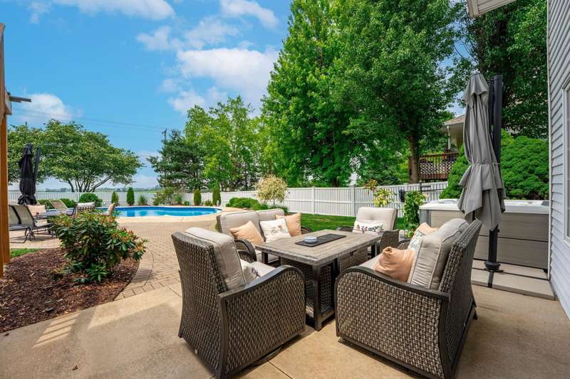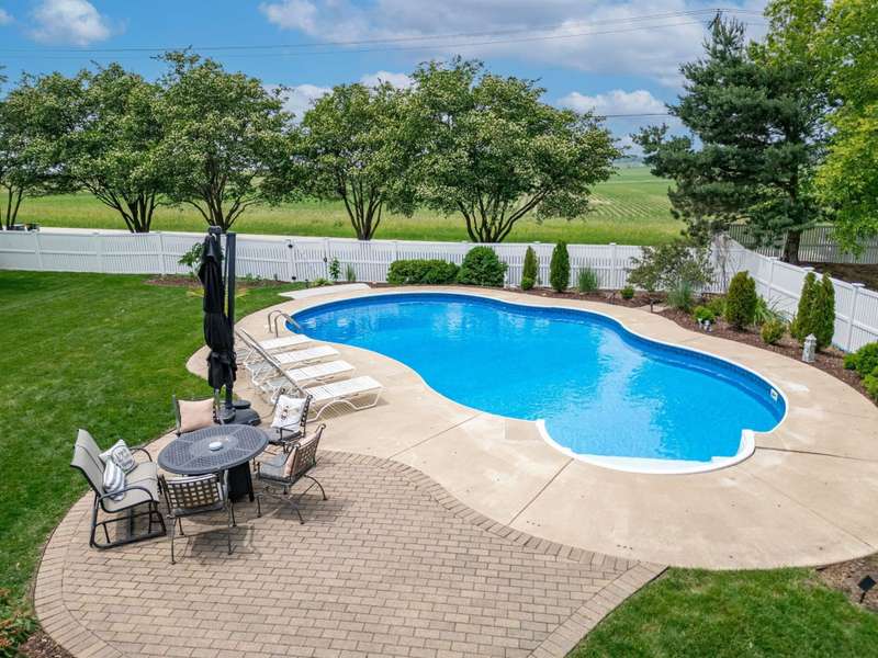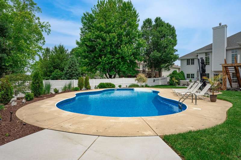 Luxury Living in Inverness, A Rare Ranch Retreat! Step into elegance in this stunning 3,786 square foot ranch home nestled in the highly sought-after Inverness community, known for its tranquil pond, scenic walking path, and inviting playground. This beautifully updated home blends timeless craftsmanship and Craftsman features with refined modern touches, offering the perfect balance of comfort and sophistication. The light-filled great room boasts gleaming hardwood floors and a cozy fireplace, seamlessly flowing into the gourmet kitchen. An entertainer’s dream, it features a professional Italian Ilve range, quartz countertops, stone backsplash, and extensive custom cabinetry. Dine in style with floor-to-ceiling windows that wrap the dining area in natural light and provide picturesque views of your private, fenced backyard oasis. Step onto the expansive deck, where a sparkling in-ground pool and hot tub await, framed by sweeping views of the open land beyond offering pure serenity. A removeable fence provides safety in the pool area. The split-bedroom floor plan offers thoughtful privacy, including a primary suite with a spa-inspired bath and generous walk-in closet. The finished walkout lower level expands your lifestyle with a spacious family room, bonus room, full bath, and guest bedroom. Convenient direct patio access and a new maintenance free deck makes it ideal for effortless indoor-outdoor entertaining. This is more than a home, it’s a daily retreat where luxury meets leisure. Move-in ready and made for making memories.