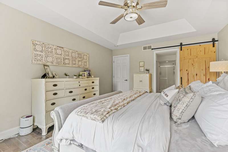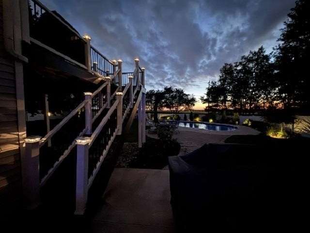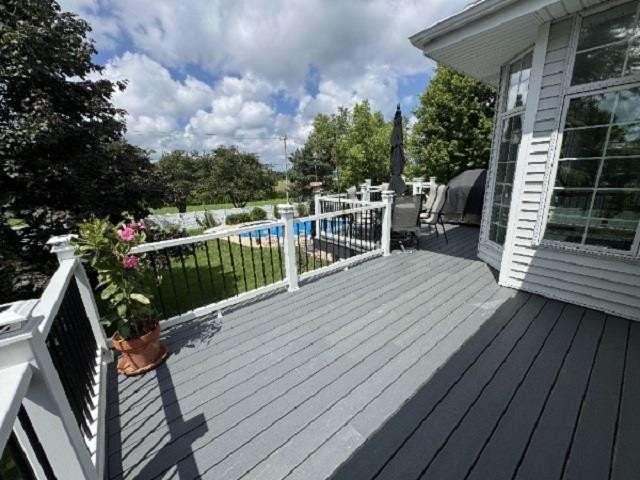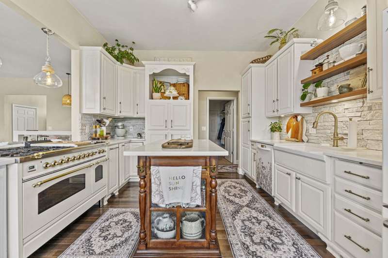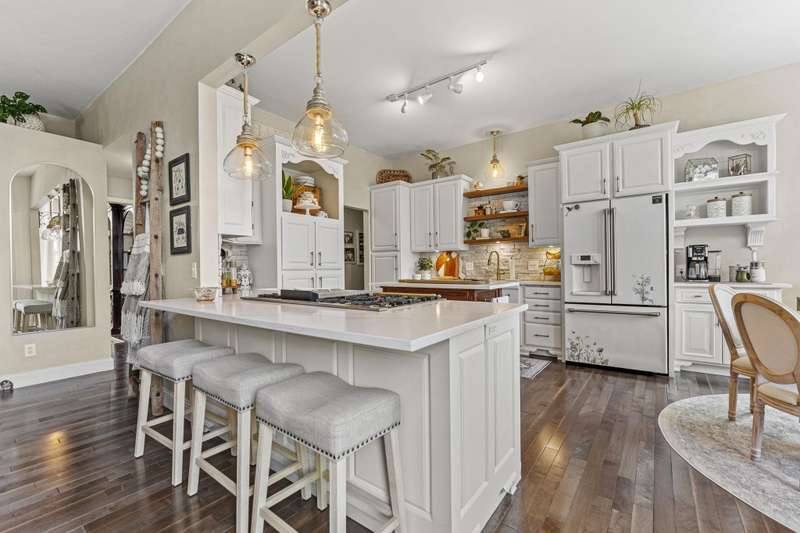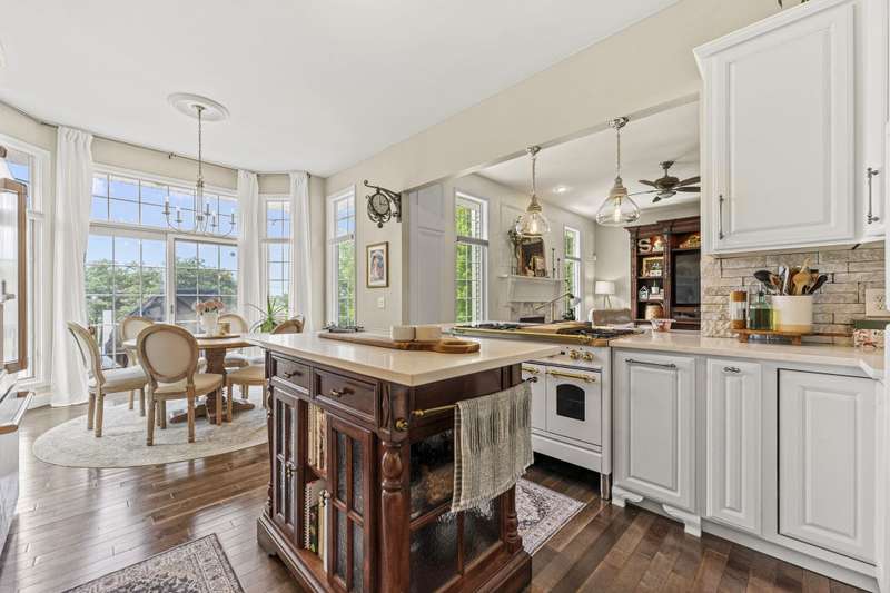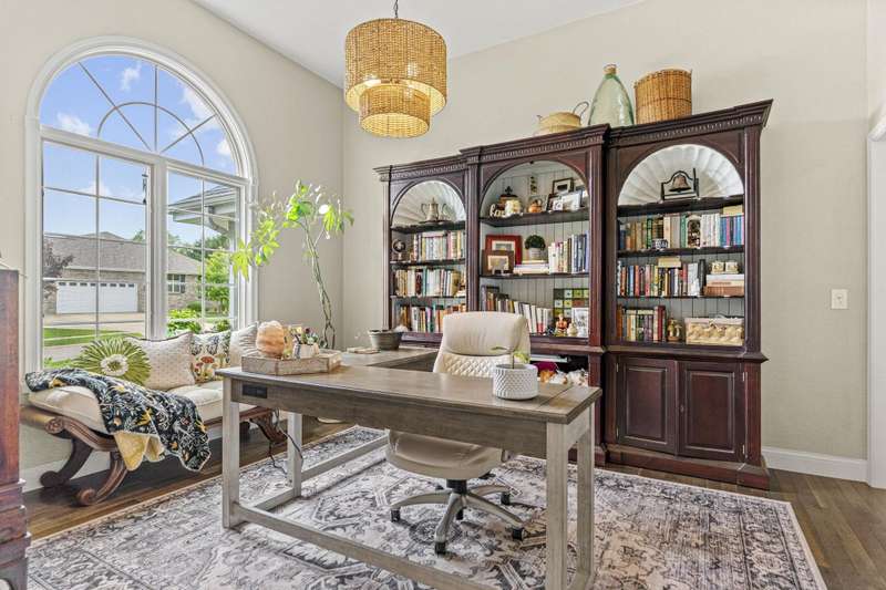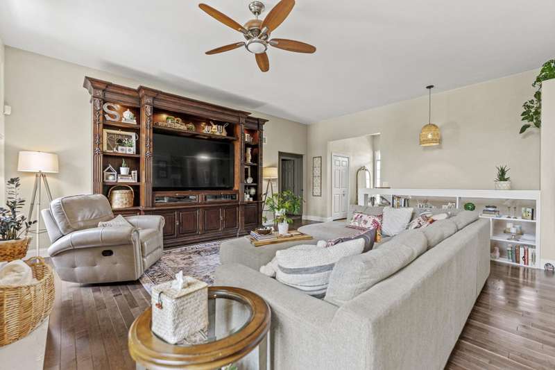 Luxury Living in Inverness, A Rare Ranch Retreat! Step into elegance in this stunning 3,786 square foot ranch home nestled in the highly sought-after Inverness community, known for its tranquil pond, scenic walking path, and inviting playground. This beautifully updated home blends timeless craftsmanship and Craftsman features with refined modern touches, offering the perfect balance of comfort and sophistication. The light-filled great room boasts gleaming hardwood floors and a cozy fireplace, seamlessly flowing into the gourmet kitchen. An entertainer’s dream, it features a professional Italian Ilve range, quartz countertops, stone backsplash, and extensive custom cabinetry. Dine in style with floor-to-ceiling windows that wrap the dining area in natural light and provide picturesque views of your private, fenced backyard oasis. Step onto the expansive deck, where a sparkling in-ground pool and hot tub await, framed by sweeping views of the open land beyond offering pure serenity. A removeable fence provides safety in the pool area. The split-bedroom floor plan offers thoughtful privacy, including a primary suite with a spa-inspired bath and generous walk-in closet. The finished walkout lower level expands your lifestyle with a spacious family room, bonus room, full bath, and guest bedroom. Convenient direct patio access and a new maintenance free deck makes it ideal for effortless indoor-outdoor entertaining. This is more than a home, it’s a daily retreat where luxury meets leisure. Move-in ready and made for making memories.