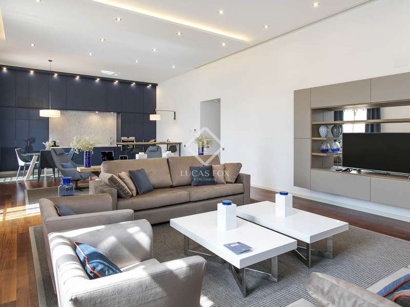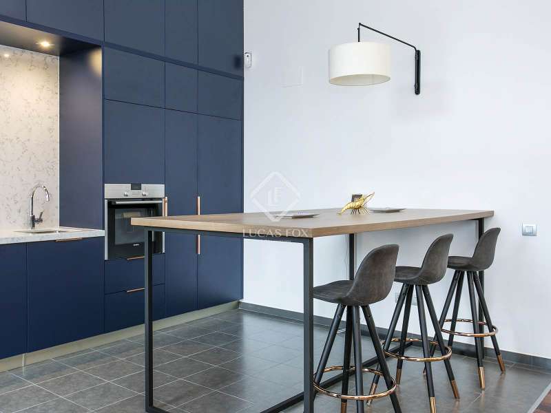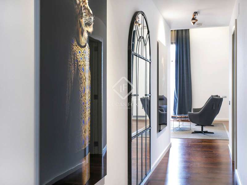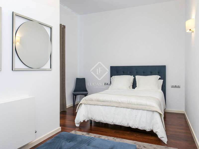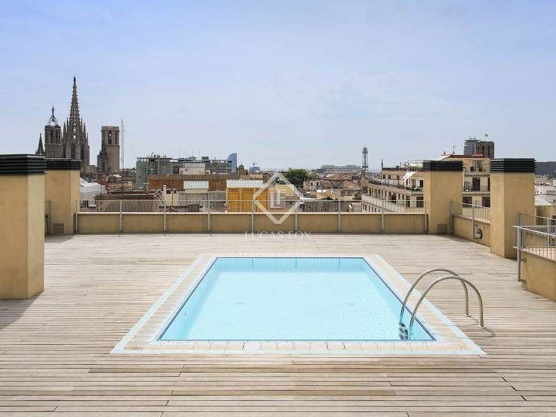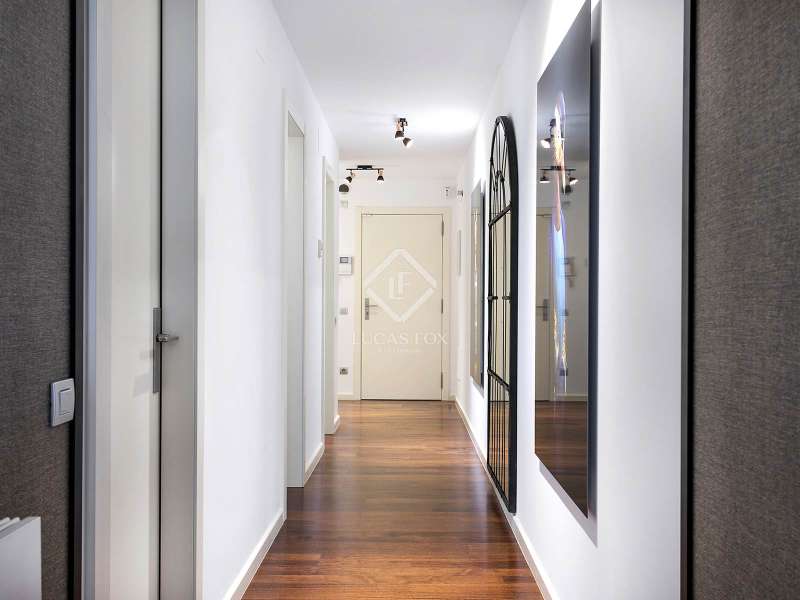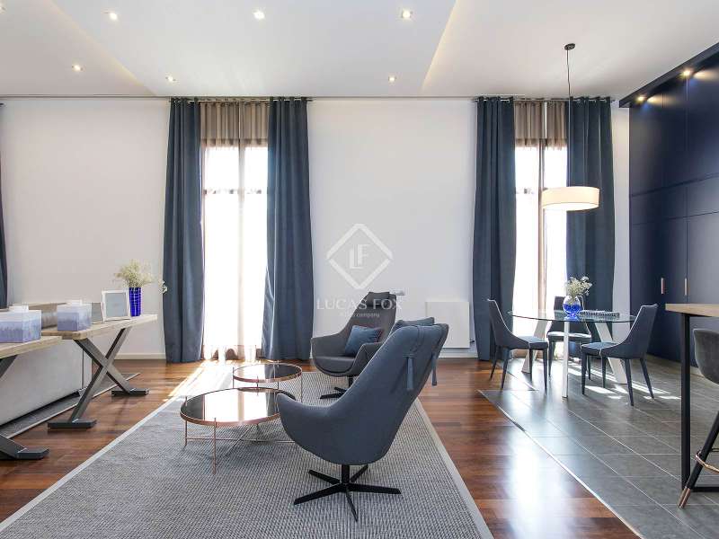 This bright, modern apartment is being sold completely renovated, tastefully furnished, and ready to move into. It stands out for its high ceilings and spacious open-plan living room . Its location in the heart of Barcelona is ideal, yet it enjoys a peaceful atmosphere. Upon entering, a long corridor leads to a bright, open-plan 80 m² space that houses the living room, dining room , and kitchen. The other rooms are to the right of the corridor. There is also a single and double bedroom with built-in wardrobes and private bathroom, as well as an study that could be converted into an additional bedroom . Finally, there is a laundry area with a washing machine and dryer, as well as a full bathroom with a shower. The property has air conditioning and gas heating, while La Finca has a communal rooftop pool and a communal gym on the second floor. It also offers concierge service.
