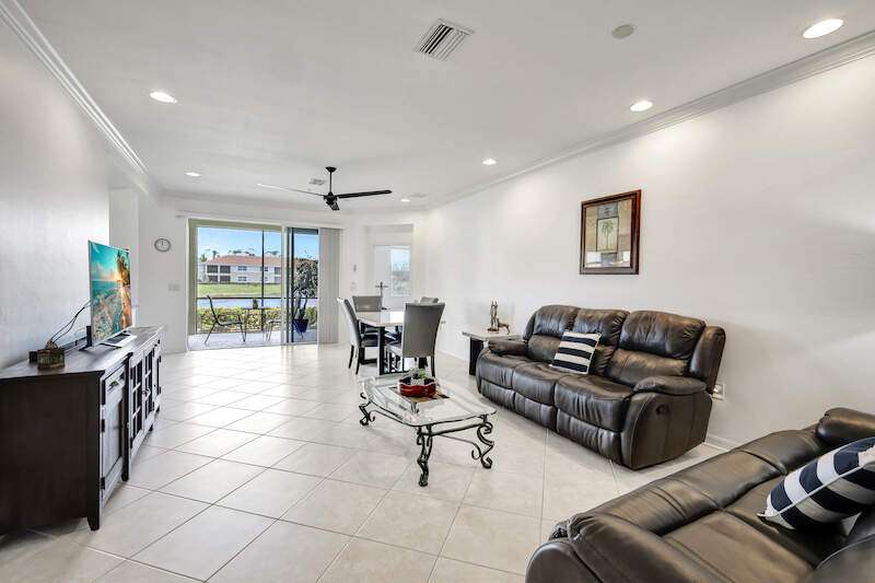 Exquisite Lakeside Luxury in Shadow Wood Preserve at a NEW IMPROVED PRICE! Step into refined elegance with this stunningly renovated residence in Bay Woods at Shadow Wood Preserve. This turnkey 2-bedroom + den, 2-bath luxury retreat offers a seamless blend of sophisticated design and breathtaking Western lake views, creating the perfect setting for captivating sunsets each evening. As you enter this first-floor end unit, natural light pours in, enhancing the expansive, open layout. Every detail has been meticulously curated, the crown molding and recessed lighting, elevating the ambiance with a timeless elegance. The chef's kitchen is a masterpiece of both form and function, featuring soft-close cabinetry and premium stainless steel appliances. The primary suite is a sanctuary of comfort, boasting two custom walk-in closets and contemporary furnishings and a luxuriously en-suite bath. The guest bath mirrors the same level of sophistication, ensuring an elevated experience for visitors. A versatile den with double doors provides the flexibility of a private home office or additional guest space. Step outside to a tranquil screened lanai with a wonderful outdoor living experience. The attached one-car garage and newer roof ensure both convenience and peace of mind. Nestled on a serene corner lot just steps from the community pool and spa, this residence offers an exceptional lifestyle. Shadow Wood Preserve's world-class amenities include a canoe/kayak launch, scenic nature trails, a fishing pier, tennis, pickleball, bocce, and more. HOA fees cover fiber-optic television, high-speed Wi-Fi, water, and insurance, while optional memberships to Shadow Wood Country Club provide access to 54 holes of championship golf, and The Commons Club offers private beach access, a state-of-the-art lifestyle center, and exquisite dining experiences. Ideally situated in the heart of Southwest Florida, just minutes from Coconut Point, pristine beaches, and RSW International Airport, this exceptional home presents an unparalleled opportunity to embrace the ultimate luxury lifestyle in SWFL.