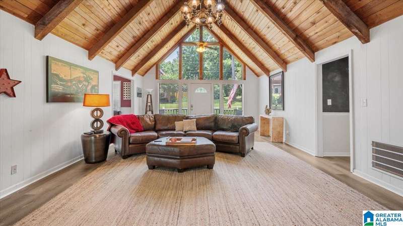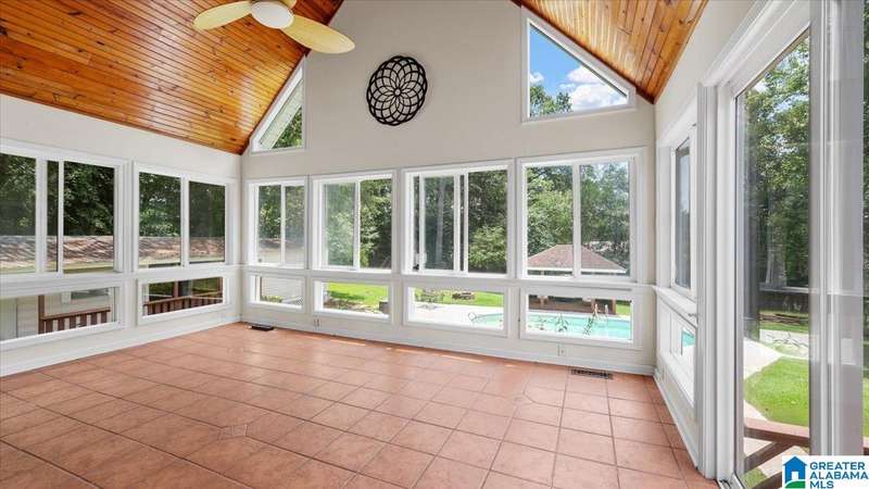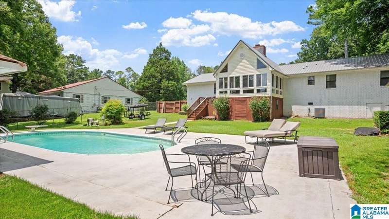 OPEN HOUSE - Sunday, Sept 21 from 2-4! PRIVATE RETREAT IN CLAY near SHRINER LAKE. Nice flat lot. Full brick, IN-GROUND POOL with gazebo, huge 16x12 heated workshop with bay door and 18x11 storage building with decking remains. New HVAC 2014, New roof 2013. Nice updates including fresh paint & new flooring. All electric except gas fireplace. Open deck for grilling, massive enclosed sunroom with panoramic windows and cathedral wood ceiling, overlooking entire back yard. Soaring wood A-frame great room with stone fireplace, formal dining room, kitchen with eat-in breakfast area, spacious laundry room w/ storage cabinets, attached one car garage. 3 bedrooms, 2 baths with oversize master bedroom and separate tiled shower. Shared full bath features deep jetted tub and shower. Very well kept home. Rare opportunity to own a home on this private street, adjoining Shriner Lake. Pool equipment and furniture to remain.