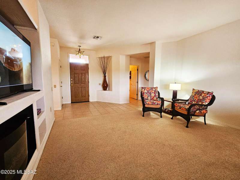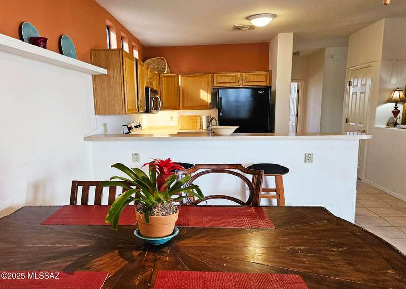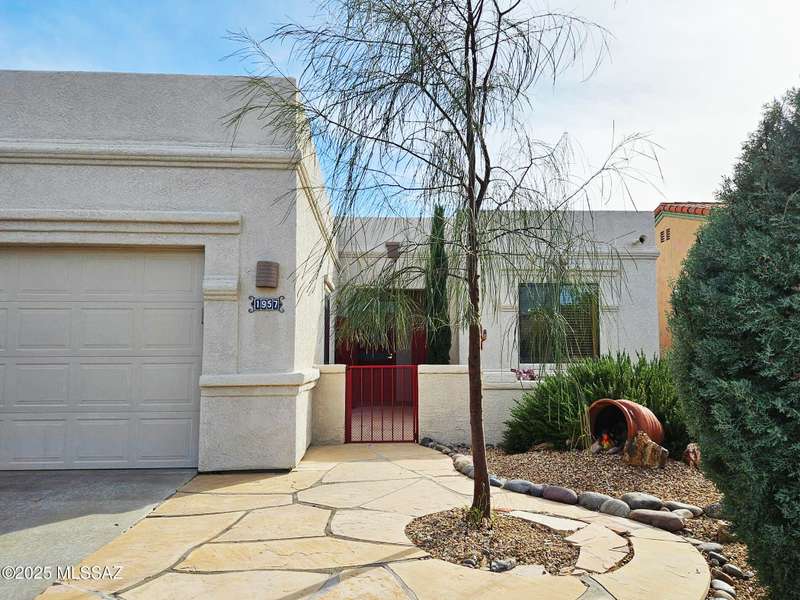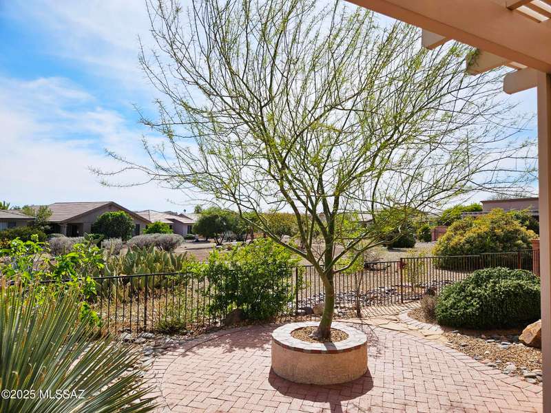 If you are seeking a home that has been lovingly cared for and is move-in ready, your search is over! Come see this two-bedroom, two-bath home in San Ignacio Vistas II, featuring 1,269 sq ft, neutral flooring, a great room, eat-in kitchen, laundry, and 2-car garage. This home feels open and spacious, so don't let its small size fool you. being sold partially FURNISHED! This property showcases the professional landscaping talents of the owner. It was designed with entertaining in mind. The front courtyard adds an extra element to the curb appeal. The rear patio is exceptional, situated in a park-like setting with mature shrubbery, an attached pergola, plus a view of the Santa Ritas. Both the front and rear areas are ideal