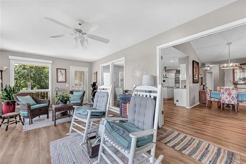 Enjoy breath taking views, from your 24x12 enclosed sunroom, of the Scotsdale golf course valley. This 4 bed 3 bath home comes with custom blinds & new Luxury Vinyl Plank flooring throughout, with 2 beds up and 2 beds in the downstairs. The Primary bedroom has great views from the bay window, a walk-in closet and the renovated bathroom has a new soaker tub and a handicap accessible walk-in shower. The kitchen has granite tops, a giant pantry, a modern new lighted vent hood and a new dishwasher. Step out on the covered/pergola deck for relaxation and your morning beverage. The pellet stove heats the entire basement: 2 beds and a full bath, a wet bar, around the house access with endless possibilities. (Air BnB or possible apartment). Walk out to a covered wrap around porch. The unfinished 340 sqft storage/golf cart/work-out room is heated and cooled, allowing you to be creative for your needs/pleasure. The double door access has a concrete cart/sidewalk from the parking in front of the attached 3 car garage up top.