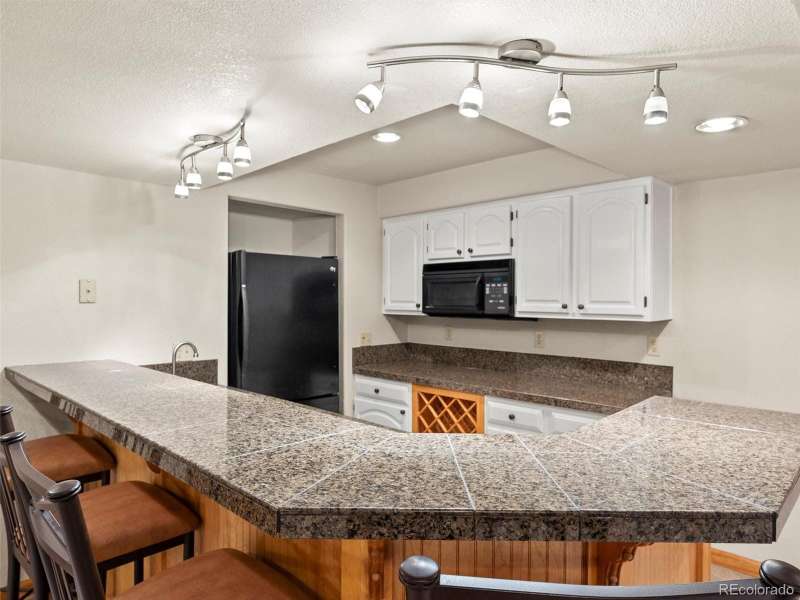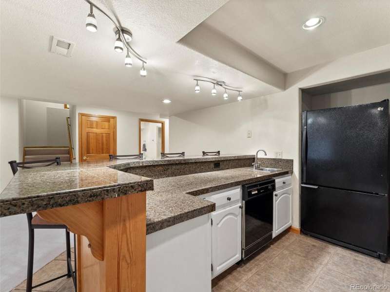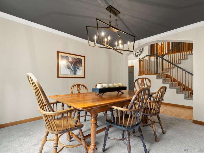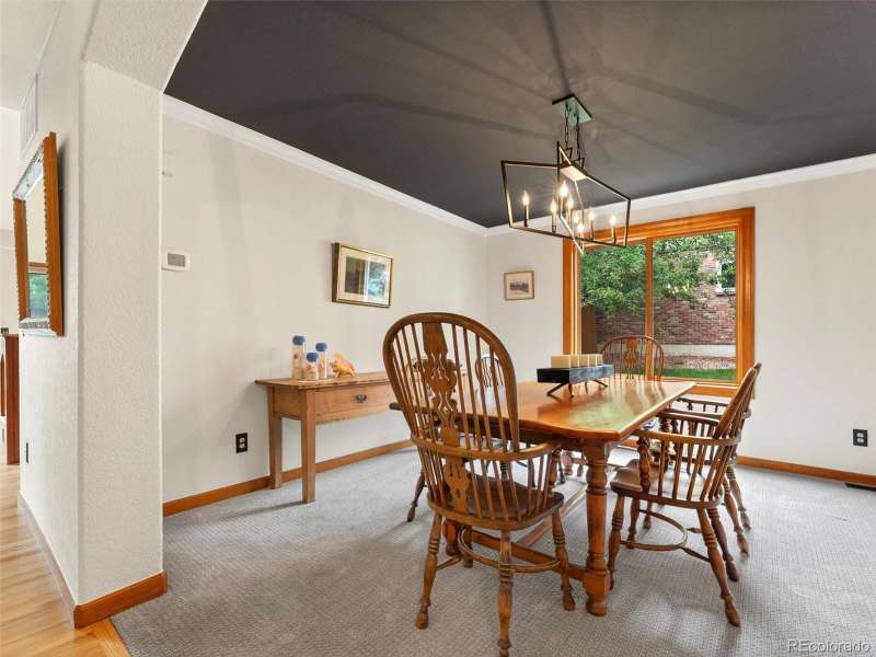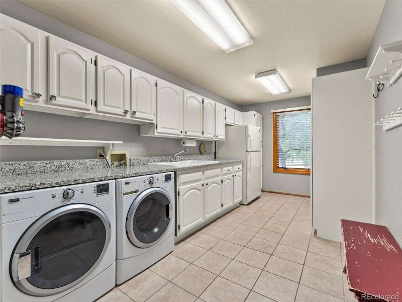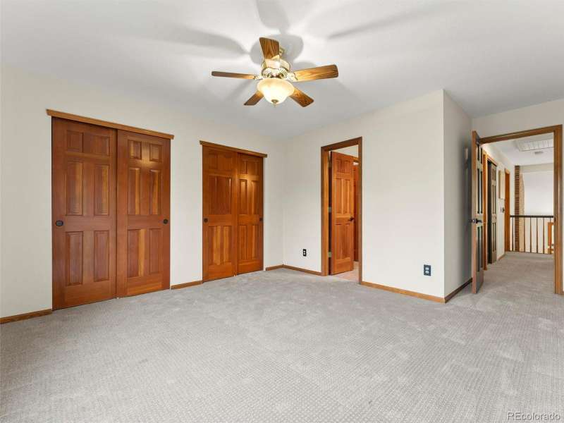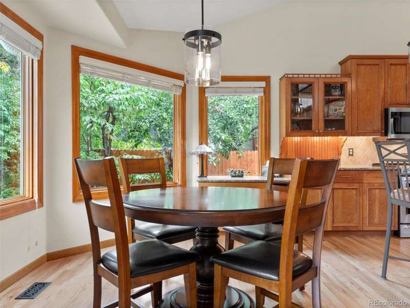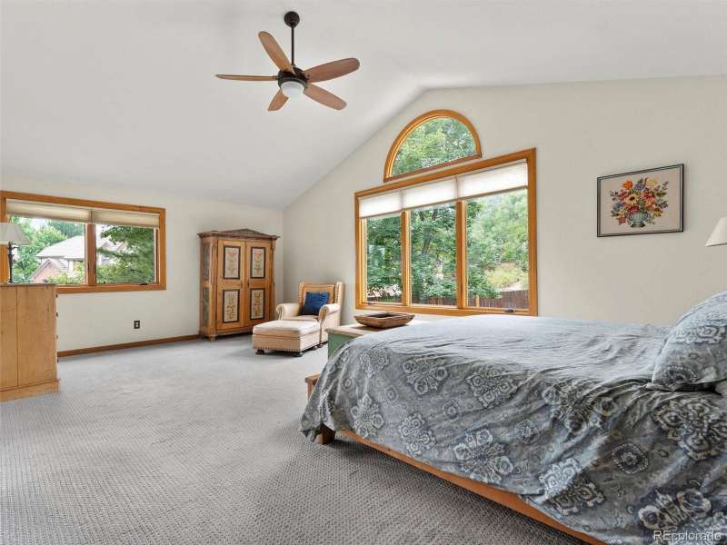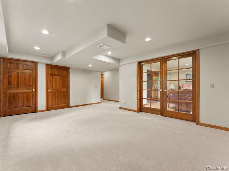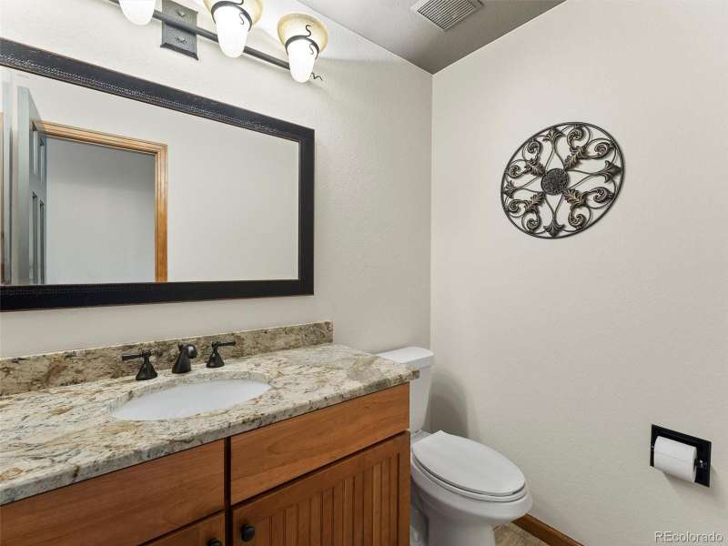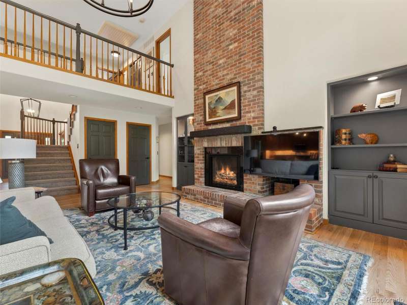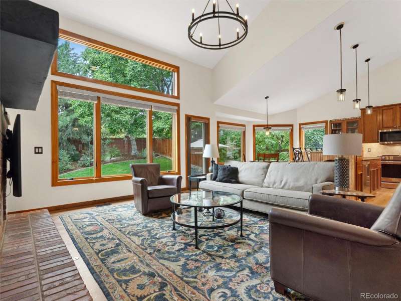 Welcome to this beautifully maintained home in the highly desirable Ridgeview neighborhood of Lone Tree, offering outstanding curb appeal with a side-load garage, mature trees, and professional landscaping. Inside, a voluminous open floor plan highlights a two-story foyer, vaulted living room, formal dining room, and hardwood floors that flow into the kitchen and family room. The two-story family room showcases dramatic picture windows that bring the outdoors in, built-in glass cabinetry and bookcase, and an impressive brick gas fireplace. The updated kitchen features custom cabinetry with glass doors, stainless steel appliances, granite counters, and a spacious eating area framed by oversized picture windows. The main-floor primary suite is exceptionally large with a vaulted ceiling, two walk-in closets, and a remodeled bath (2022) with heated tile floors, while the main level also includes a generous laundry room with ample cabinetry, closet space, and utility sink. Upstairs are three spacious bedrooms and an updated full bath. The bright garden-level basement offers abundant natural light with a rec room, fireplace, wet bar, fifth bedroom, newly updated bath, and a versatile bonus room perfect for exercise, play, or hobbies. Updated windows throughout, stamped concrete patio with electric awning, and a beautifully landscaped, private backyard complete this home. Thoughtful recent updates include new carpet, refinished wood floors, fresh interior and exterior paint, and a brand-new driveway. All within walking distance to Eagle Ridge Elementary, Cook Creek Pool, Lone Tree Golf & Tennis Center, Bluffs Regional Park, and miles of walking paths.