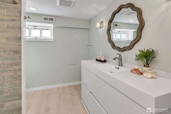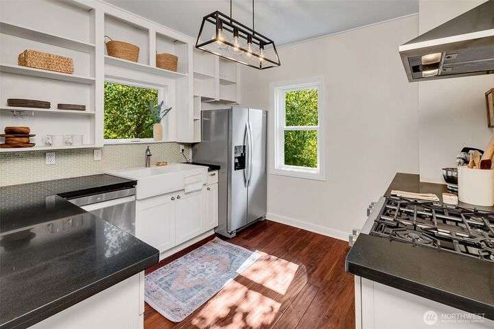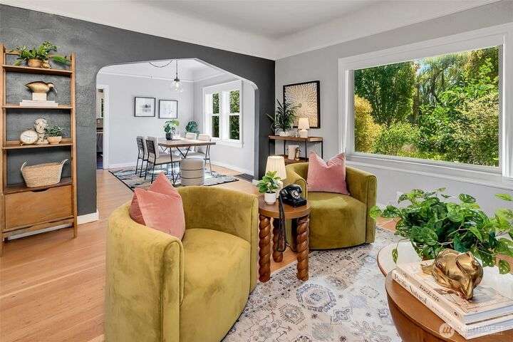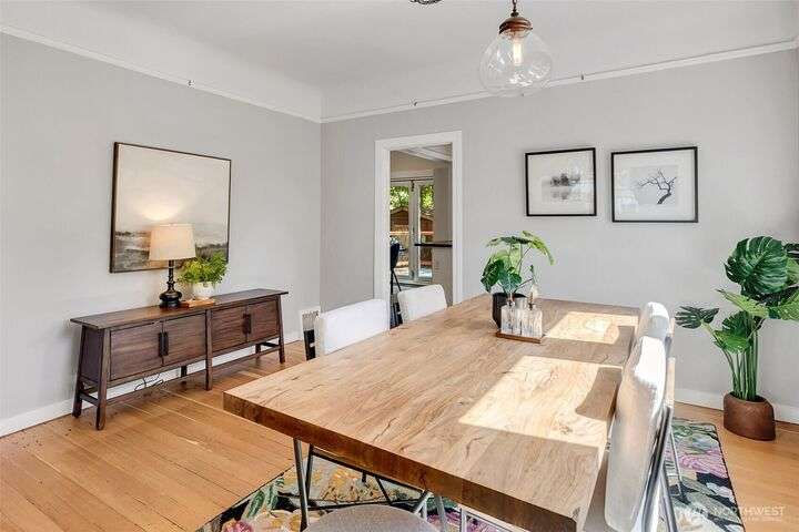 This Hillman City classic offers 3 bedrooms, 2 baths, and a fully finished basement with second kitchen—perfect for guests or multi-generational living. Set on a sunny corner lot, it blends 1900s charm with modern updates. Enjoy a shady backyard with mature fruit trees, shrubs, and herbs, a fenced back yard is great for pets, shed, and patio that extends summer living. Spacious deck, off-street parking, and cool basement retreat adds comfort. Across the street, an active P-patch fosters community. Walk to Seward Park, playgrounds, and nearby favorites, with quiet streets and quick access to downtown.