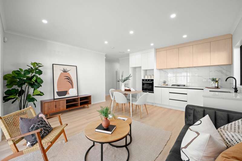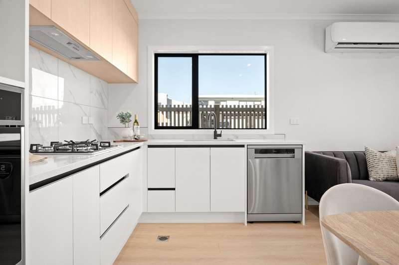 Enjoy the benefits of spacious open-plan living, with high-stud ceilings and a neutral colour palette creating light-filled interiors that feel bright and welcoming. The heart of the home is the contemporary kitchen-complete with quality appliances, great storage, and seamless flow to the living and dining spaces.