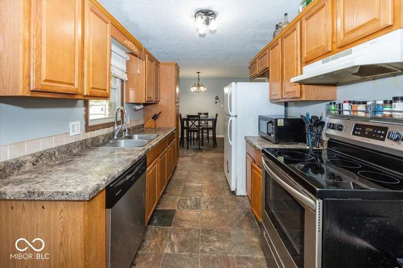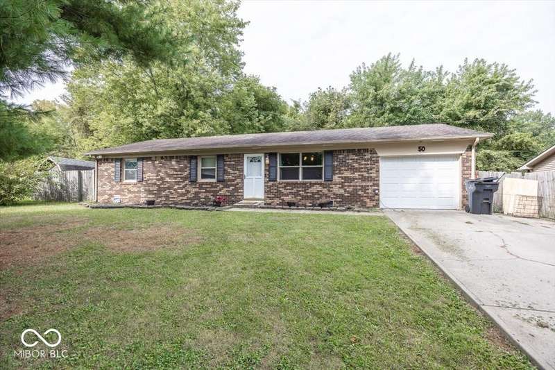 Take a tour of this all-brick 3-bedroom, 1.5-bath ranch home in a quiet, established Mooresville subdivision. The floor plan offers a spacious family room with laminate hardwood flooring and wall openings that create an open flow to the dining area, featuring rustic ceramic tile flooring which flows right into the galley kitchen. The primary bedroom includes a private half bath, while two additional bedrooms share access to the full bathroom. Outdoors, the property offers a nicely sized yard with mature trees and tons of privacy. Located just five minutes from State Road 67, you'll have quick access to retail, restaurants and much more.... With a solid layout and desirable location, this home is an excellent opportunity for a first-time buyer or anyone looking to make a space their own.