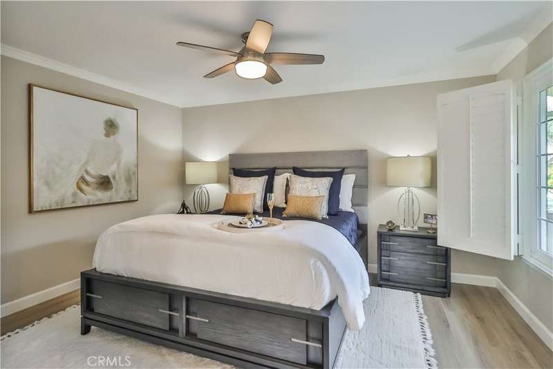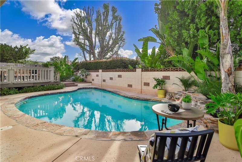Charming Single-Story Stunner in Highly Desirable Wildwood Neighborhood. Discover this beautifully updated 4-bedroom, 2-bathroom home nestled in the coveted Wildwood neighborhood. Situated on a peaceful cul-de-sac, this single-story gem offers a perfect blend of modern upgrades and timeless charm. From the moment you arrive, you'll be captivated by the mature landscaping, brick hardscape walkways, and fresh exterior paint. Inside, the home is filled with natural light, plantation shutters, recessed lighting, and stylish new fixtures, including ceiling fans in each room. The inviting formal living room boasts vaulted ceilings, a cozy brick gas fireplace, and built-in bookcases, creating an ideal space for entertaining or unwinding. The open-concept layout flows into the dining area and kitchen, where you'll find granite countertops, stainless steel appliances, solid wood cabinets, and a bay window with partial Wildwood Mesa views. A large walk-in pantry adds extra storage and convenience. The primary suite is a peaceful retreat with a walk-in shower and serene atmosphere. The additional bedrooms and updated bathroom feature freshly painted vanity and elegant crown molding. Step outside to the tropical entertainer’s backyard, featuring a newly painted deck with a built-in jacuzzi, a fully serviced pool, and a tranquil Zen fountain and waterfall. Several outdoor seating areas provide the perfect setting for relaxation or hosting gatherings. This home also includes solar panels for energy efficiency, built-in storage cabinets in the garage, and a spacious 2-car garage with ample parking. Ideally located just a short walk to tennis and basketball courts, soccer fields, and scenic hiking trails in Wildwood Park, with Wildwood Elementary School nearby, this home offers an exceptional lifestyle. Don't miss this rare opportunity to own a meticulously maintained home in one of Thousand Oaks' most sought-after neighborhoods!