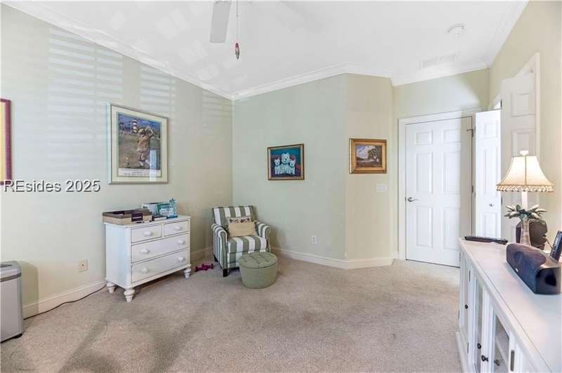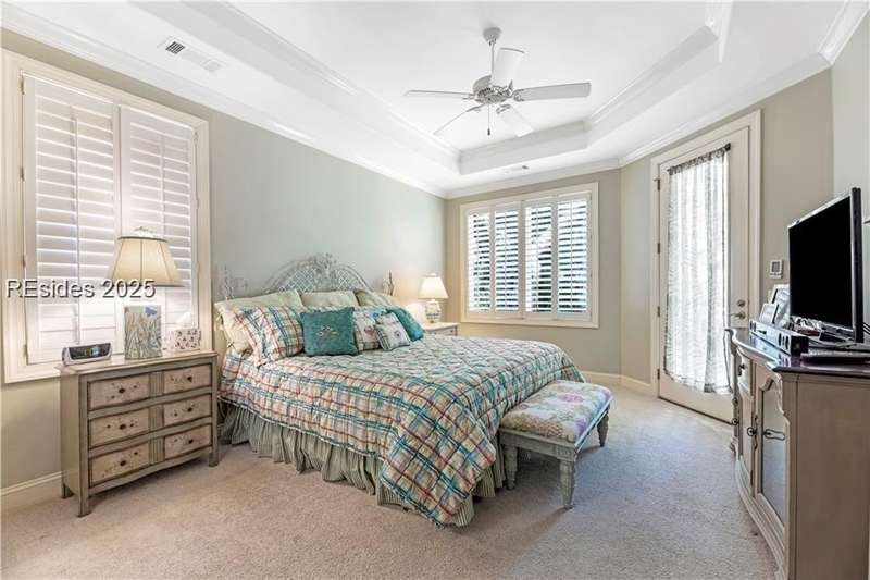 Beautiful, extremely well-maintained home in amenity-rich Moss Creek. Many architectural enhancements include high ceilings, crown molding, trey ceilings throughout, smooth ceilings & rounded edges. Located on a quiet street w/ tranquil lagoon view from the back deck. Updated kitchen-GE Profile appliances, convection oven w/ second speed convection, oven/microwave, & gas stove top. Eat-in kitchen w/ walk-out to back porch. Spacious bonus room above garage w/ full bath. Amenities include 2 private 18-hole golf courses, tennis, pickleball, community pool, marina, clubhouse, & more. Owner LSCRA.