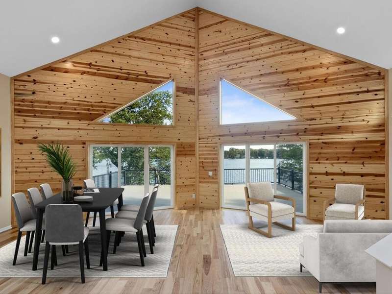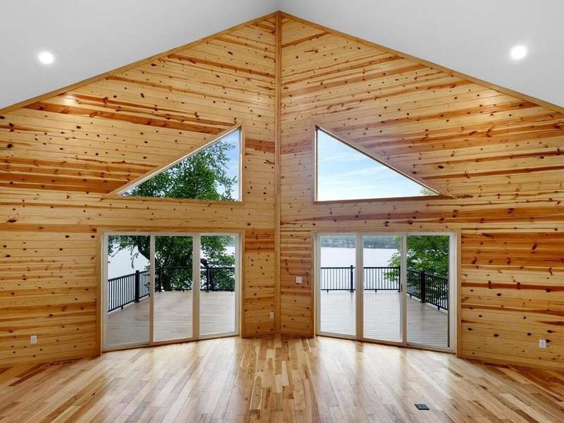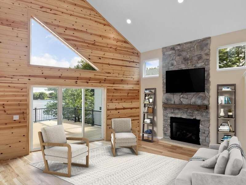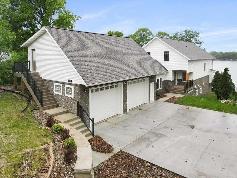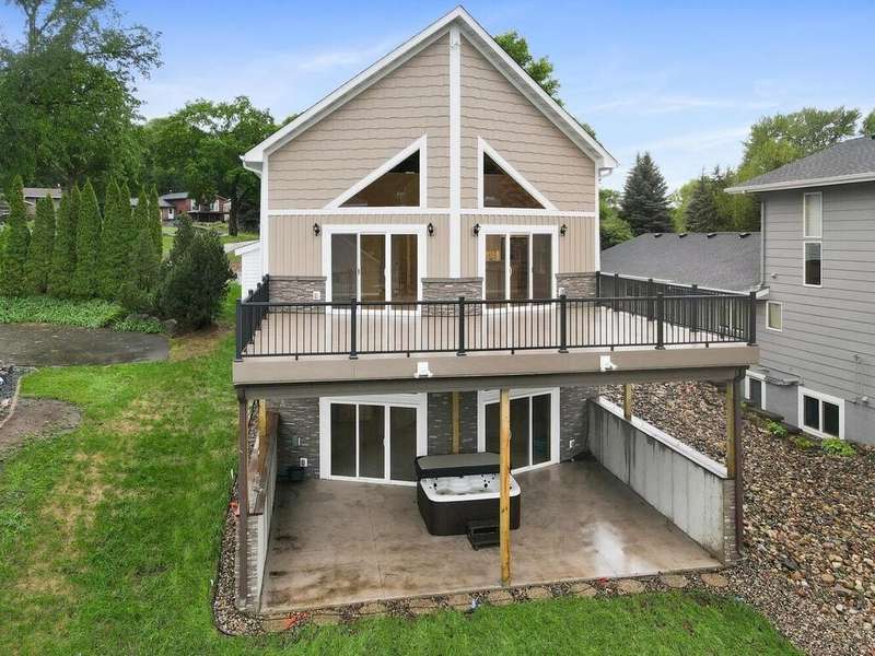 Experience luxury living at its finest with this new construction home on the pristine shores of Spring Lake. Offering nearly 5,000 sq. ft. of expansive living space, this home features 2 bedrooms on the main floor, including the luxurious primary suite, plus 2 additional bedrooms on the upper level. The open-concept main floor boasts vaulted ceilings, wood accents, and a floor-to-ceiling stone fireplace, creating a warm and inviting atmosphere. The spacious kitchen with a large center island flows into the great room and out to a large Trex deck, offering sweeping lake views. Upstairs, you'll find a loft area perfect for gaming or study. The lower level is an entertainer's dream with a 12' cedar ceiling, in-floor heating, an indoor heated pool, sauna, wet bar, and direct access to the lakefront patio. Above the garage, a bonus room offers endless possibilities, with easy access via spiral staircase or side garage door. Just minutes from Prior Lake Schools, parks, and year-round recreation, this home provides the ultimate lakefront lifestyle.