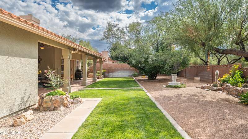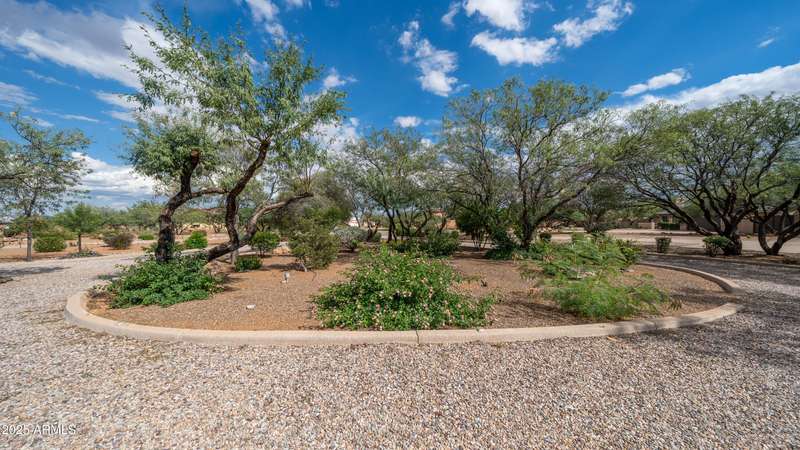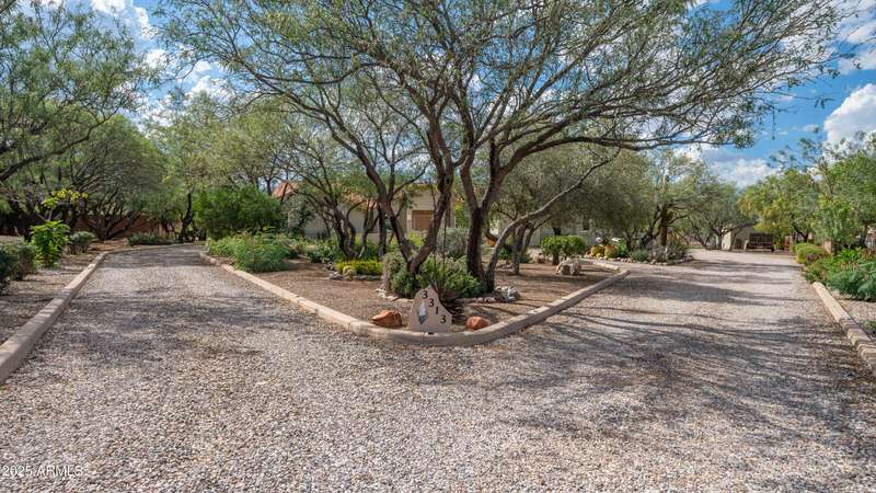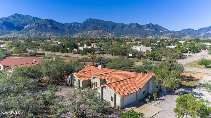 Awesome Mountain Views from your Cul-de-sac Home w/Circular drive, Plus drive thru to Equestrian Dr. for Bonus access!!! Gorgeous, mature front plantings create a very private setting...Welcome your Guests and enjoy from your lovely Front Courtyard!!! Double Door Entry into your Great Room Concept Living...Kitchen, DR, Guest Bedrooms/Bath, Laundry, Garage on one side...Living Room and Master Bedroom Suite on the other...Straight ahead, go thru to your full-length, Covered Patio and Stunning Backyard...featuring lush grass, lovely gardens, and peaceful mountain views!!! 2 storage sheds...one inside the backyard block wall, the other on the outside...LOTS of storage...ALL on over an acre, very convenient to Fort Huachuca, minutes to Town, Medical, Shopping, and all things Sierra Vista!!!