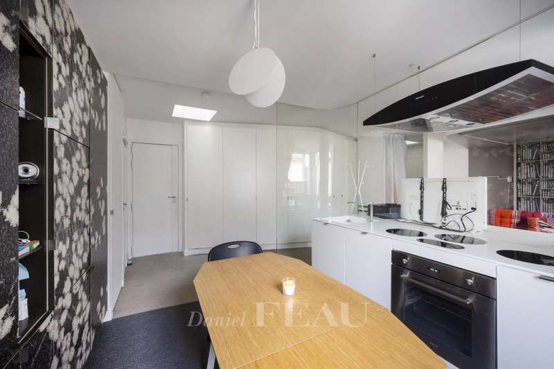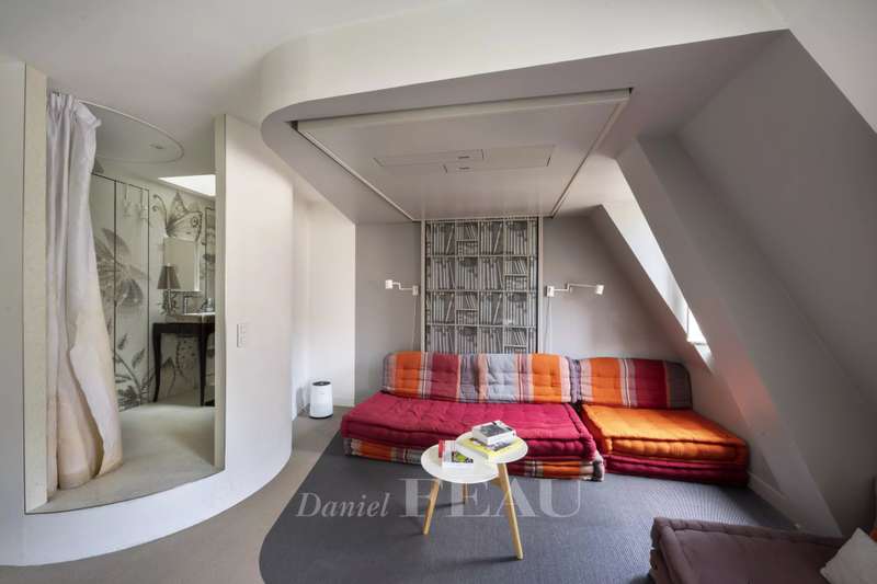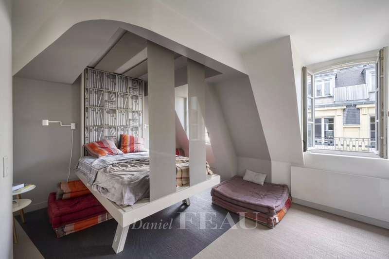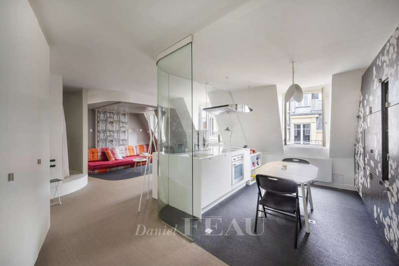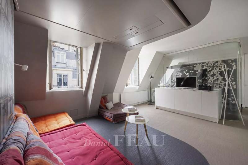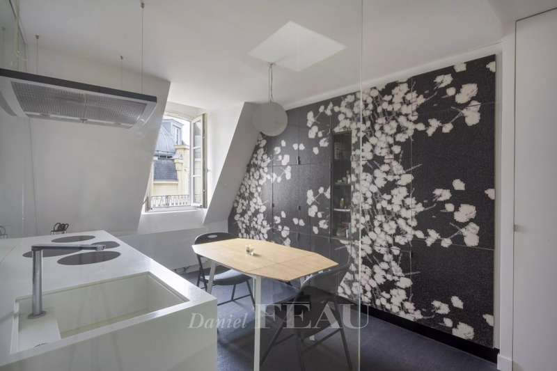 This renovated top-floor studio apartment is located in peaceful and sought-after rue des Tournelles 100 metres from historic Place des Vosges. A living room with an equipped kitchen is bathed in sunshine thanks to three large windows and two light-wells. Ample fitted storage space. It would be possible to convert about 34 sqm of attic space. Lift access.