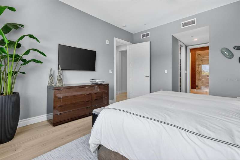 Welcome to Residence 303 at 7 One One Palm, a boutique condominium of only 16 residences located on Palm Avenue in downtown Sarasota. Built in 2019 and designed by award-winning architect Mark Sultana of DSDG, this 3-bedroom, 3-bath home offers 1,815 sq. ft. of modern living in Sarasota’s most desirable downtown neighborhood. Beyond the semi-private elevator entry, the open floor plan is filled with natural light and features 10-foot ceilings, floor-to-ceiling sliders, and large-format porcelain tile flooring throughout the main living areas. With luxury wood floors in all bedrooms, the residence combines sleek design with everyday comfort. The gourmet kitchen is equipped with Bosch appliances, including a 5-burner gas cooktop, Cucine Ricci Italian cabinetry, and a large island with Caesarstone waterfall countertops. The owner’s suite offers two walk-in closets and a spa-inspired bath with dual vanities, an oversized glass-enclosed shower, and private water closet. Two additional en-suite bedrooms provide flexibility for guests or a home office. A dedicated laundry room includes a full-size washer and dryer, cabinetry, and a utility sink. Residence 303 includes two secured garage parking spaces, bicycle storage, and an air-conditioned storage unit. Smart home technology, Hansgrohe plumbing fixtures, and impact-rated windows and doors add to the convenience and quality. Residents of 7 One One Palm enjoy resort-style amenities, including the Palm Terrace with oversized heated pool, spa, cabanas, firepit, and grills, along with a fitness center, package room, pet-friendly Paw Park, and part-time on site manager. Located just steps from Selby Gardens, Bayfront Park, Marina Jack, and downtown’s restaurants and shops—and minutes to Lido Beach and St. Armands Circle, this home offers the ideal combination of privacy, style, and convenience in the heart of Downtown Sarasota.