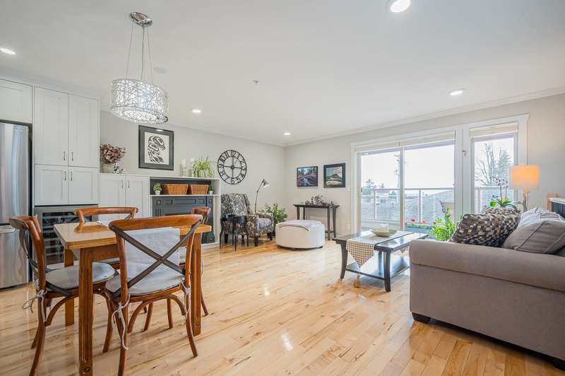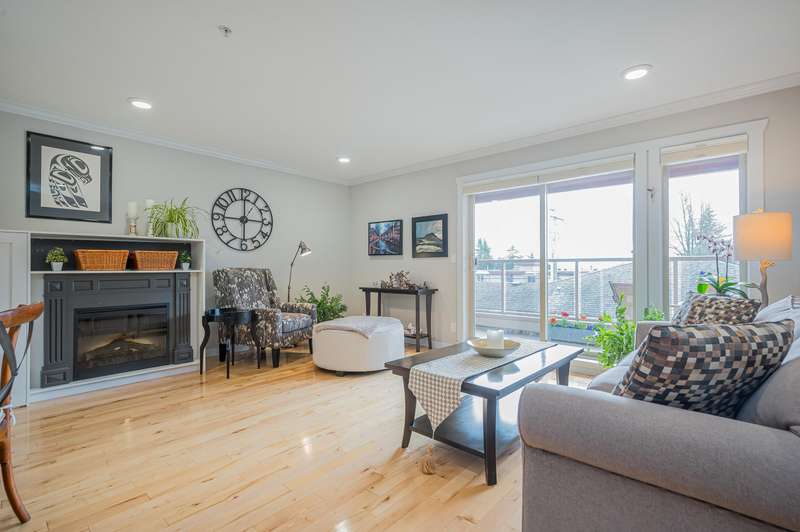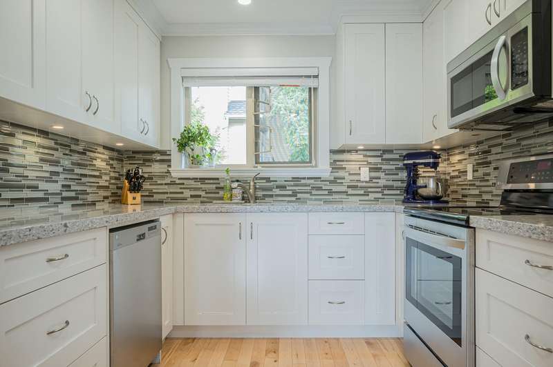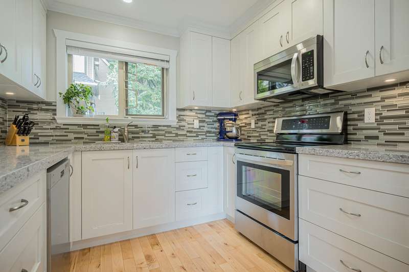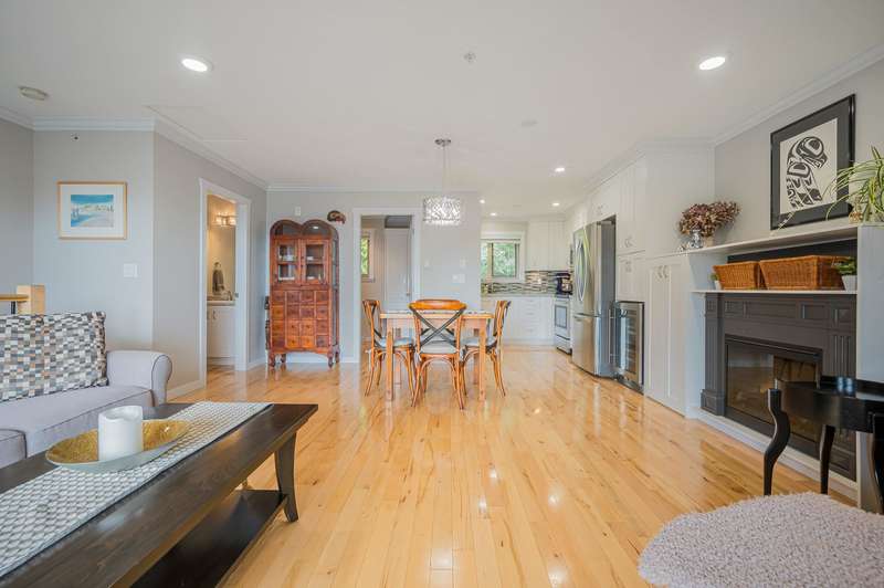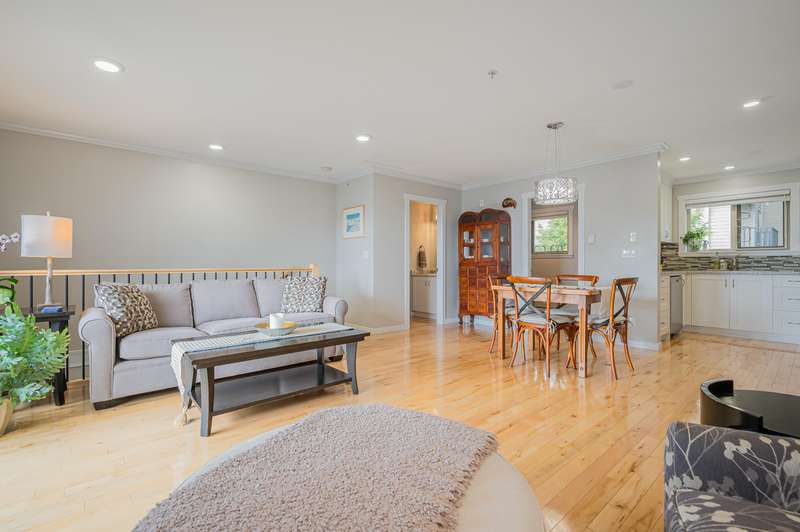 White Rock Townhouse! Rarely available 2 storey, 2 bed + den townhouse in the middle of town! Nice bright south facing open plan features updated kitchen, flooring, bathrooms, window coverings and more! Den on main floor set up with built ins for home office! Situated on the back row of the complex for privacy, peace and quiet! Thrift and Semiahmoo School catchments! Short flat walk to town centre, restaurants, and transit! Just down the road to the Beach!!! All ages welcome and one dog or cat allowed!