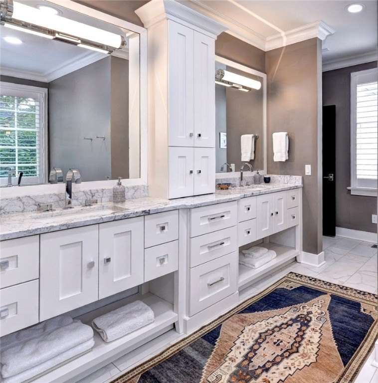 Welcome to an extraordinary home with breathtaking views! Completely renovated, this stunning ranch offers exceptional finishes and a seamless open layout. With 2 luxurious primary suites and upscale baths, you'll feel pampered every day. The high-end appliances enhance the gourmet kitchen, while the expansive 50ft Trex deck provides sweeping views of the Blue Heron 12th Fairway. As you approach, the house greets you with warmth and elegance. Inside, a freshly painted neutral palette creates a welcoming atmosphere, effortlessly connecting the gourmet kitchen, casual dining area, and great room. The thoughtfully designed floor plan is divided into 3 distinct wings-the bedroom wings and the spacious open kitchen/great room-offering both privacy and ample space for gatherings. Additional highlights include top-of-the-line Thermador appliances, a home office with custom built-ins and a wine refrigerator, a convenient walk-in coffee bar, a pottery/hobby room, and even a pet grooming tub and a built-in kennel. The home is equipped with geothermal HVAC, a natural gas generator, and boasts a walk-out basement with exterior access. Don't miss your chance to experience this magical home!