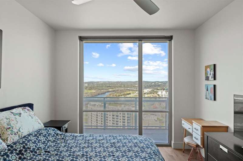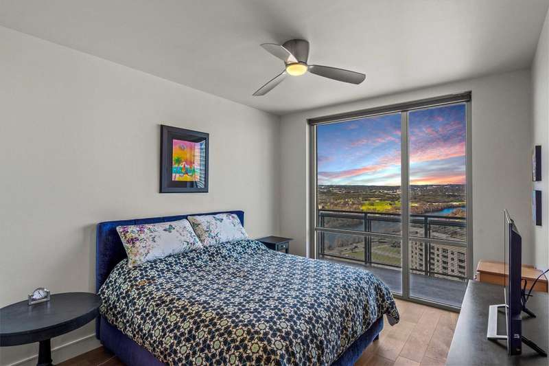 28TH FLOOR SEAHOLM CONDO WITH WEST FACING UNOBSTRUCTED VIEWS OF LADY BIRD LAKE & ZILKER PARK Experience luxury downtown living in this stunning 2-bed, 2-bath condo at Seaholm Residences, offering breathtaking west-facing views of Lady Bird Lake and vibrant sunsets. Floor-to-ceiling windows, hardwood floors, and a full-length balcony create an elegant, open feel. The modern kitchen features quartz countertops, a 36” Subzero refrigerator, Wolf gas range, Wolf microwave drawer, and Bosch dishwasher. Electric blinds throughout, with blackout blinds in the bedrooms, add convenience and privacy. The primary suite boasts sound-reducing windows and a spa-inspired bath with a soaking tub and separate shower. A Murphy bed in the second bedroom maximizes space, while a full-size Whirlpool washer/dryer and Nest climate control add modern comfort. Seaholm’s 10th-floor sky deck offers a resort-style heated pool, fitness center, grilling stations, a clubroom, business center, and a dog park with a pet wash station. Trader Joe’s, the Central Library, Lady Bird Lake trails, and Shoal Creek Greenbelt are just steps away, with Whole Foods, ACL Live, and 2nd Street District nearby. With Google Fiber availability and a prime downtown location, this condo is an incredible opportunity for luxury city living.