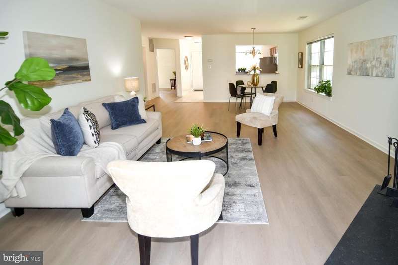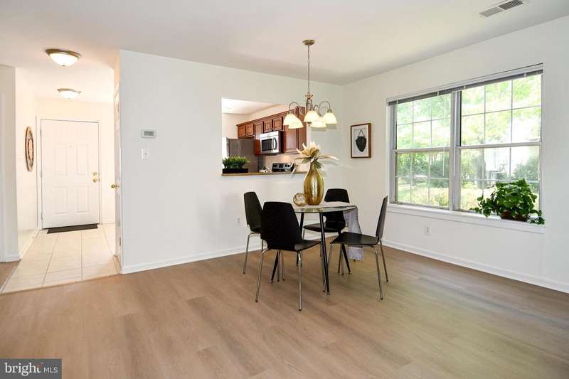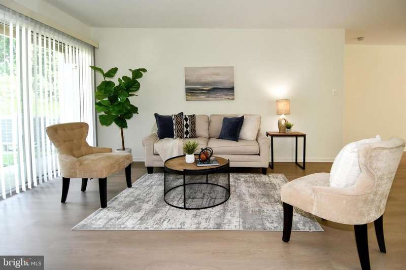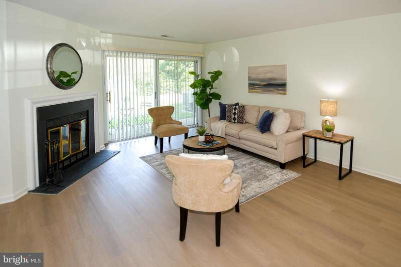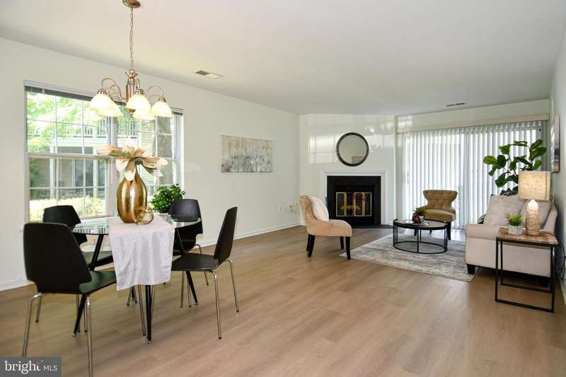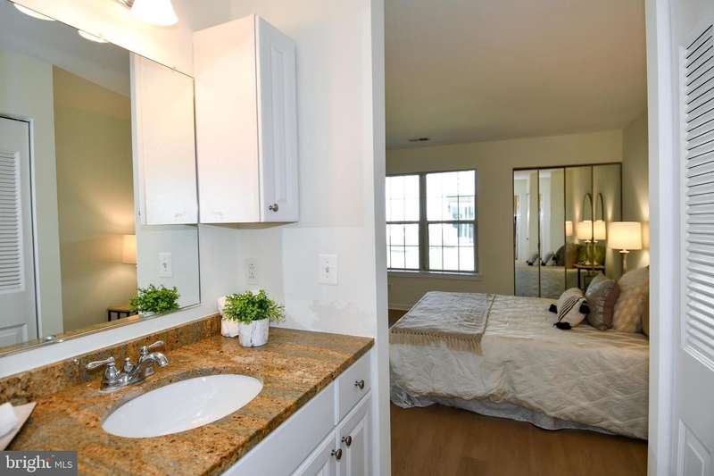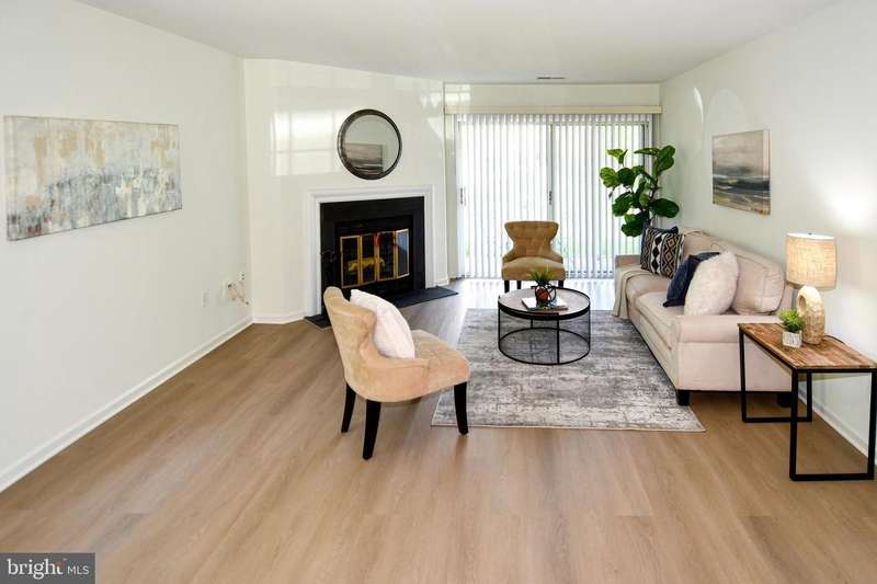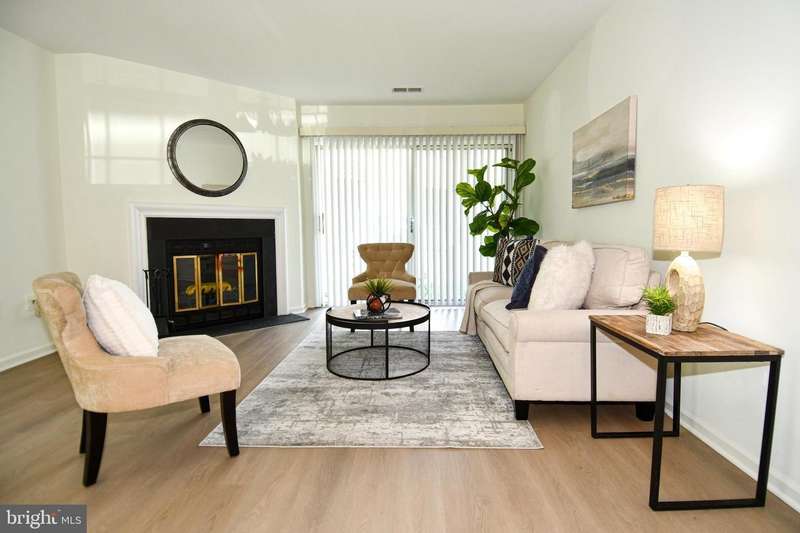 Freshly updated and ready to move right in! This light and bright corner unit in sought-after Carr At New Providence community was just painted (ceiling, walls AND closets) and the flooring updated with neutral Luxury Vinyl Plank. Terrific convenient location, near the Beltway Express access, Rt 29/Lee Highway, Mosaic District Shopping, Dunn Loring Metro and Falls Church City. Open floorplan between kitchen and living/dining. Freshly painted wood-burning fireplace. Large patio space off the living room. The primary bedroom has a dressing area with second closet and personal vanity, with a privacy door leading to the adjoining toilet and tub. Second bedroom and guests access the bath from the hall. Convenient stacked Washer/Dryer in unit. Other recent updates include Toto toilet - 2022; HVAC with programmable thermostat - 2023; W/D - ; LVP flooring - 2025; paint - 2025; front door lock - 2025.