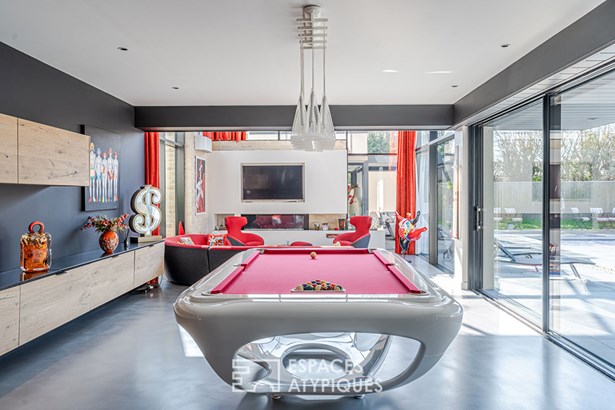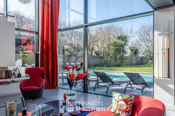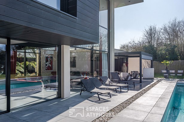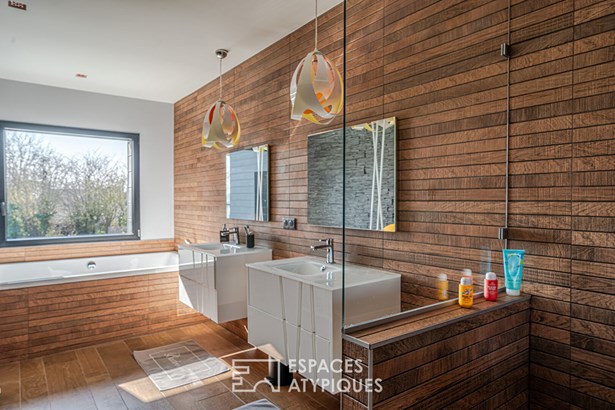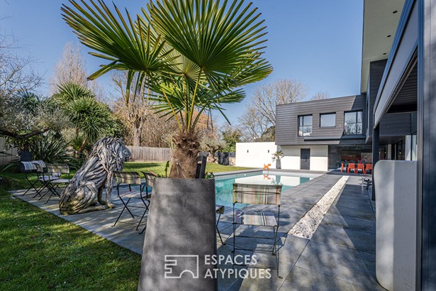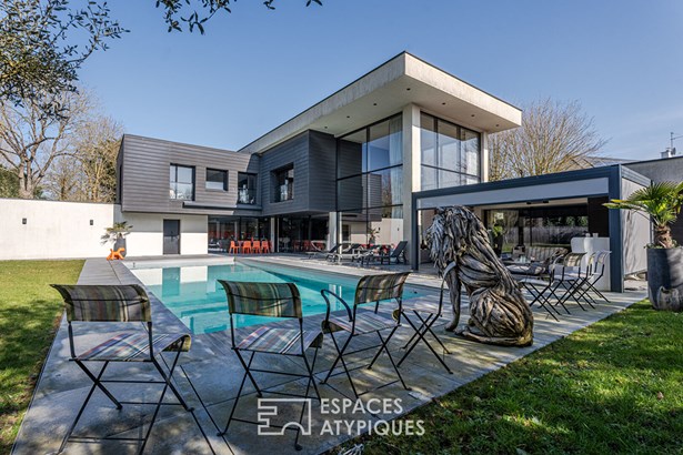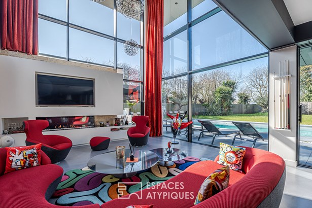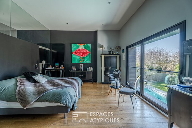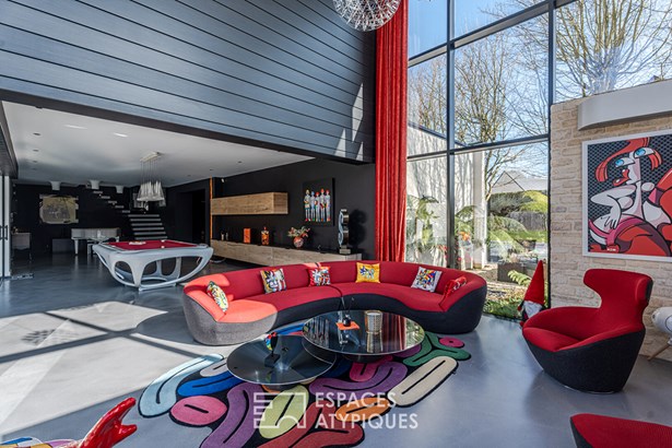 It is less than 10 minutes from Caen, on a wooded and landscaped plot of 1444 sqm that this superb Californian villa of 310 sqm built in 2016 is located. A beautiful entrance with storage, opens onto a sumptuous and bright living room of more than 100 sqm, with a designer fireplace, a beautiful high ceiling and large matte black bay windows. In its extension opens a fully equipped and functional kitchen with a central island and an exceptional view of the south-facing swimming pool. Also on the ground floor, a dining room, a superb closed wine cellar as well as a 27 sqm cinema room, A beautiful polished concrete staircase leads us to three beautiful bedrooms, one of which has its dressing room, its bathroom and a view of the swimming pool. A beautiful bathroom, an office space with beautiful storage cupboards complete this level. In the extension, a studio with its shower room and toilet. This exceptional place also offers two garages that can accommodate three vehicles and a laundry room. Its exceptional volumes, daily brightness, a beautiful ceiling height, its 5 X 13 swimming pool and its quiet grounds make this property a unique and magical place with its added Japanese space. Photos and complete file on certified request. ENERGY CLASS: B / CLIMATE CLASS: C Estimated average amount of annual energy expenditure for standard use, established from energy prices on January 1, 2024: EUR1,431. Information on the risks to which this property is exposed is available on the Georisques website: www.georisques.gouv.fr Cherryl Tirapu 06.08.30.44.38, commercial agent EI - RSAC 524 684 859 Caen