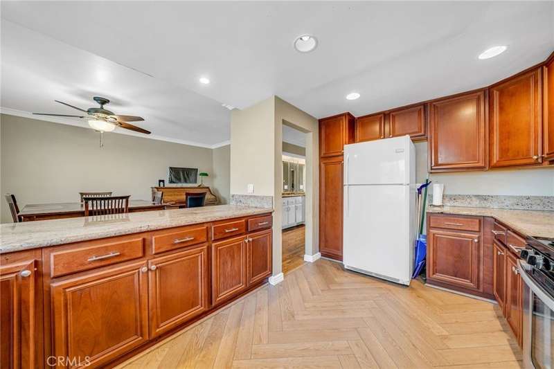 Spacious 1,727 sq. ft. remodeled townhome with serene treed setting located in “The Estates” complex of Rolling Hills Estates. Great floorplan - living room has mirrored entry closet, fireplace (currently non-burning) & wet bar with smooth ceilings & crown molding. Nice size dining area & breakfast bar with granite countertops opening to kitchen. Ample maple/beechwood cabinetry, stainless-steel appliances, recessed lighting & brand new waterproof vinyl plank flooring. Two primary bedrooms with ensuite baths & walk-in closets. Larger primary suite has pastoral city view, vaulted ceiling & private bath with double sinks, separate tiled shower & bathtub. 2nd primary suite has built-in bookshelf & bath with tiled tub/shower. Hardwood flooring in all main living area, paneled doors, satin nickel plumbing fixtures, updated light fixtures, forced air heating & air conditioning. Don't miss the wine cellar (great storage area) off the staircase to the garage. Attached 2 car garage with laundry area & utility sink. Guest parking in common areas plus an array of HOA amenities including tennis courts, 3 swimming pools (closest pool is just opposite the garage), spa, BBQs & large clubhouse with huge flat screen TV, kitchen, gym, sauna, billiards & game tables. This unit does not face Crenshaw Blvd., but is super convenient to shopping, restaurants & parks. Contact your real estate agent or Julie Schulte at Estate Properties at 310-849-0342 for a private showing.