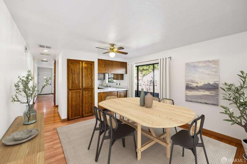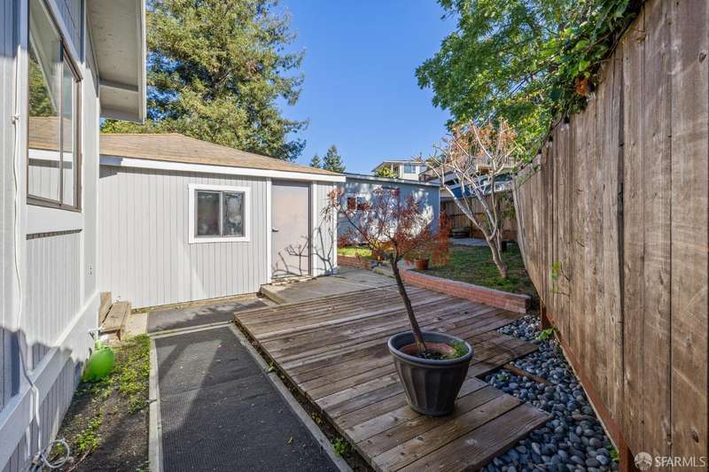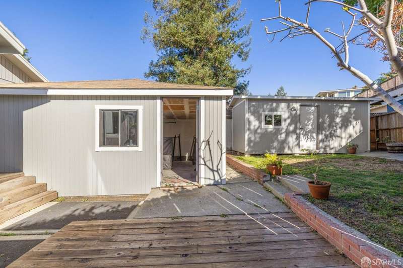 Desirable Hillcrest Knolls location in the San Leandro hills with nearby neighborhood park and easy freeway access. Built in 1987, this home has 3 bedrooms, 2 bathrooms, and a large enclosed side porch. Fenced rear yard with detached shed has electric so would be perfect for shop/art/crafts, or even office. Attached two car garage has laundry and driveway could accommodate Boat/RV or 3 additional vehicles. Additional street parking available in front of the home along the fence. Some of the photos are digitally enhanced with virtual staging.