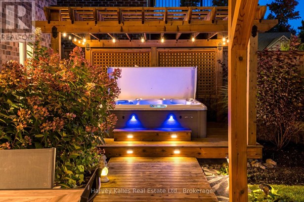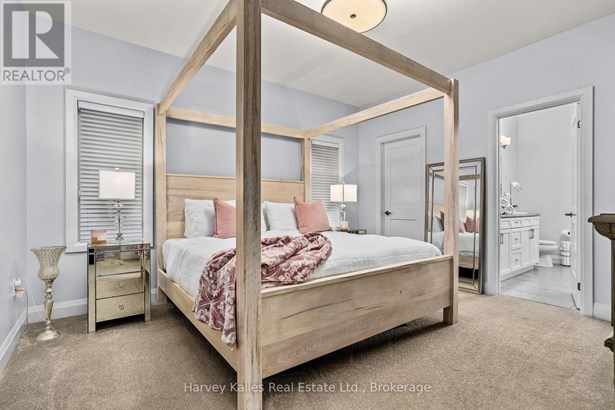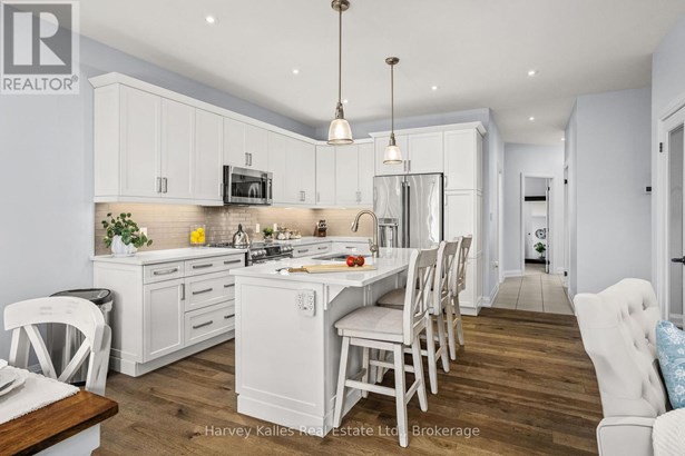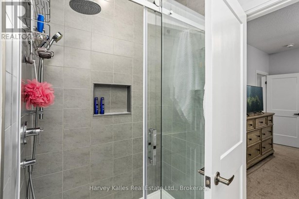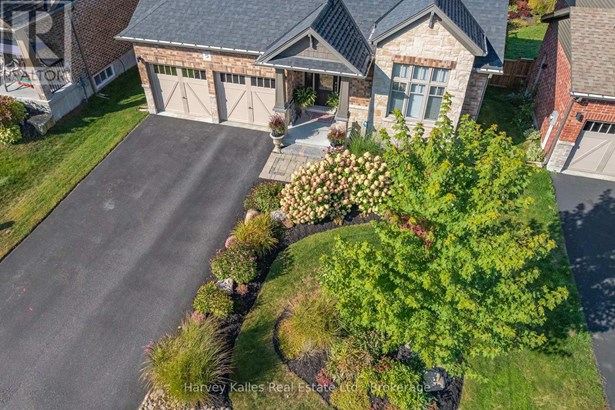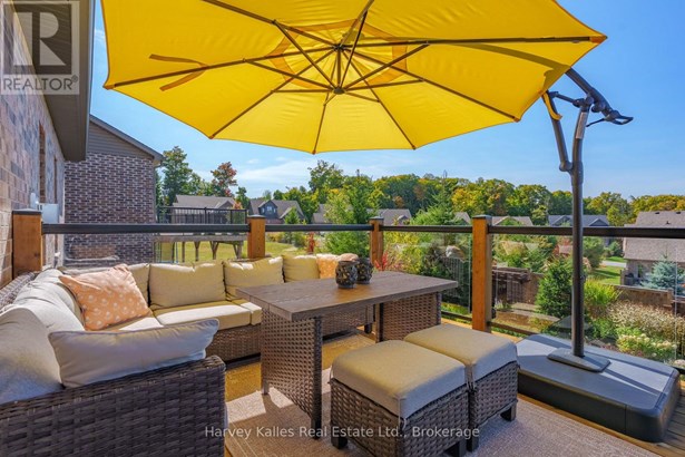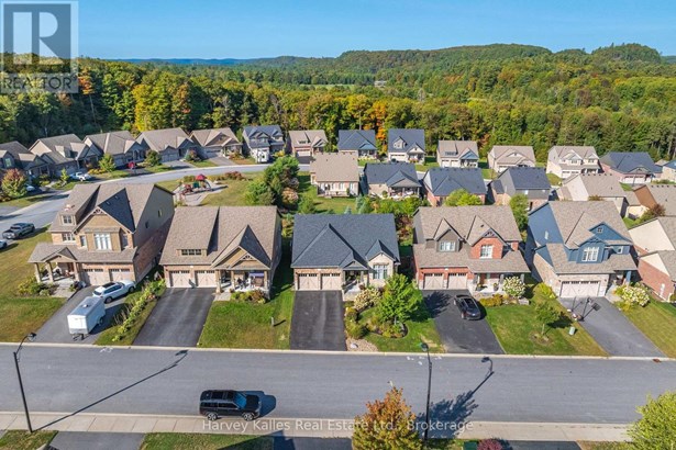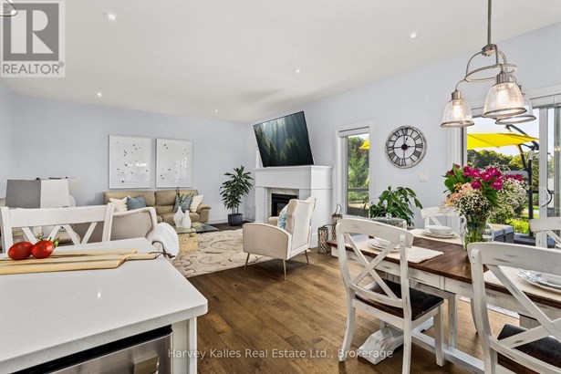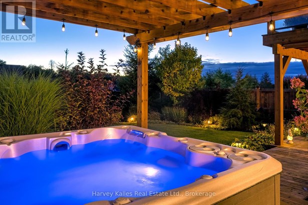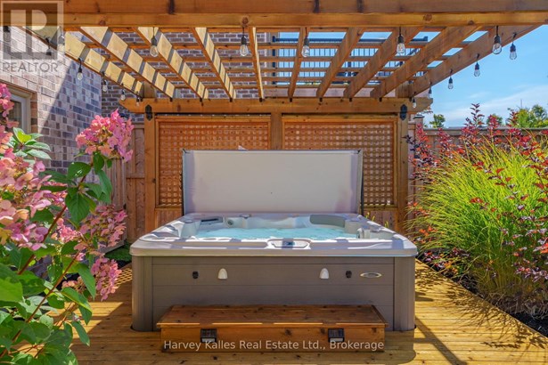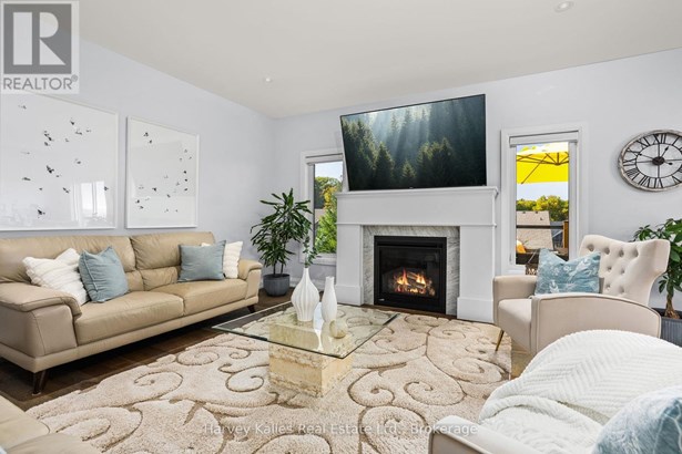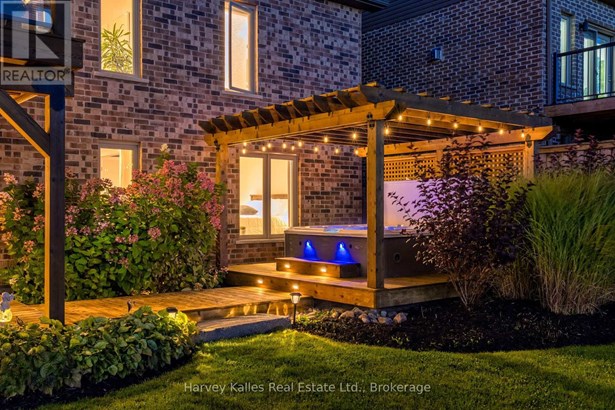 Situated in the highly sought-after Settlers Ridge community, this stunning 2700+sqft bungalow is the perfect blend of style, comfort, and sophistication. With its family-friendly location close to a park, elementary school, hospital, and just minutes from highways and downtown Huntsville, convenience is at your doorstep. Step inside to discover an open-concept layout designed for both everyday living and effortless entertaining. The heart of the home is the show-stopping kitchen, featuring quartz countertops, a sprawling island, abundant storage, and top-of-the-line GE Café appliances that bring both beauty and performance. The living room exudes warmth with its gas fireplace, while the dining area ideal for hosting family and friends flows seamlessly to a custom deck with sleek glass railings, creating the ultimate indoor-outdoor connection.Freshly painted and finished with engineered hardwood flooring throughout the main level, this home radiates modern elegance. The primary suite is a true retreat with a walk-in closet and 4-piece ensuite, complemented by upgraded vanities and designer lighting. Motorized blinds add a touch of luxury and convenience to the bright and airy spaces.The lower level is equally impressive, boasting a spacious recreation room, bright bedroom, a versatile den or additional bedroom, and a stylish 3-piece bath. From here, walk out to a fabulous outdoor seating area that overlooks your backyard sanctuary. Fully fenced for privacy and beautifully landscaped with mature perennial gardens, a pergola, and a hot tub, this outdoor haven feels like your own private resort. Every detail of this home has been meticulously maintained and thoughtfully upgraded, offering a lifestyle that is as functional as it is luxurious. Move in and experience a sanctuary where every day feels like a getaway. (id:16999)