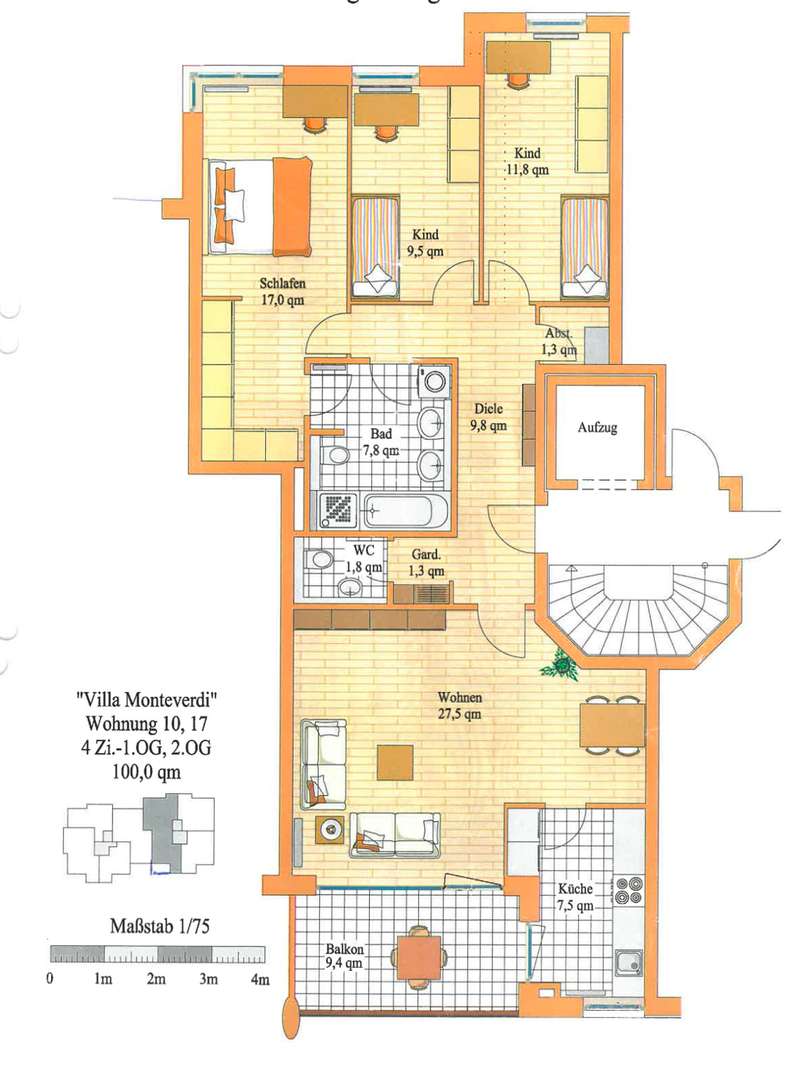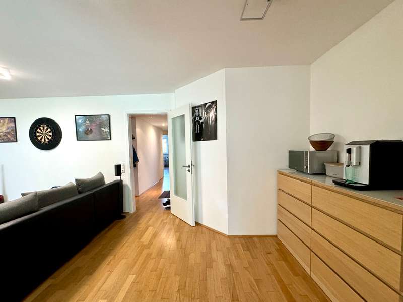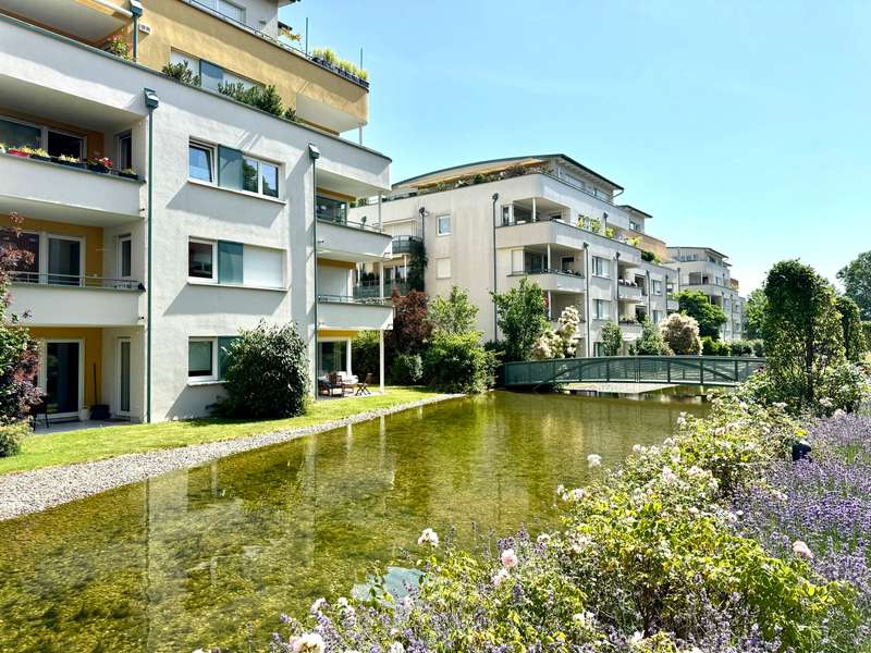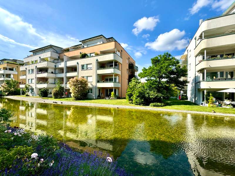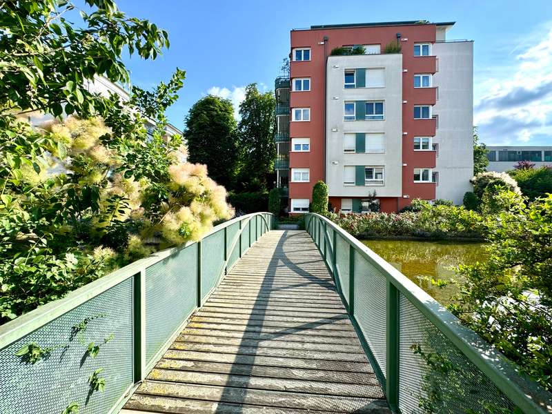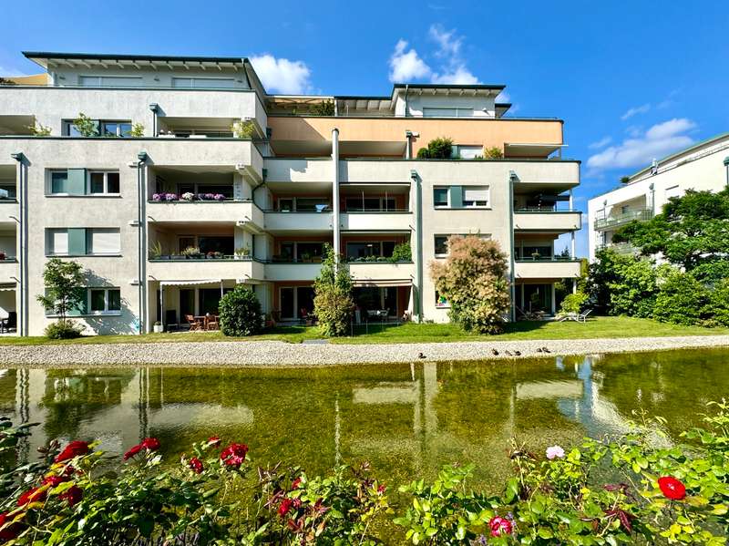 Welcome to your new home in the exclusive "Il Giardino" residential complex on Galgenberg in Regensburg. This charming 4-room apartment with approx. 100 m² of living space is located on the 1st floor of the "Villa Montiverdi" residential building and is easily accessible via an elevator. This feature makes the apartment particularly attractive for age-appropriate living. As soon as you enter the apartment, you can feel the well thought-out spatial concept. The spacious entrance area offers plenty of space to the side for a large built-in cupboard, which creates additional storage space for a wardrobe. The high-quality furnishings run throughout the entire apartment, starting with the elegant parquet flooring laid in all rooms. The spacious living and dining area impresses with its brightness and generous design options. Here you will find enough space for a large living area and a dining area that offers enough room for the whole family. A special highlight is the large panoramic window, which not only lets in plenty of natural light, but also offers a fantastic view. The modern kitchen is directly connected to the living area and is open-plan. It is already equipped with a high-quality fitted kitchen that includes all technical appliances. However, the absolute highlight of the apartment is the large south-facing balcony. This is accessible from both the kitchen and the living room and offers plenty of space for plants and comfortable seating. Here you can soak up the sun and spend balmy summer evenings while enjoying the breathtaking view of the lovingly maintained residential complex with its unique lakes, mature trees and artistically designed waterways. It feels like a vacation - day after day. The spacious bedroom not only offers peace and comfort, but also the option of integrating a walk-in closet with large built-in cupboards. The numerous windows here also offer a beautiful view of the old town. The two other rooms can be used in a variety of ways - as a children's room, study or guest room. The bathroom boasts a timeless design and large white tiles. In addition to a large bathtub, it also has a masonry shower cubicle with mosaic tiles and two washbasins, which is particularly practical for everyday family life. An additional guest WC with the same high-quality fittings completes the room. The "Il Giardino" residential complex is characterized by its efficient and sustainable energy concept. Thanks to the modern combined heat and power plant, which can be operated with gas or oil as an alternative, you benefit from low energy costs. A decentralized room air control system also ensures a pleasant indoor climate in all seasons. The apartment has its own large storage room in the basement, which offers additional storage space. Two parking spaces for your vehicles (2x30,000 euros) round off the offer and make living here particularly convenient. This beautiful 4-room apartment in the "Il Giardino" residential complex offers a perfect combination of modern living comfort, high-quality furnishings and an excellent location. Ideal for families and people who appreciate something special, this apartment invites you to find a home that feels like a vacation every day. For further information and a viewing appointment, please do not hesitate to contact us. Don't miss out on this unique opportunity!