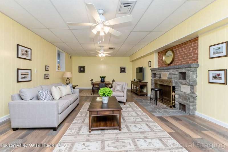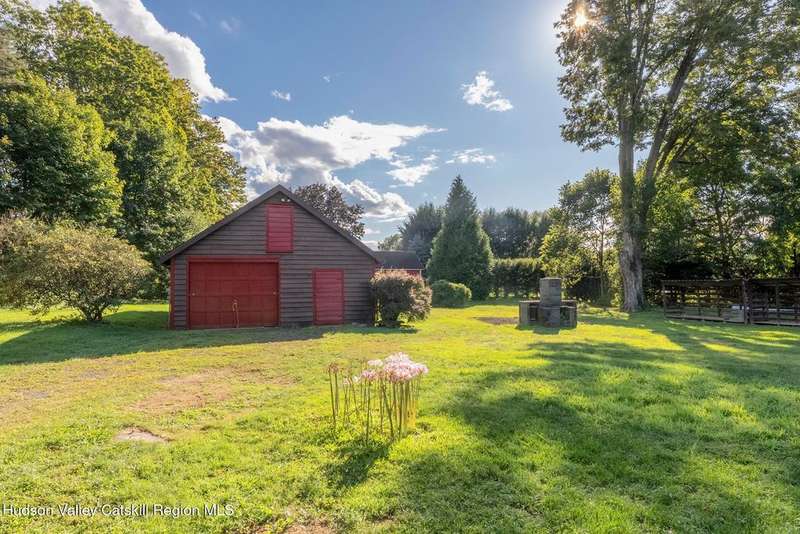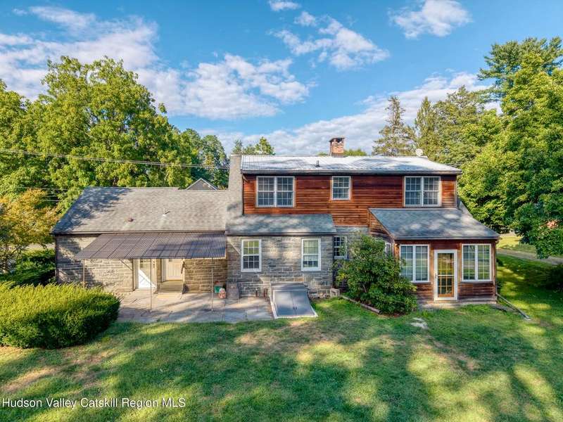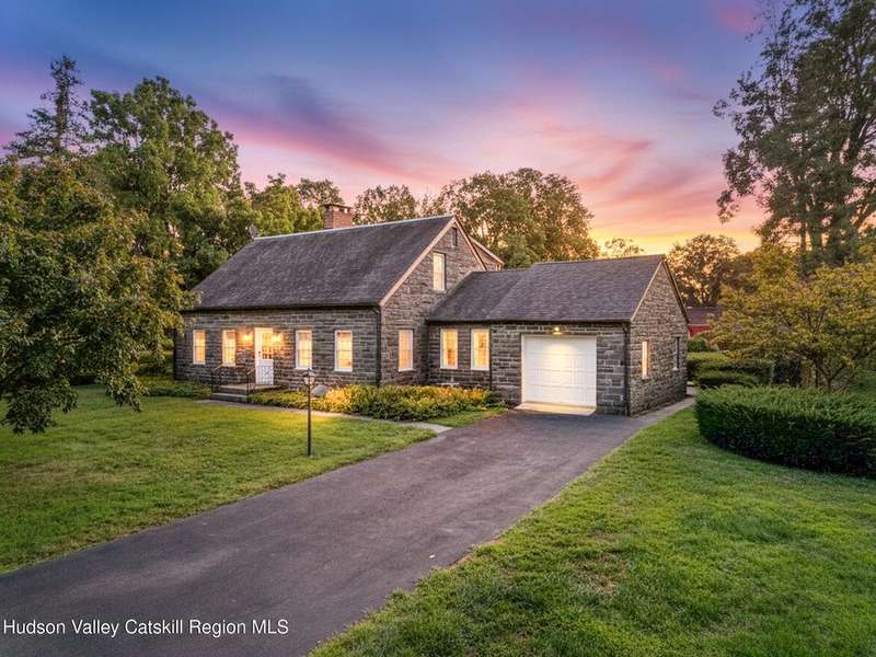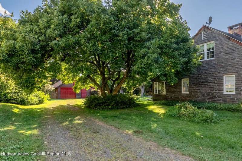 Welcome to 12 Zandhoek Road in Historic Hurley, a truly one-of-a-kind custom-built bluestone home showcasing craftsmanship and character at every turn. Constructed with quarried stone from the Ashokan and featuring striking 18-inch-thick walls, this residence offers both beauty and enduring strength. Inside, you'll find milled knotty oak hardwood floors, a living room with a woodstove set in a charming fireplace surrounded by custom built-ins, and a sun-drenched three-season room with bluestone flooring and knotty Cedar walls overlooking the backyard.Designed for flexibility, the first floor includes a bedroom and full bath for convenient one-level living, along with a formal dining room accented by a built-in corner cabinet and a spacious eat-in kitchen with abundant cabinetry, perfect for any home chef. Upstairs are two generously sized bedrooms and a second full bathroom. The recently remodeled finished lower level, complete with a fireplace, offers even more living space.Set on a level ?-acre parcel graced with mature maple, magnolia, cherry, and Japanese maple trees, the property also includes a barn with two stalls, cement flooring, and its own separate electric panel. Additional features include a garage currently used as a laundry room that can be easily converted back.All of this is just minutes from the rail trail and only five minutes to Uptown Kingston. A rare gem in the Hudson Valley, this gorgeous home is not to be missed!