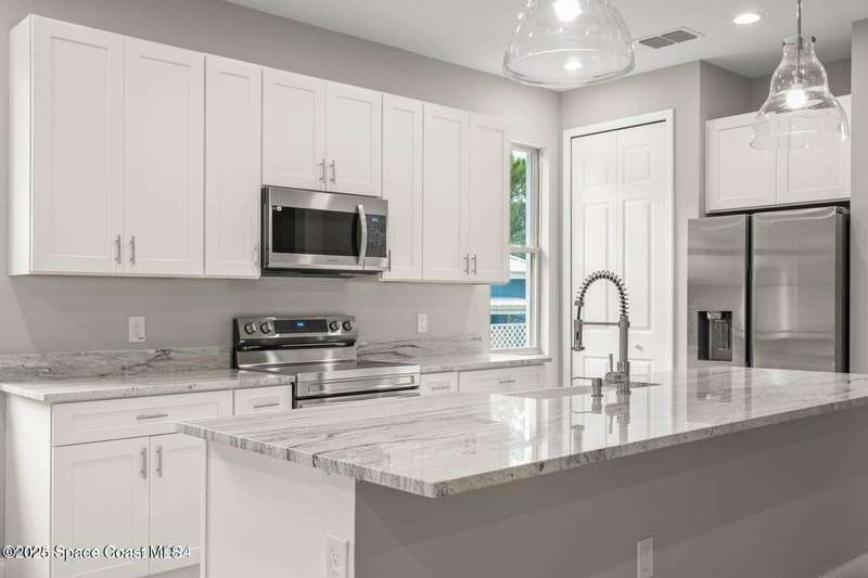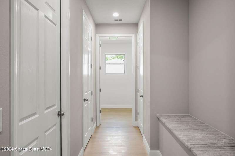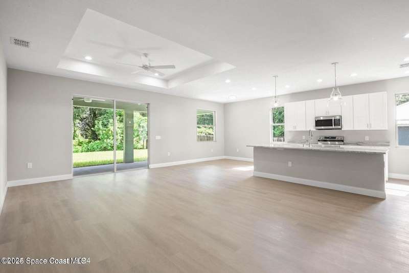 MOVE IN READY - NO CLOSING COST LOANS AVAILABLE. Exquisitely Built New Construction with a Pool-Ready Lot. Photos are of a like model and one or more photo(s) has been virtually staged. Nestled in the heart of Palm Bay, this luxurious 4-bedroom, 2.5-bath property is exquisitely built with all of the upgrades. The rare and spacious lot provides the perfect canvas to add the pool of your dreams and create a private backyard retreat. Inside, you will find a wonderfully open floor plan perfect for gatherings and entertaining. The capacious Chef's Kitchen is stylishly equipped with wood cabinets, stainless steel appliances, and ample storage. The contemporary living space is bursting with natural light and a flowing layout that is inviting and relaxing. This beautiful house is full of INCLUDED upgrades: solid wood soft-close cabinets in the kitchen and in the bathrooms, luxury vinyl plank, tiled showers, quartz countertops, 9'4'' ceilings, and 8-foot doors.