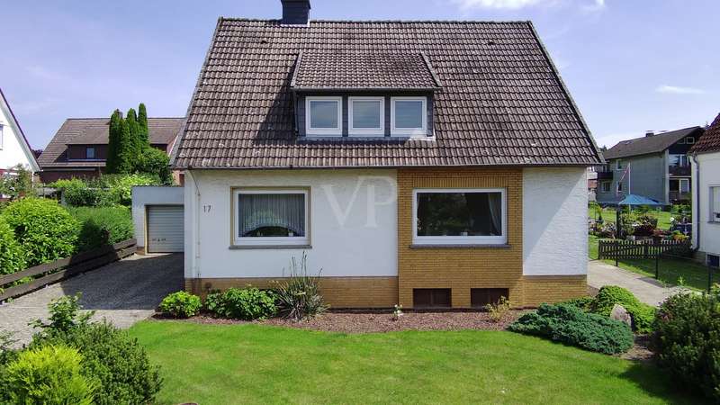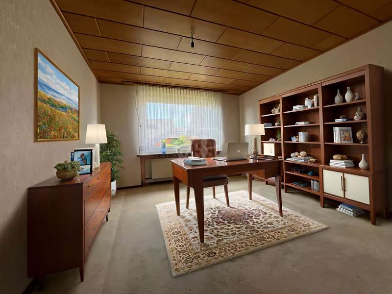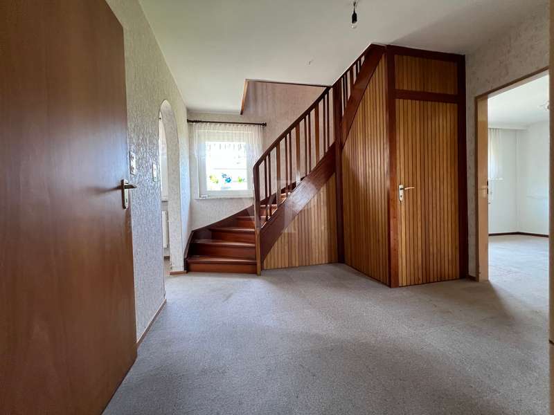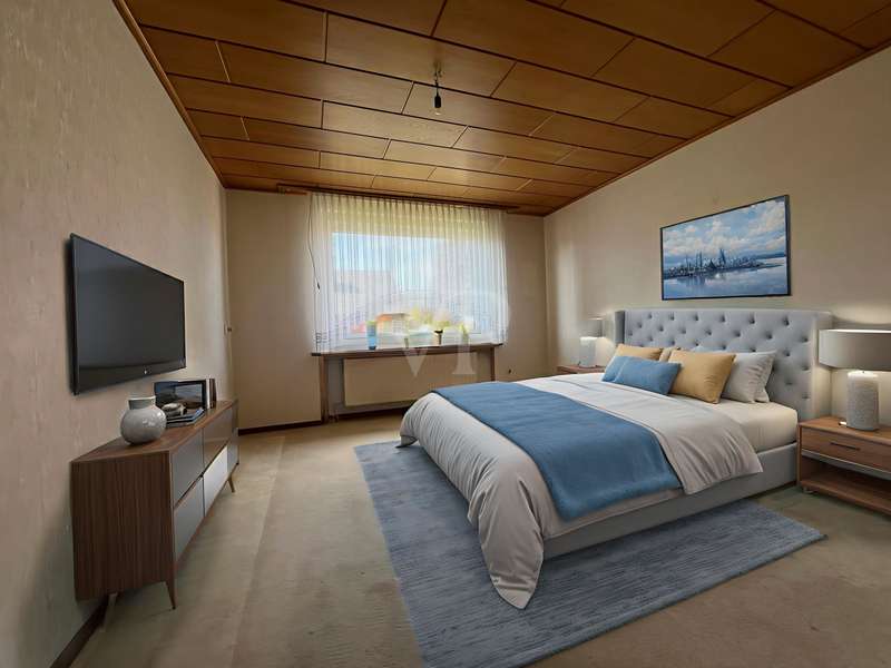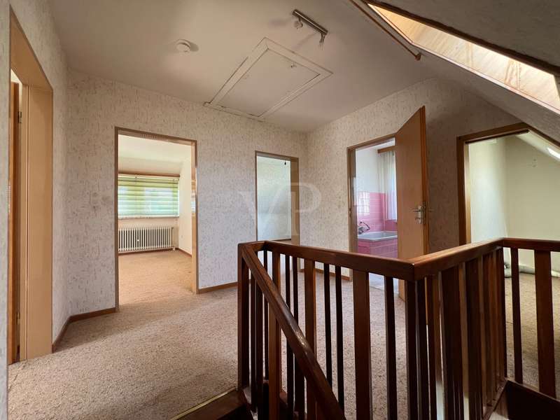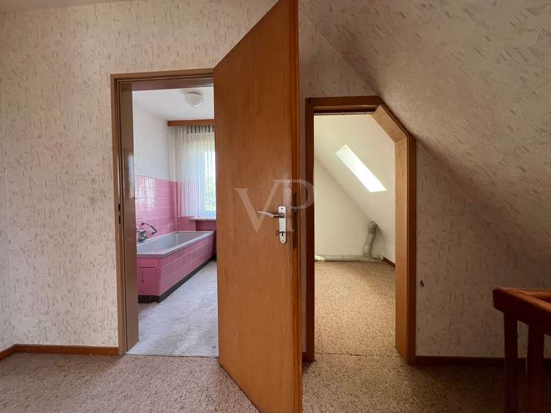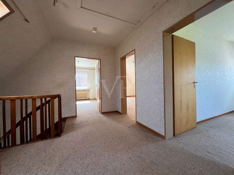 This property offers you a well-structured living space of approx. 129.96 m² on a generous plot of approx. 878 m². The detached house, built in 1966, is located in an established residential area and impresses with its well thought-out room layout with a total of 5 rooms. The house is in need of renovation, which offers potential for an individual redesign. The last modernization was carried out in 2015, when a new heating system was installed. The property has a full basement, providing additional storage space and versatility of use. This house comprises several bedrooms that can be used flexibly, whether as a bedroom, office or hobby room. There are four bedrooms in total, which is particularly advantageous for families. On the first floor there is a guest WC, a children's or guest room, a living room and a kitchen, which also has space for a dining area and offers garden access to the terrace. Upstairs there are 3 bedrooms, a bathroom and a small storage room. The spacious plot is open for a variety of outdoor activities, whether for gardening, as a play area for children or for convivial summer evenings with friends and family. This house offers space for creative design ideas. This property is aimed at buyers who are prepared to invest time and effort in renovating it to create a home to suit their own wishes and needs. The prevailing room layout and the number of rooms offer numerous development options. We would like to point out that the owner does not wish to receive personal inquiries. We therefore ask for your understanding and please respect the owner's privacy. We also ask for your understanding that we require a property-related financing confirmation from your bank before a possible viewing. This serves to ensure an efficient and targeted viewing process. Thank you for your understanding!