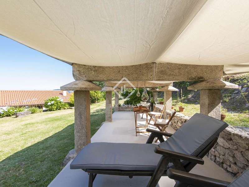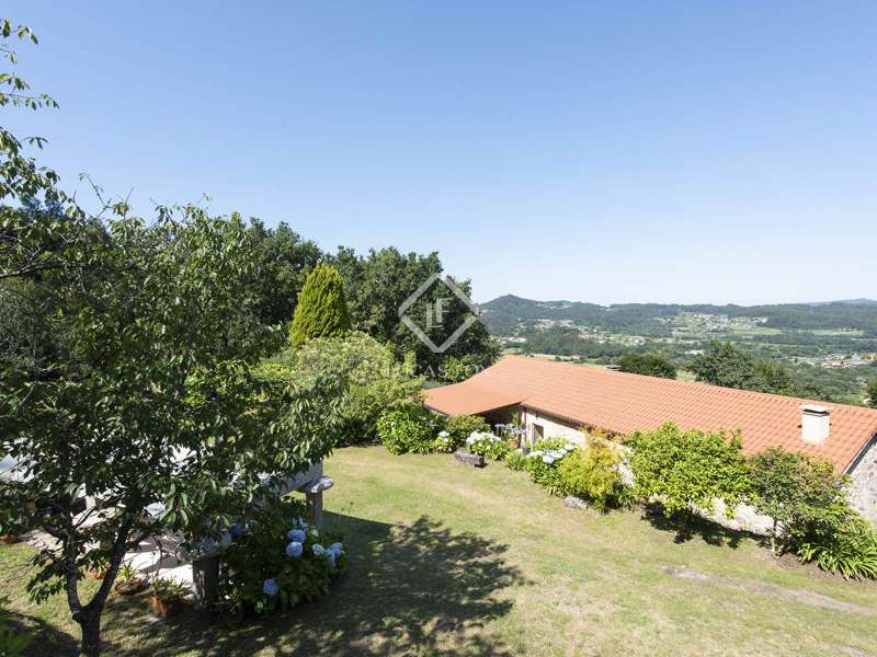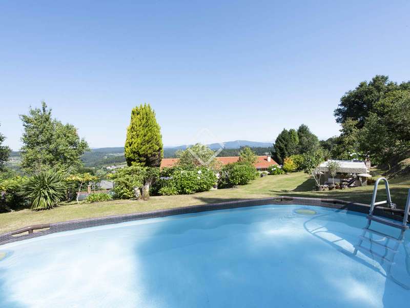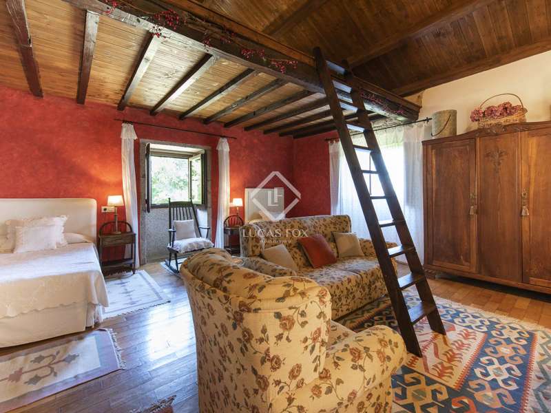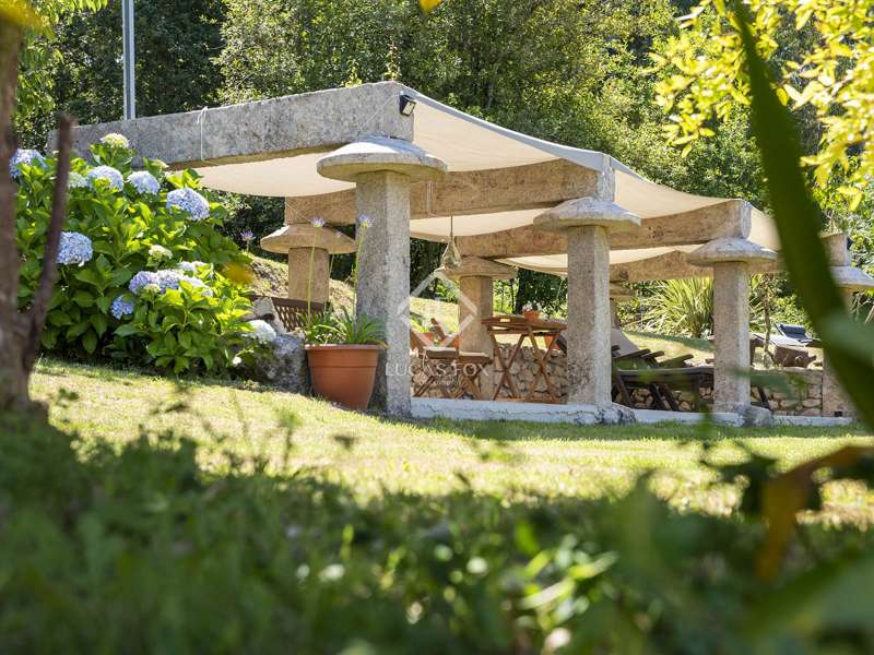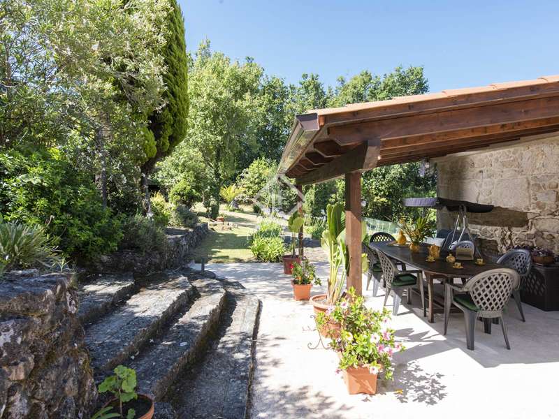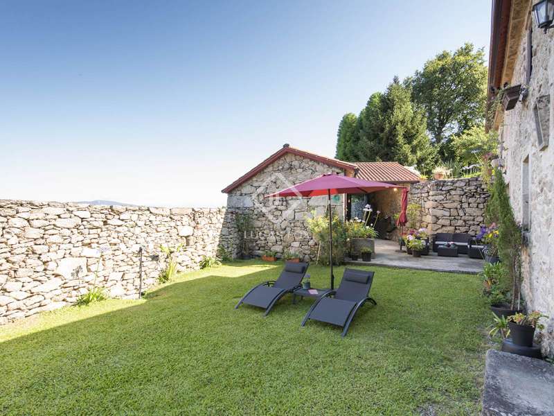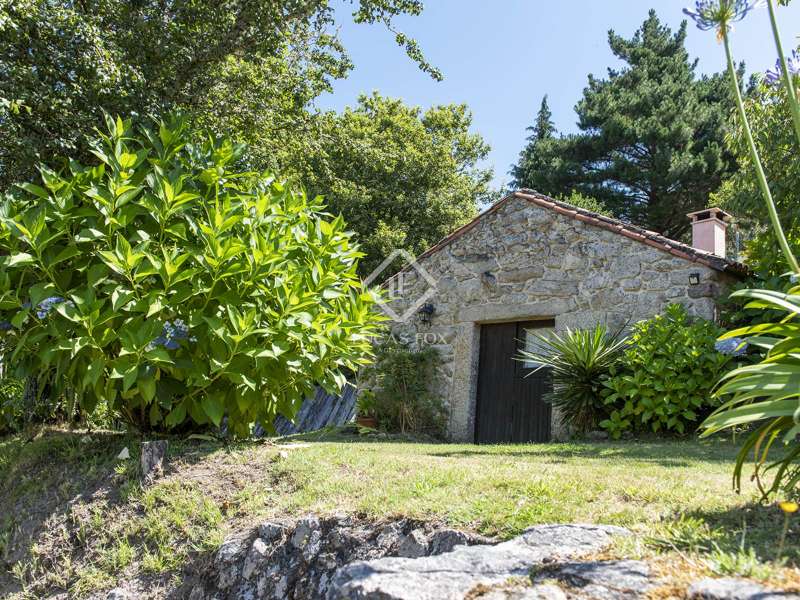 A fantastic property located a few minutes inland from the coastal area of the Rias Baixas. We find the beautifully renovated property offering good attention to detail, decoration and location. The property is located inland in the province of Barro, Pontevedra, a short drive to the city of Pontevedra and Sanxenxo. The property offers a good size plot, measuring a total of 6.010 sqm. The whole perimeter of the property is finished with a stone wall, giving it privacy and security. Once inside the property, we find many historical features and elements that date back to the property's original construction. Inside the property, we find an excellent, large plot on a small hill. The property has a south-easterly and westerly aspect and so benefits from abundant natural light throughout the day. The main facade of the building faces west and benefits with views of the village square, the valley and the mountain views. Once we arrive at the property, we are welcomed by the grand entrance driveway that gives access to the property. Once inside, we have the parking area on the right for 1 car, which is currently used as an outdoor dining area. There is a large storage room. Once we arrive at the inner patio, we find a lovely, well-kept garden which gives access to the villa's main entrance. As we enter the villa on the left side wing, we find the living and dining room, a nice size space. On the same level, on the right side, we see a good size bathroom and a large sleeping area for 3 beds or 1 large bedroom. This area is finished with good quality tile flooring imitating wood and the exposed original wood beams. All updated and maintained in good quality. On the first floor, we find the eat-in country-style kitchen with vaulted wood-finished ceilings and a charming design. On the same level, we see 2 large bedrooms with their sitting area. The bedrooms are situated on a mezzanine floor. We find exposed stone vaulted wood finished ceilings. The bedrooms accommodate 2/3 good size beds. The exterior section of the property offers the most lovely elements this property has to offer. Outside, we find the outdoor covered porch area, of a good size to enjoy with family and friends in the evenings and the early morning. Surrounding the property on the back side, we find a large forest piece, and on the front side, we find one neighbour—the property benefits from exclusivity and privacy. Outside we will also find the Ruin granary (Hórreo), currently used as a chill-out area near the above-ground pool. Outside, there is also an annexe building which is currently used for storage space but can be easily converted into a small guest house area if the room is needed or a summer barbecue area. The property offers an unlimited water supply from a natural spring located a few metres away from the property, used and shared amongst all the property owners in the village. The property is sold with furniture, appliances, an active rental licence and decoration. Certain elements are personal to the property owners and will not be included in the sale. This property will be suitable for a family to enjoy a relaxed lifestyle inland and close to the Rias Baixas and the city of Pontevedra. Also, entrepreneurs or investors interested in purchasing the property and managing the guest house.
