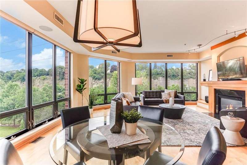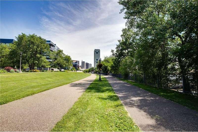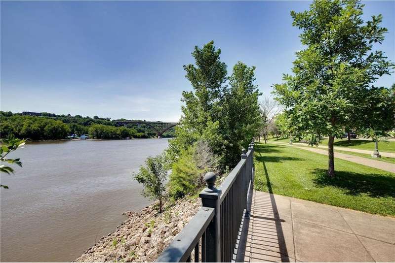 You'll love calling this exquisite, one-level-living, luxury condo along the Mississippi River HOME! Elegant and spacious this turn-key home features an open concept design with beautiful floor to ceiling windows that fill the home with natural light plus high-end touches like cherry cabinets, granite countertops, HDWD floors, SSL appliances and a spacious laundry room with new W&D! The luxurious Primary Suite has a new, $60k bath remodel with separate soaking tub and shower, dual sinks and a high-end closet system making a peaceful owner's retreat. With the ease of One-Level Living upstairs you'll love the bonus lower level featuring a 3rd bedroom for guests, full bath, huge family room & a flex room with built-in wine rack! Additional perks include two underground parking spaces, large storage unit, a fully equipped workout room shared by the HOA and an active social committee that hosts events perfect for those looking to connect with neighbors! The River Front condos at Upper Landing provide the best of city living with easy access to upscale dining, world class sports and concerts along with the serenity or river life! Don't miss out on this incredible move-in-ready home!