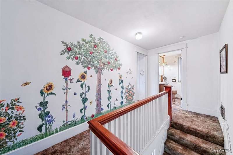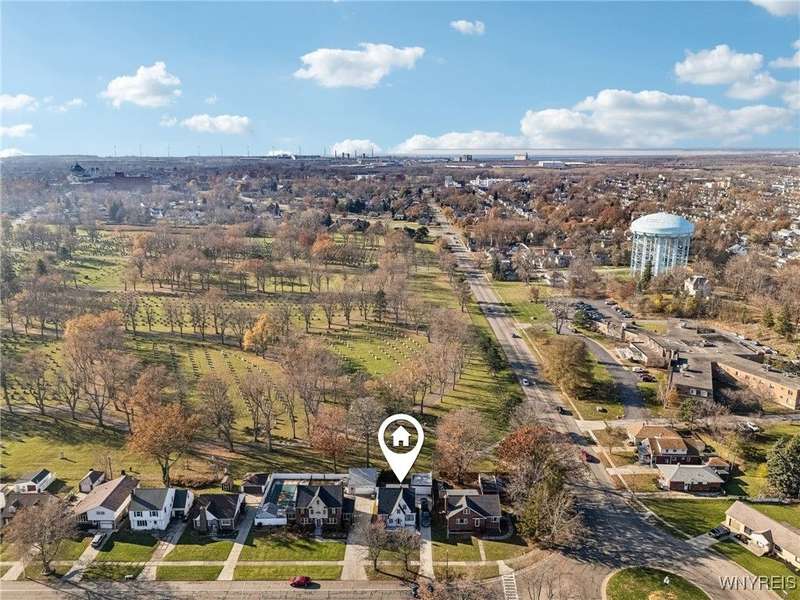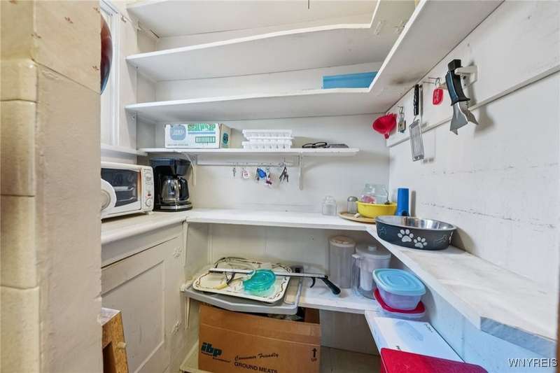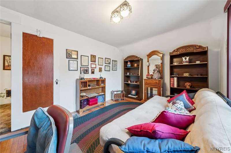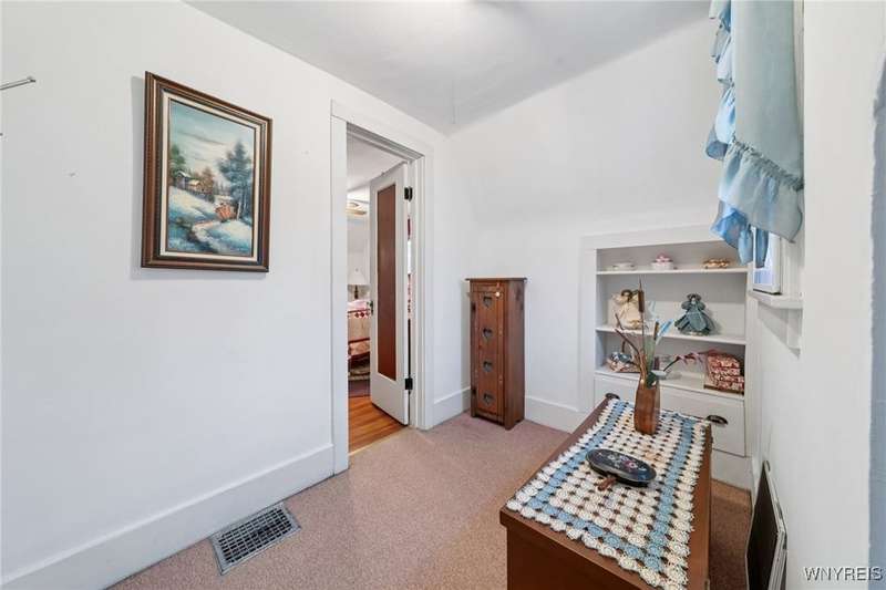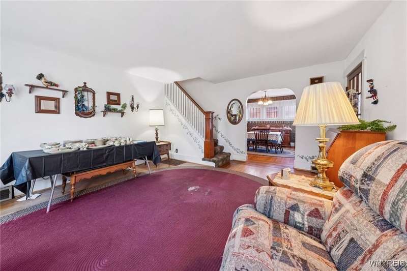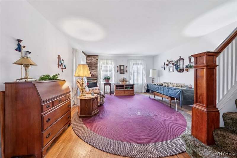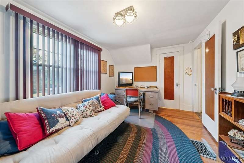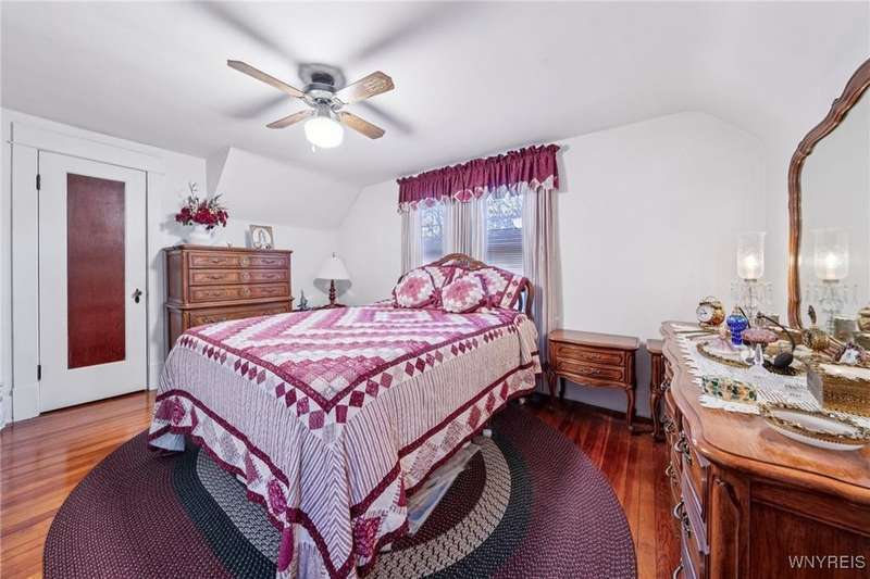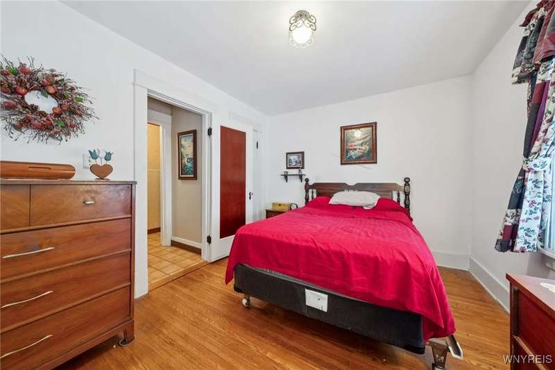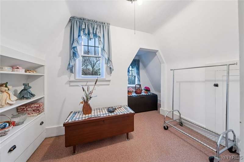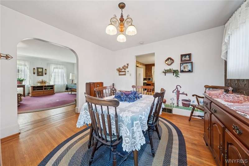Welcome to 17 South Shore Boulevard, a classic Tudor-style home filled with timeless charm and exceptional curb appeal on a sought after street. Step through the beautiful arched front door and into a home filled with character, beginning with the hardwood floors with intricate inlay and the architectural details that define this beloved style. The spacious, inviting living room flows seamlessly into the formal dining room, offering plenty of room for gatherings. The kitchen is bright and functional, featuring large windows that flood the space with natural light and a walk-in pantry complete with its own window. The first floor includes a generously sized bedroom with a built-in bench and drawers for extra storage, as well as a nicely sized closet. A convenient half bath completes the main level. Upstairs, you'll find two generous bedrooms. The largest offers multiple closets and a charming bonus sitting room overlooking the front of the home and is a versatile space perfect for a nursery, reading nook, home office, or custom walk-in closet. Second floor also features a full bath. The clean, dry basement adds even more storage and features glass block windows. Additional updates and features include a newer concrete driveway, fully fenced yard with no rear neighbors, a 2-car detached garage, furnace (3?4 years old), gutter leaf guards, a Trex deck, and abundant storage throughout. Crafted with quality and cared for with pride, this home has been consistently well maintained inside and out. Prime location with convenient access to the 90 and 219, close to Basilica Our Lady of Victory and the Botanical Gardens.