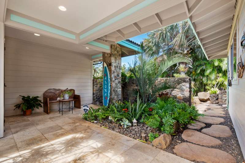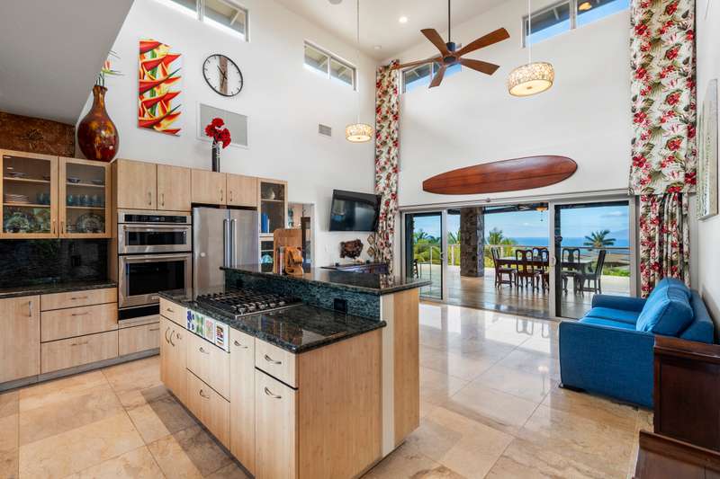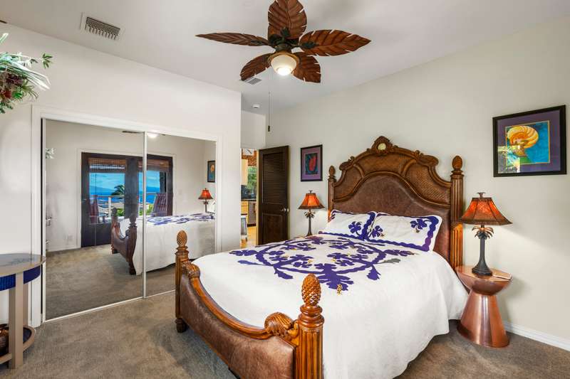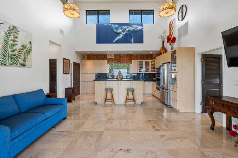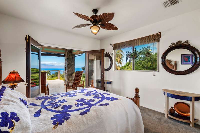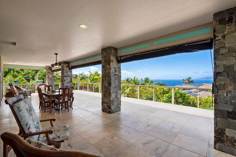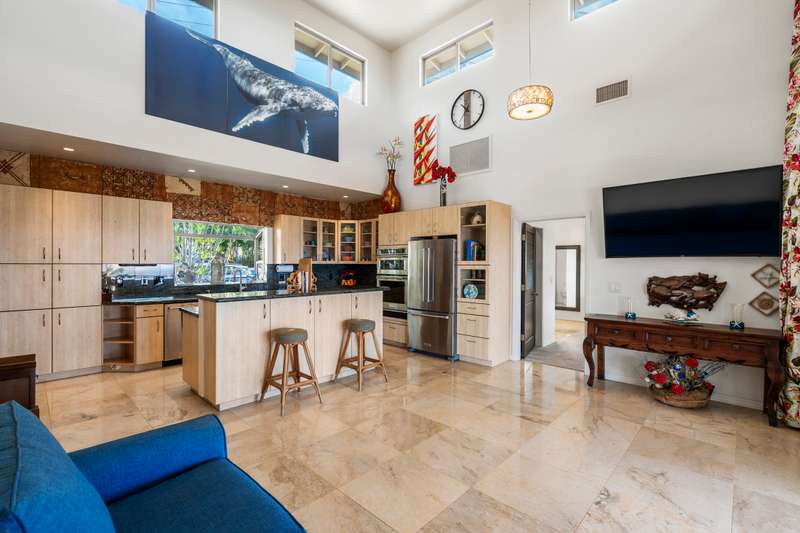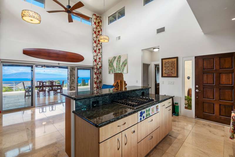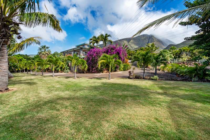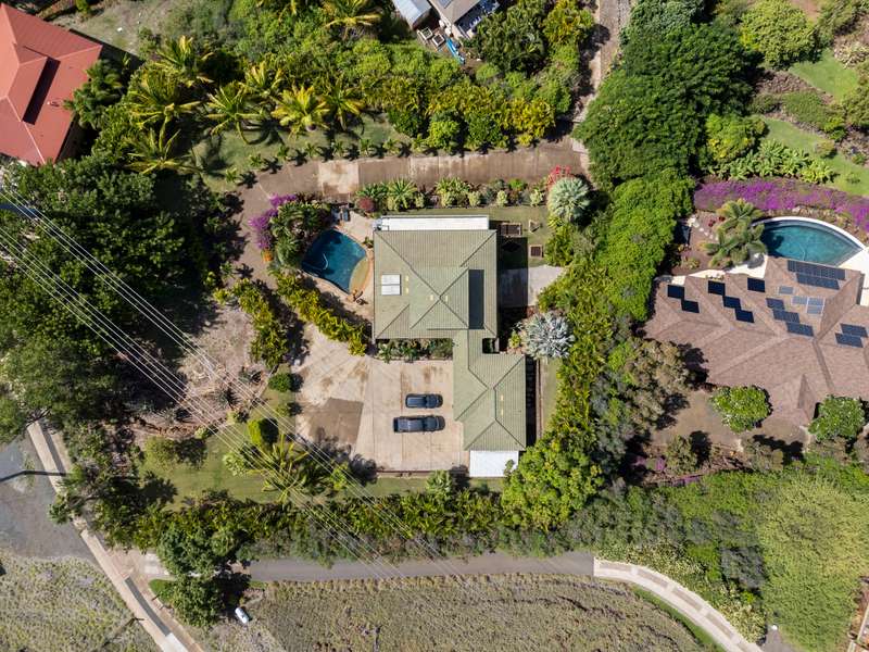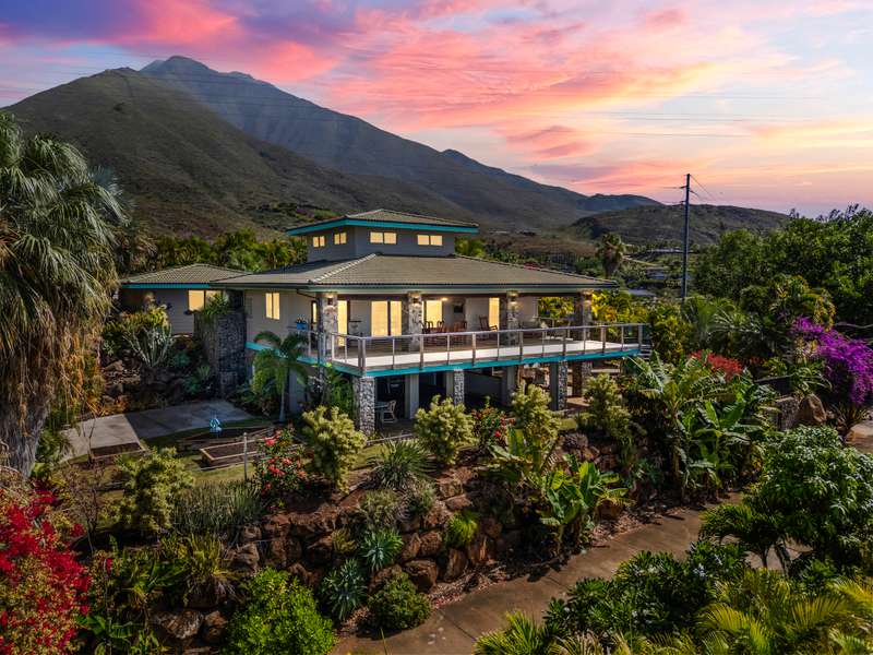 Your private and secluded Launiupoko home awaits. As you drive through the gated entrance, this elevated setting reveals sweeping ocean, outer island, and sunset views. This two-bedroom, two-bath home is perfectly sized for a Maui retreat or full time residence, with ample outdoor areas ideal for easy entertaining. The living room and kitchen feature soaring 15-foot ceilings, and the views become even more impressive as you step onto the expansive lanai of over 1,000 sq ft. The pool area includes a tiki bar lounge and a sprawling covered space full of possibilities. A three-car garage provides protected parking for your vehicles and recreational gear. A generous driveway and multiple parking areas offer plenty of space for gatherings or even boat storage. This is a residential condo located in an agricultural subdivision. Wander through your acre of productive and mature tropical landscaping where you’ll find mango, lilikoi, banana, pineapple, orange, lime, and dragonfruit. Several raised beds offer a clean slate for your next planting project. This is an exemplary property that defines what West Maui living is all about.