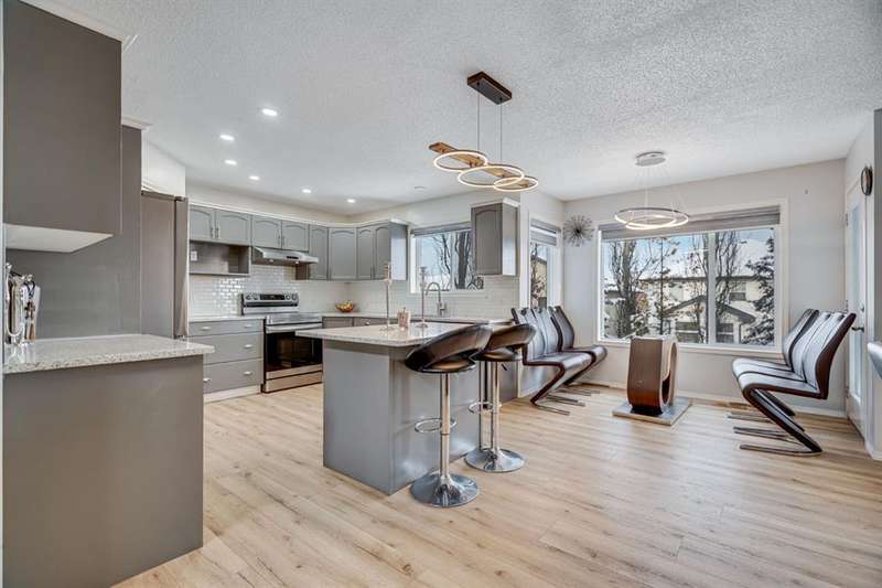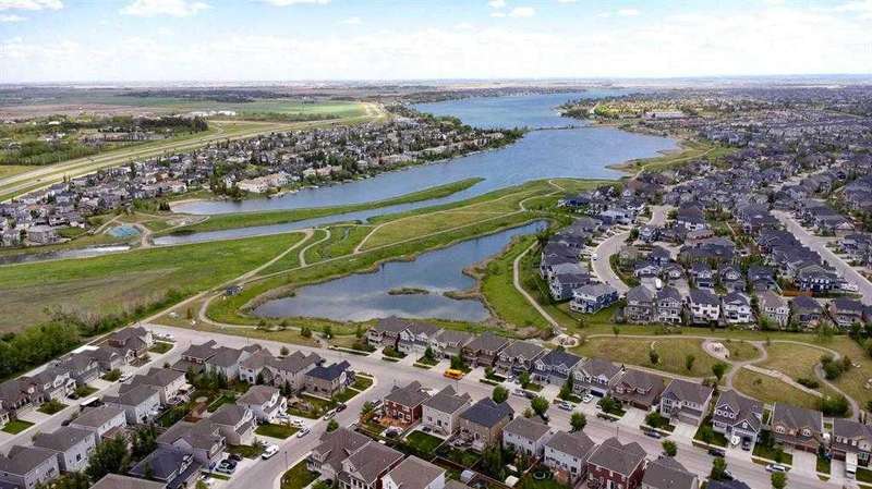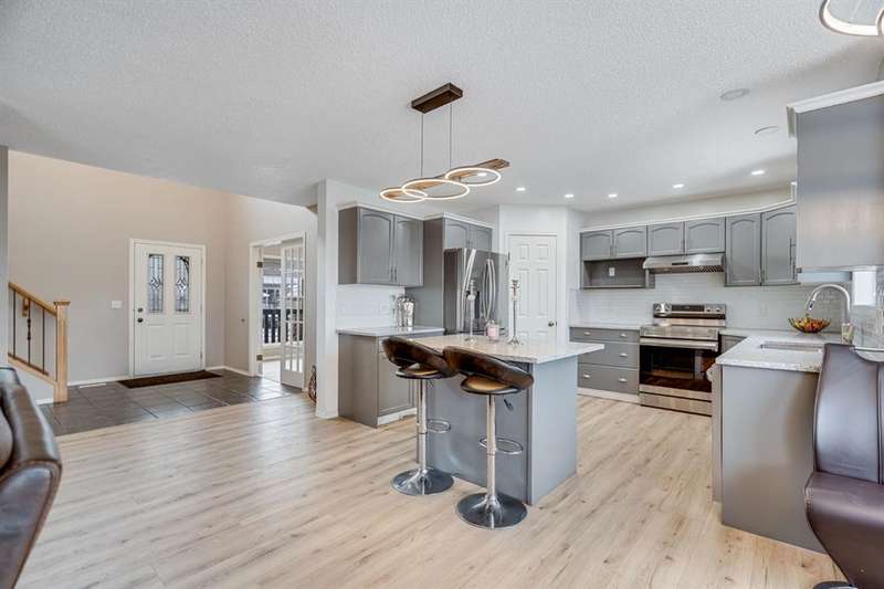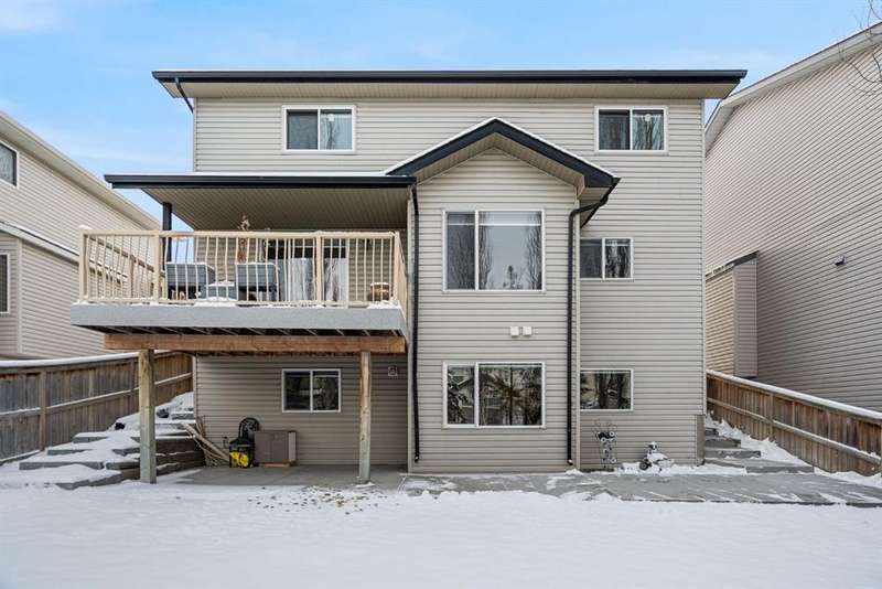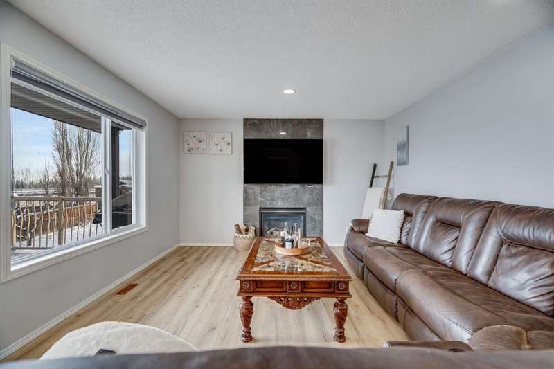 Live in Chestermere and enjoy the lake lifestyle. This update home is a rare find. Situated on a quiet street with a 2 bedroom legal basement suite! As you enter you will notice the grand front foyer with an open to above. The kitchen is a focal point with updated cabinets, gorgeous quartz counters, timeless subway tile backsplash, stainless steel appliances, a large corner pantry for additional storage, and a sink overlooking your backyard with mature trees. Adjacent to the kitchen is the bright dinning room with access to your sunny deck. The spacious living room features a gas fireplace with a tile detail. A large front den, could be used as a former dinning room, play area, or home office. The powder room with stone counters is tucked away and conveniently located next to the laundry space and mudroom. As you head upstairs you will notice the timeless railing and large windows drawing in the natural light. The expansive primary includes a walk in closet, 4 pc ensuite with a separate shower and water closet. In addition to this there are 2 well sized bedrooms, and a 4pc main bath. The suited walkout basement has large windows, an updated 3 pc bath, separate laundry space, kitchen with modern cabinets and 2 additional bedrooms. The suite has its own separate entrance and a large outdoor patio space. This property is a rare find and includes new windows, an instant hot water tank among many other updates. Ideally located within a quick 5-minute walk to Chestermere’s private beach, scenic walking paths, and local hot spots like Dockside Bar & Grill. Within minutes of Prairie Waters Elementary, Chestermere Lake Middle School, and a short 10-minute drive to East Hills Shopping Centre, Costco, and Walmart. You’re also just 10 minutes from Calgary city limits and 30 minutes from downtown. Schedule your private showing today or view the virtual tour!